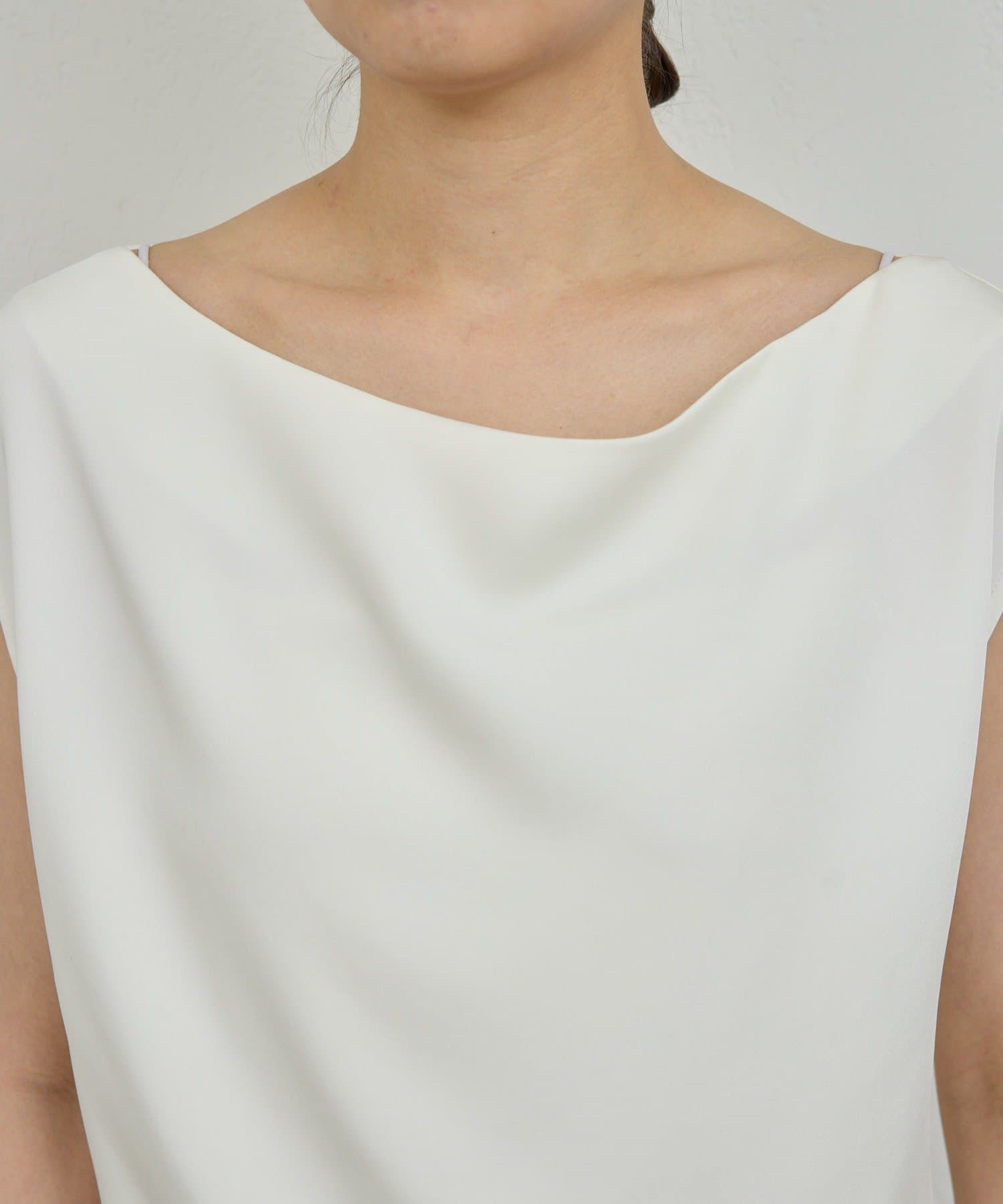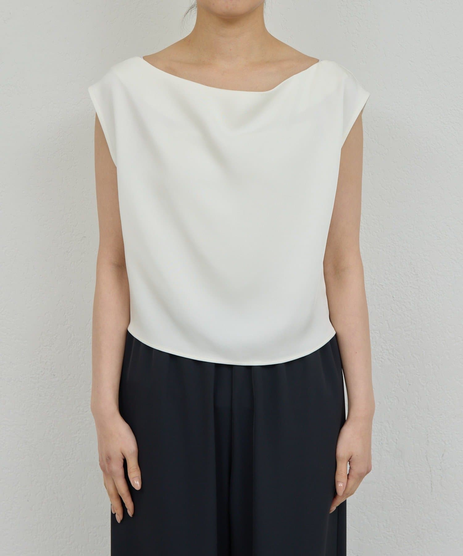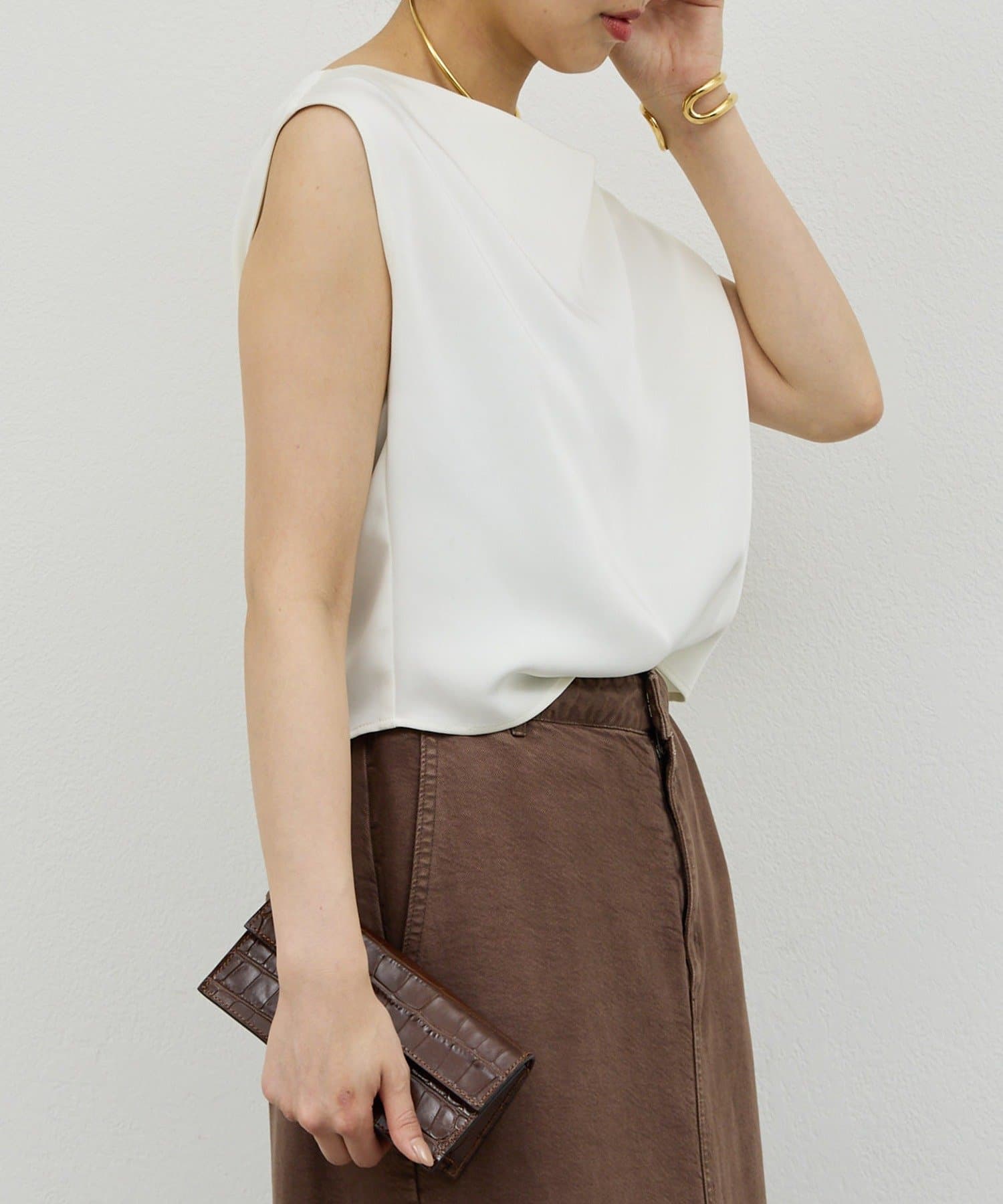 艶のあるドレープ素材が上品なコンパクトブラウス