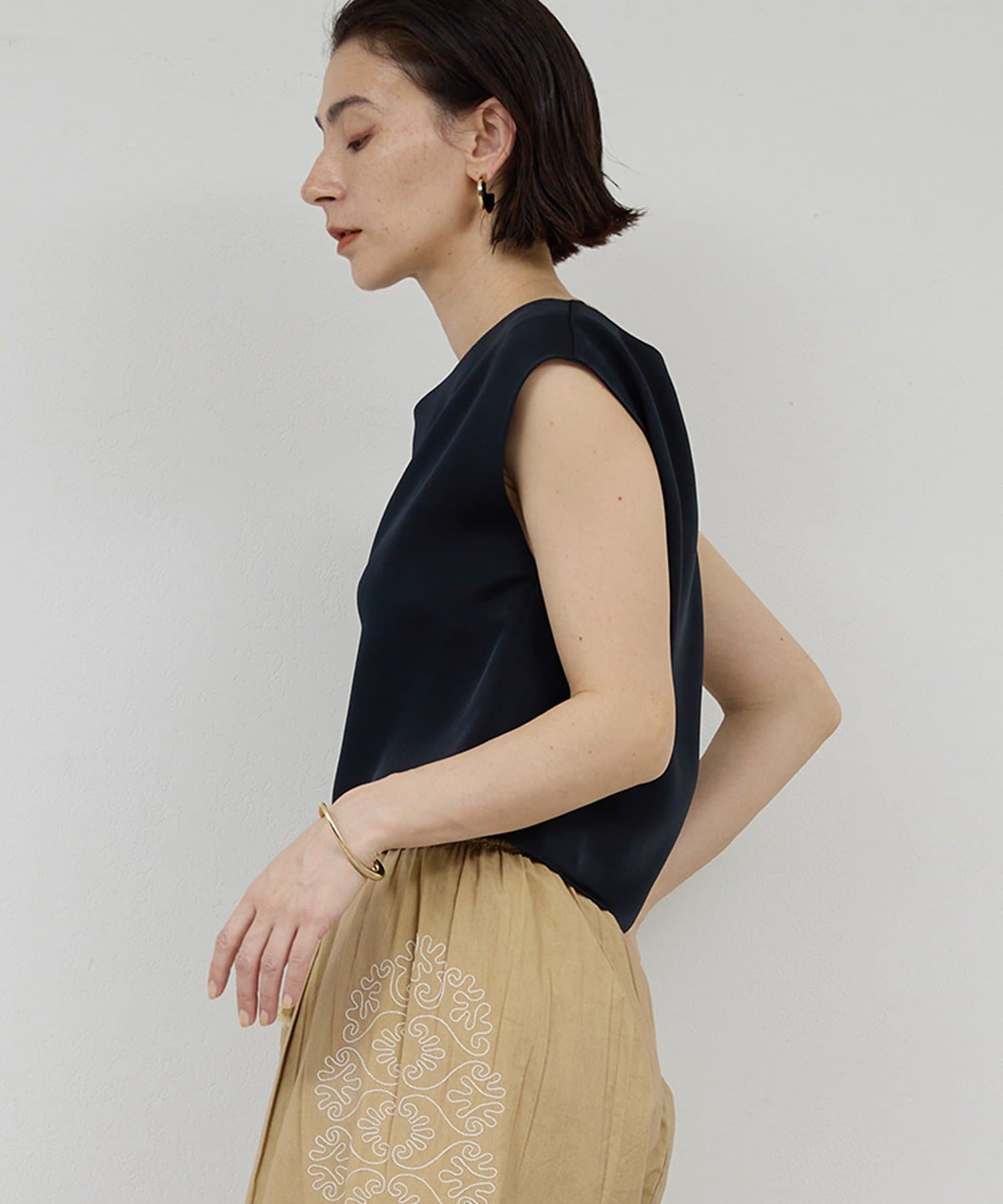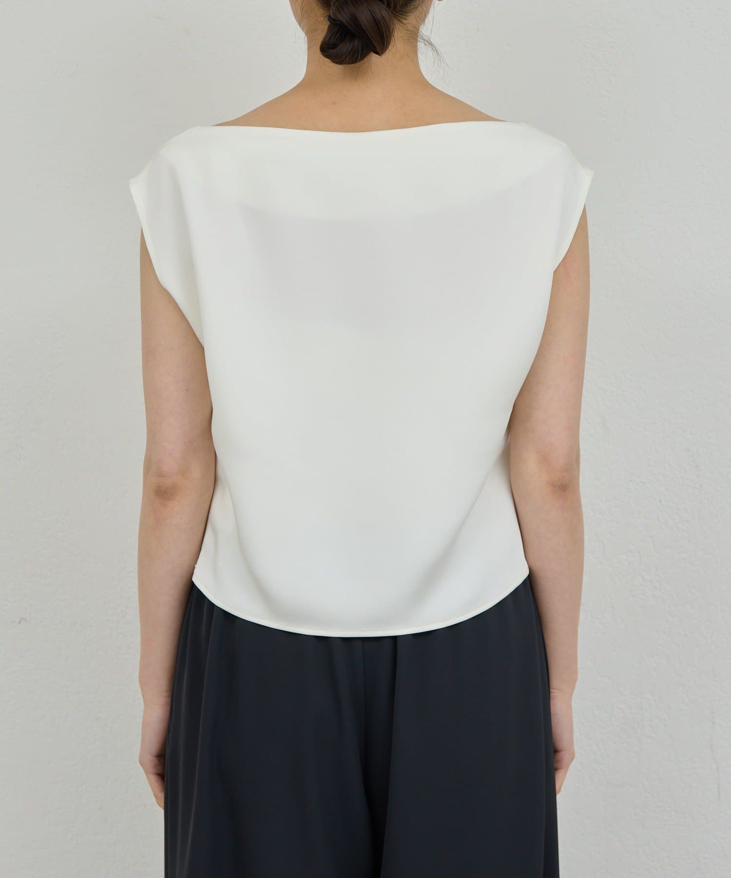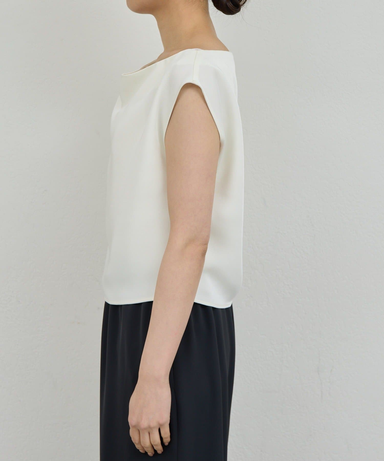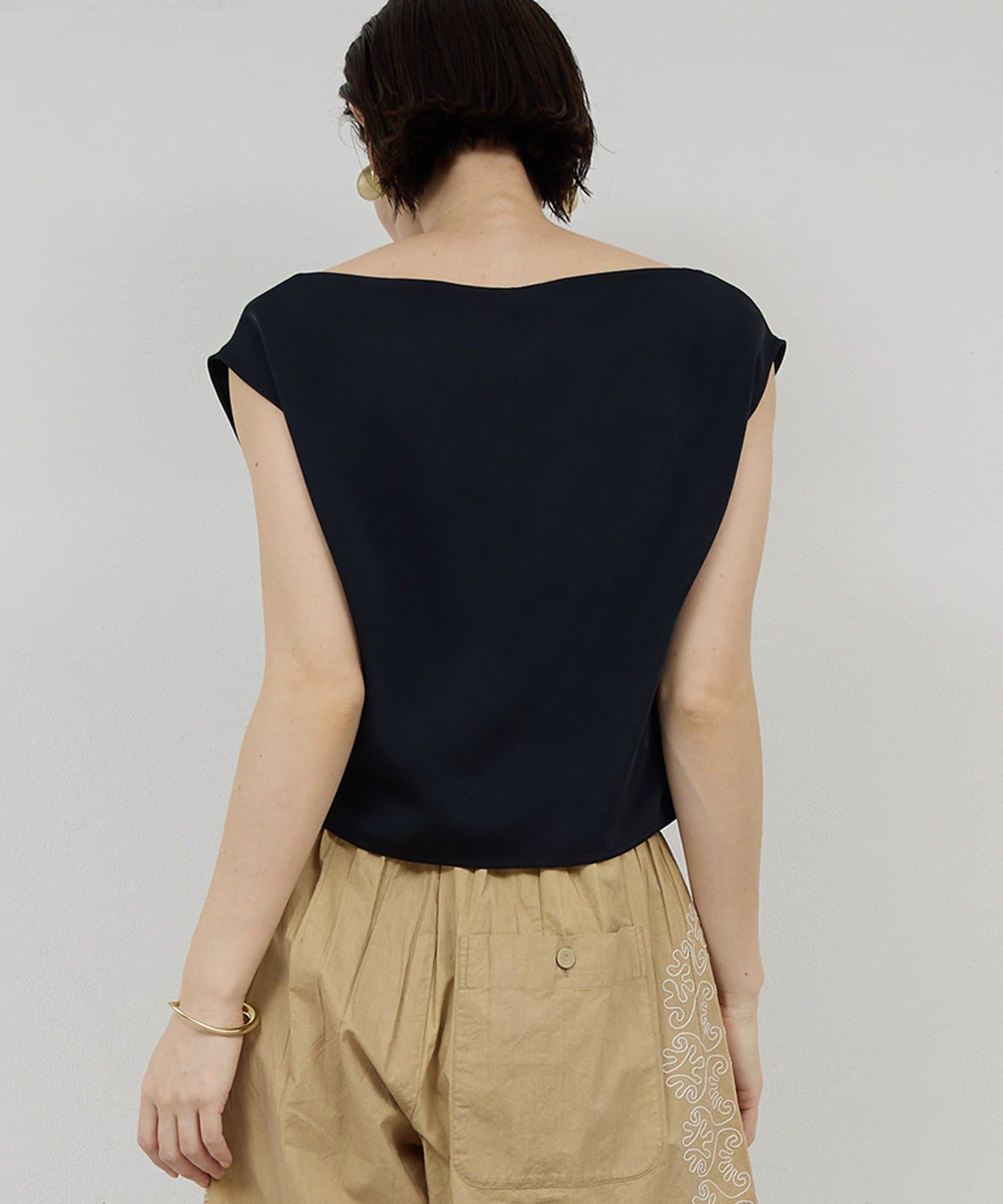 艶のあるドレープ素材が上品なコンパクトブラウス