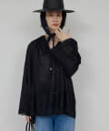 ●一枚で華やかな、裾のデザインが特徴的なシアーブラウス。