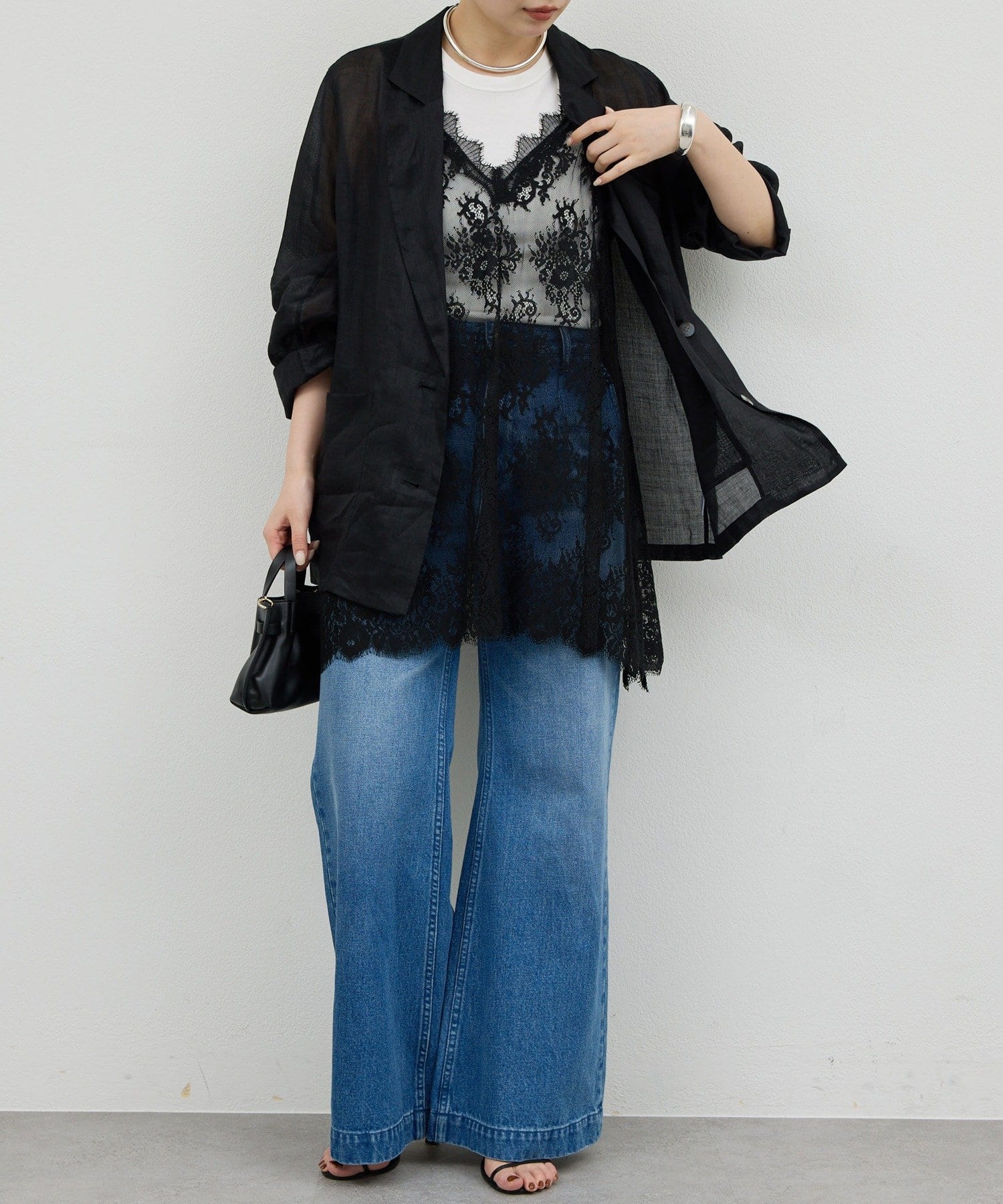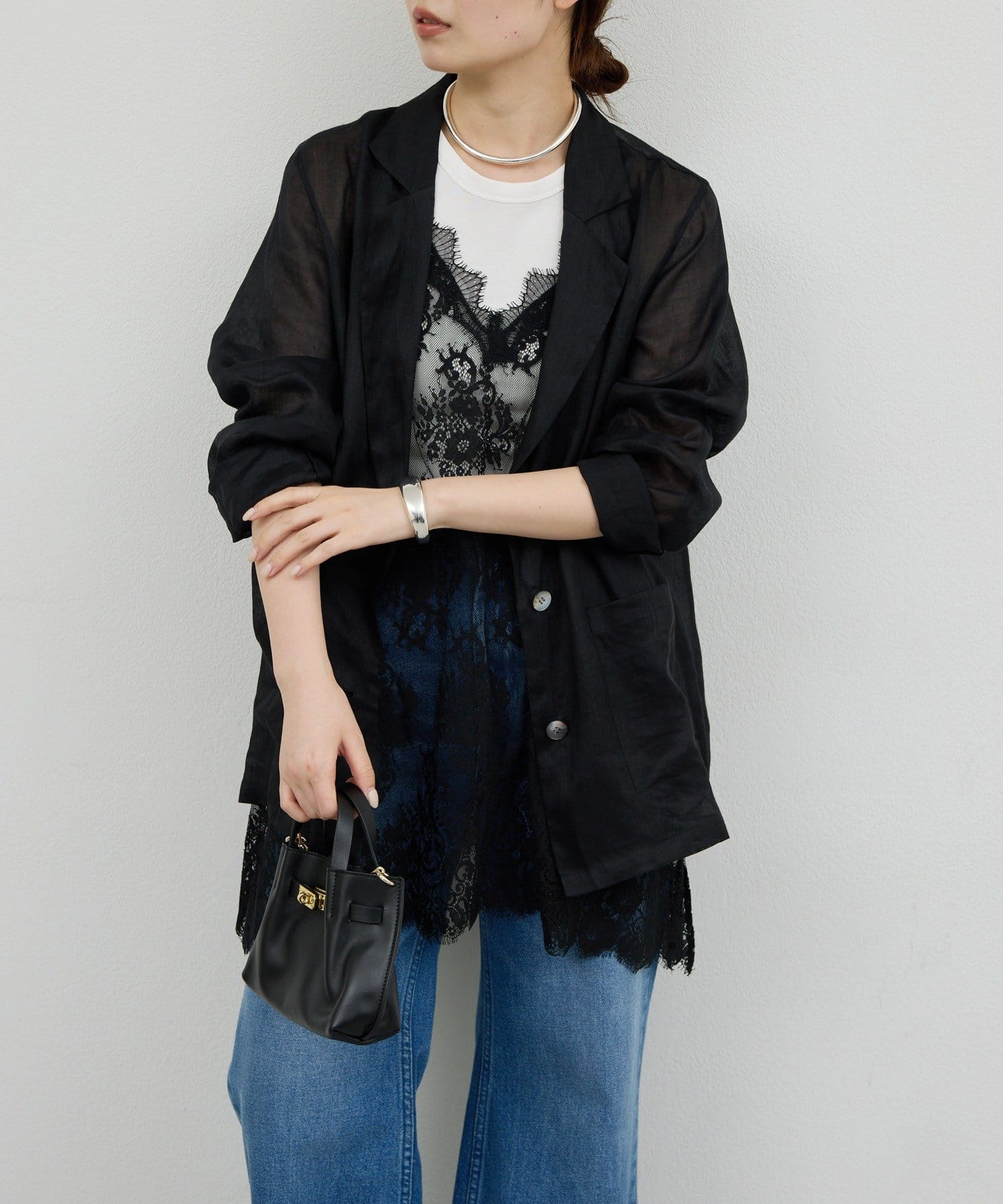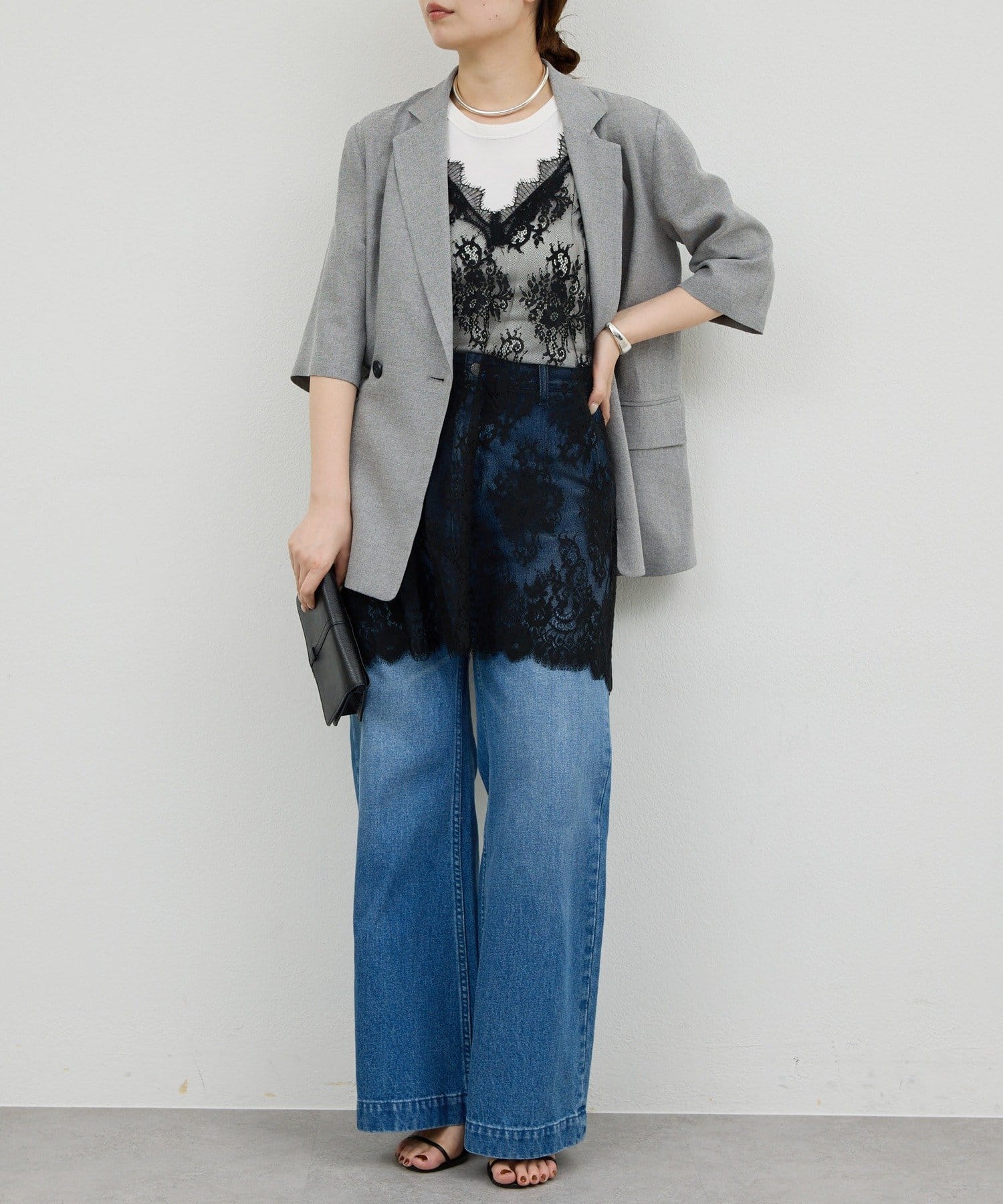 ●+1するだけで、いつものコーデが少し新鮮見えする一枚。