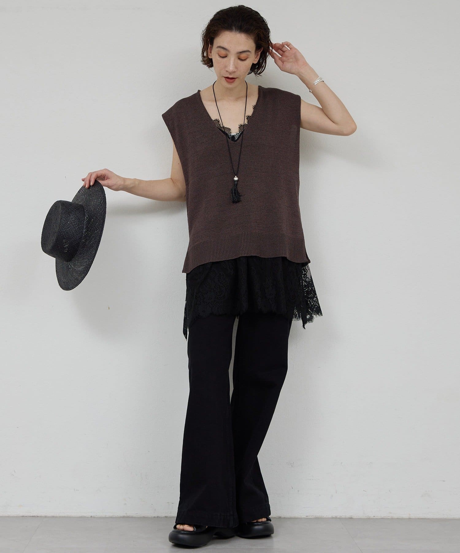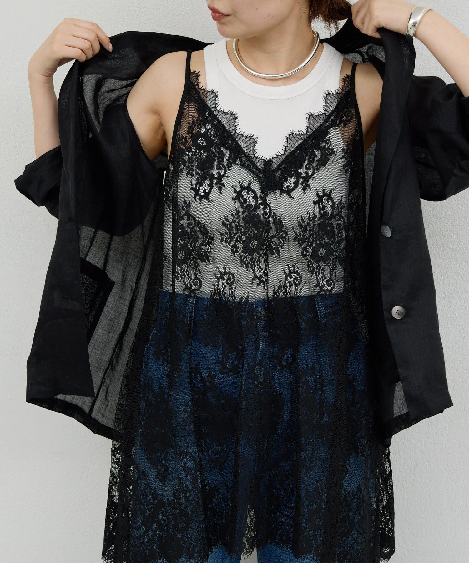 ●立体的なコードレースをふんだんに使った、存在感のあるキャミチュニック。