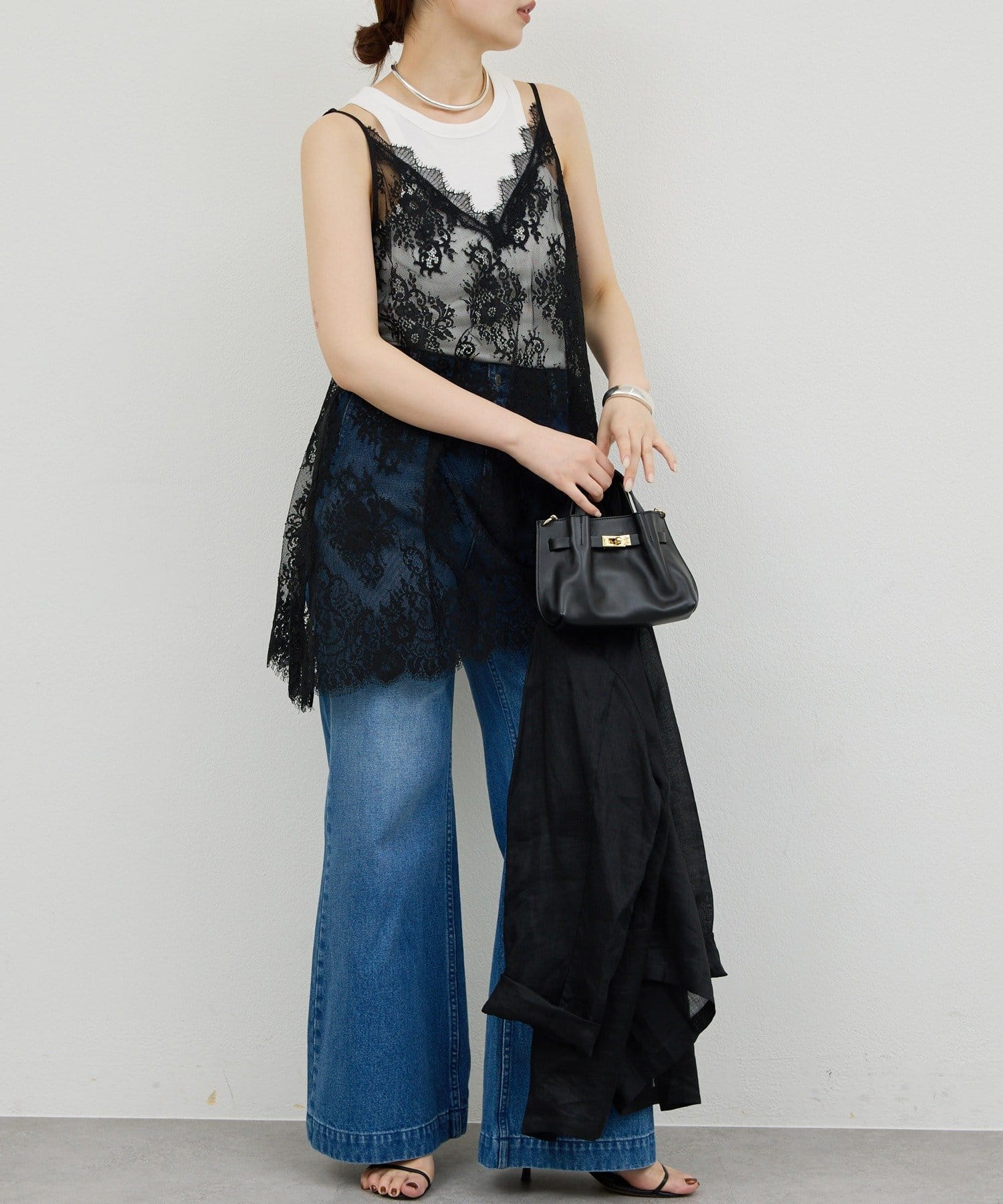 一枚で華やかな、総レースキャミチュニック