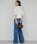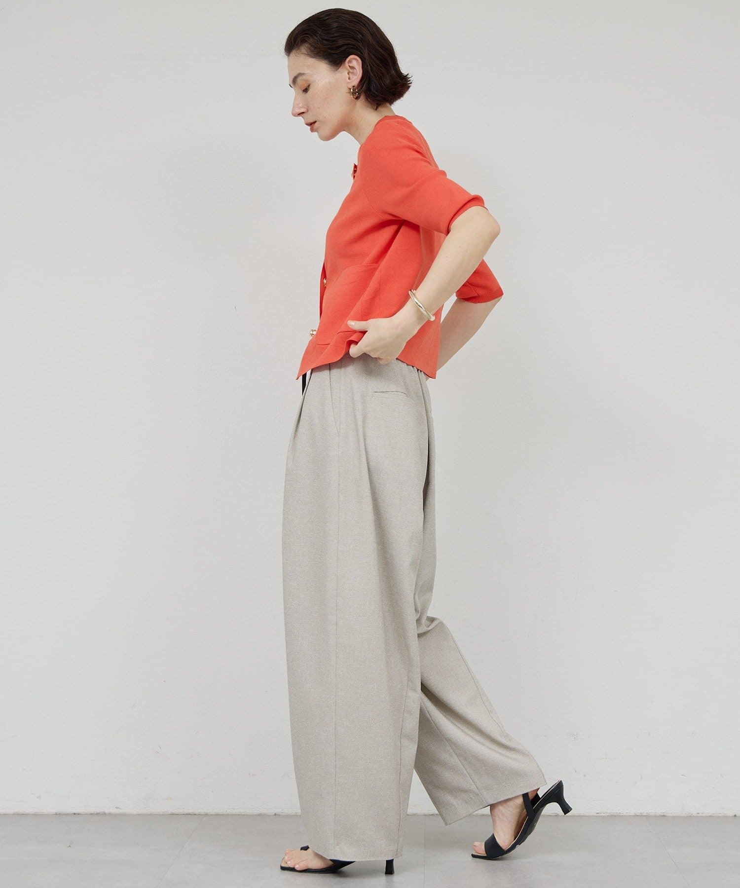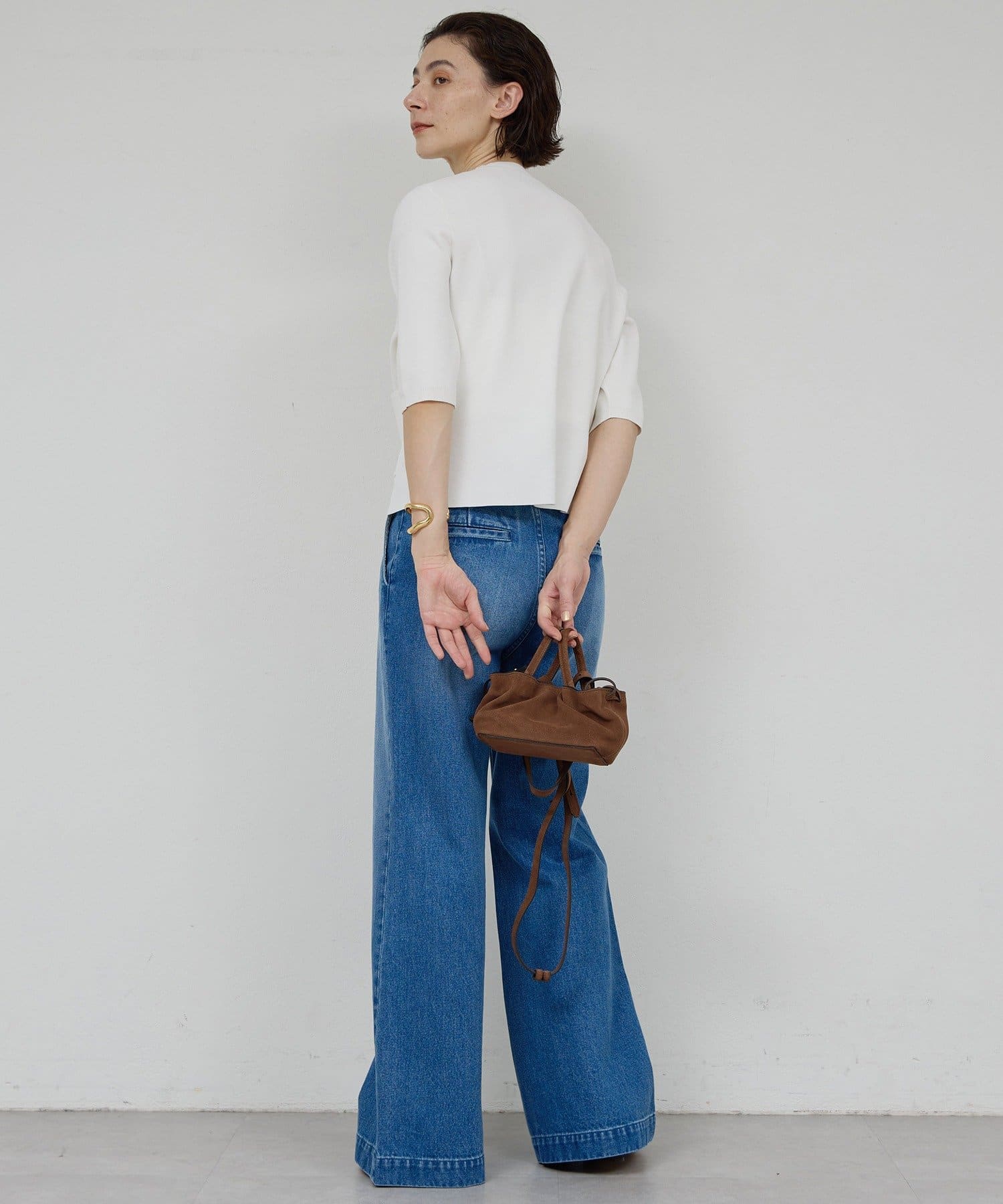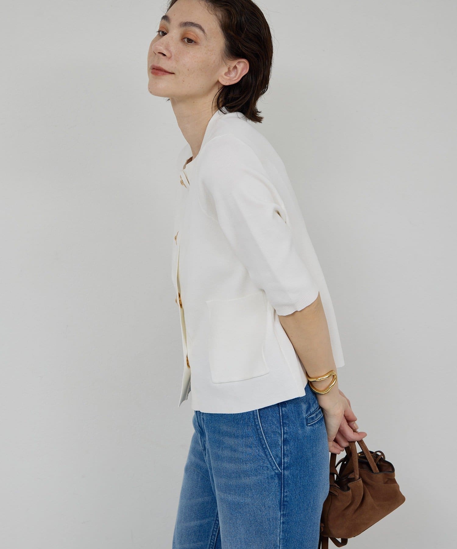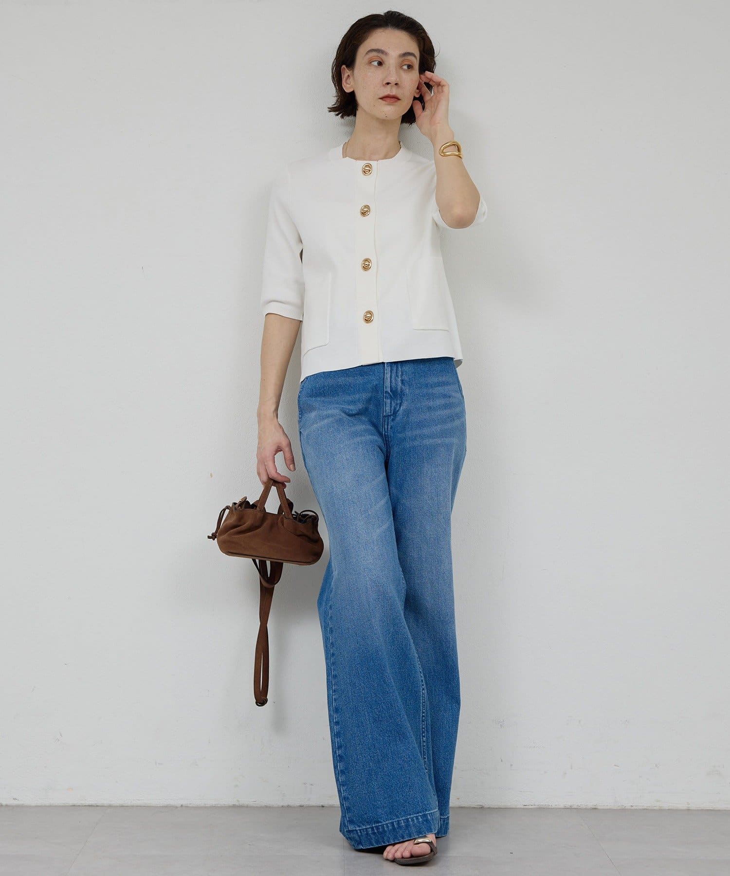 ●カジュアルアイテムとの合わせでも、上品なスタイリングに導くレディーライクカーデ。