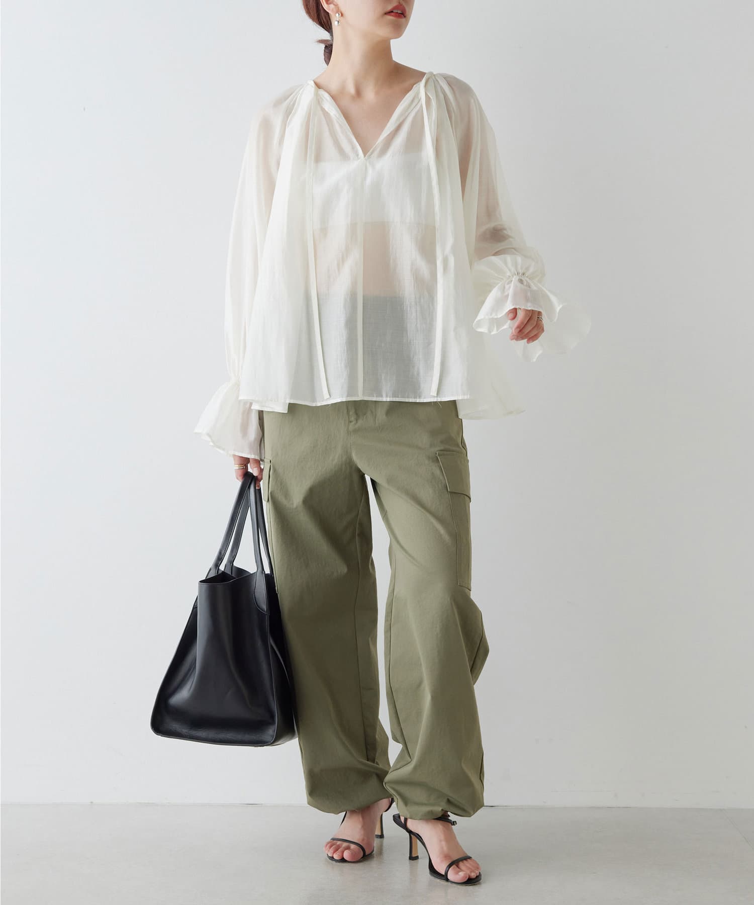 ●女性らしいニュアンスラッフル袖デザインがポイントに。