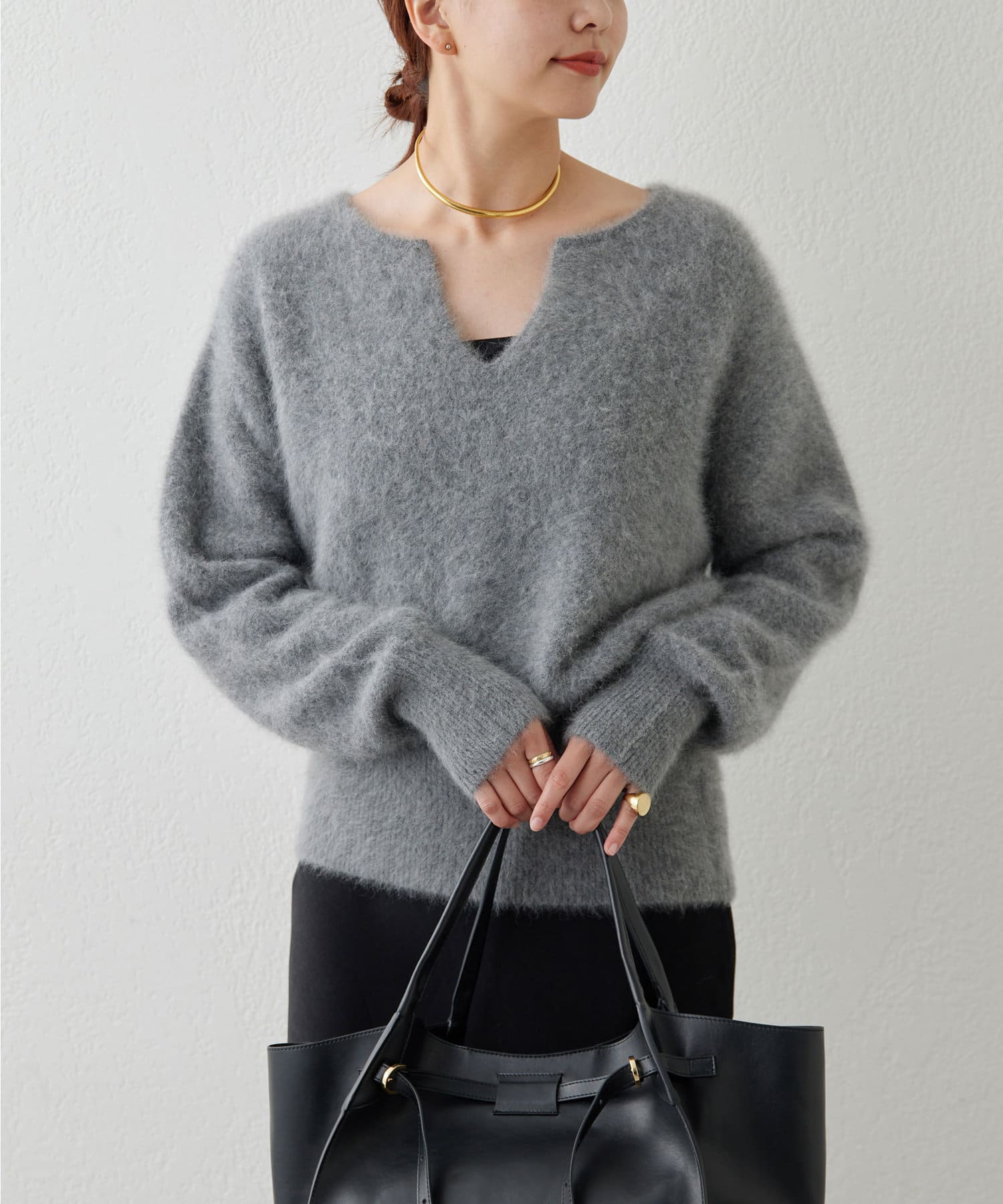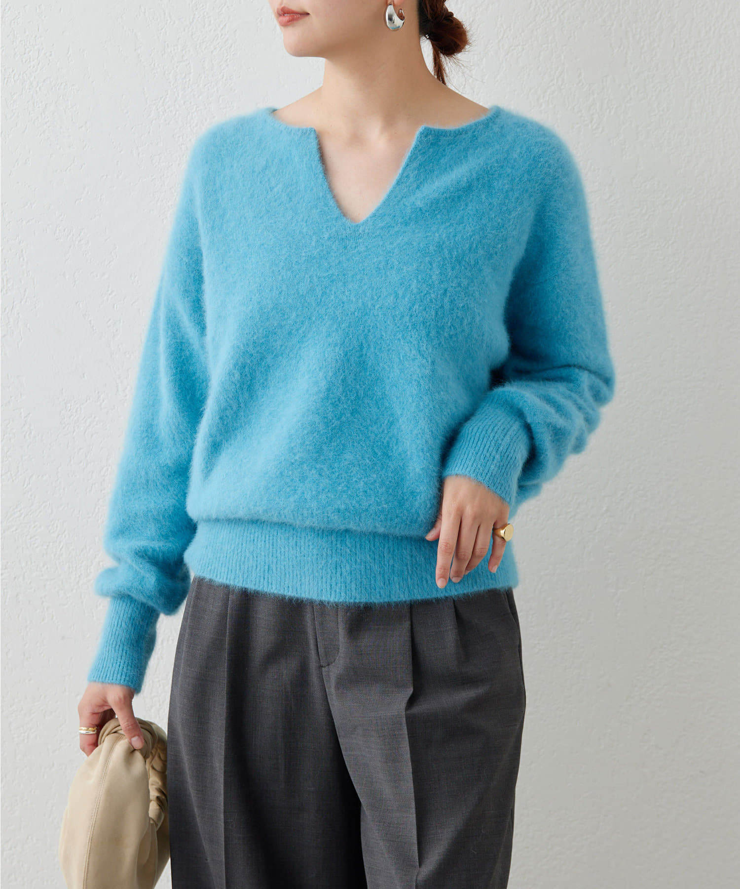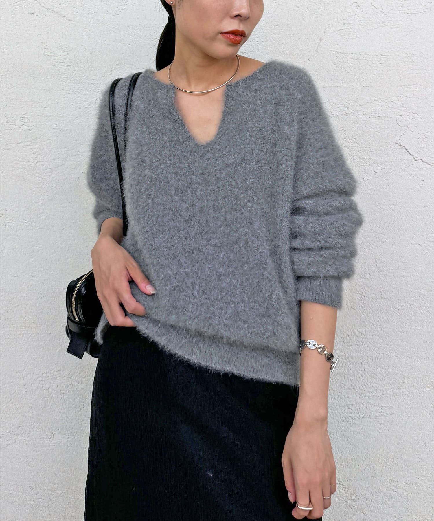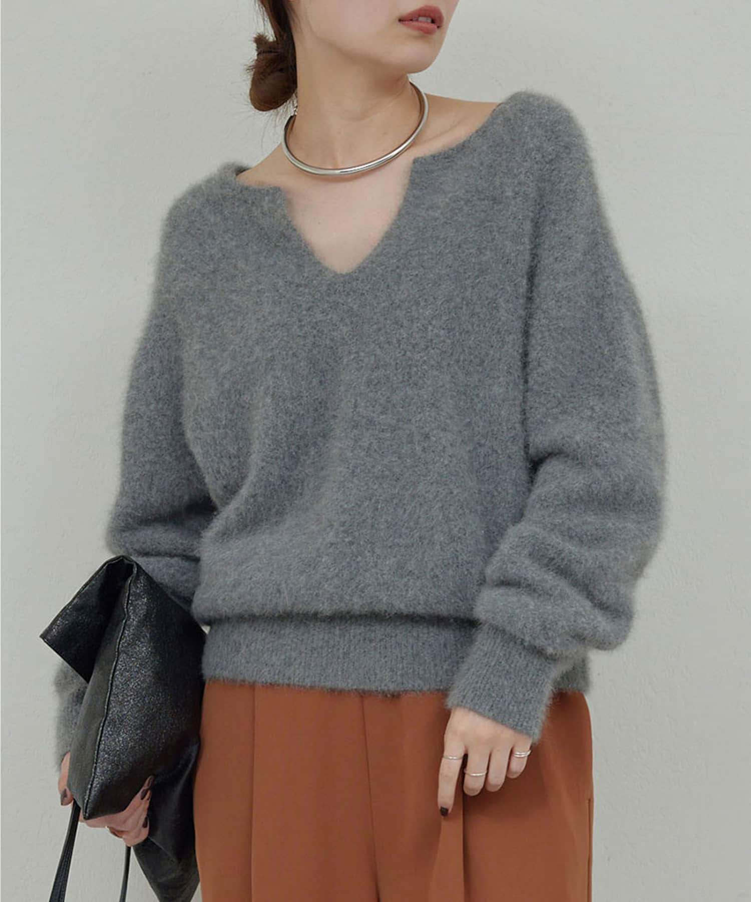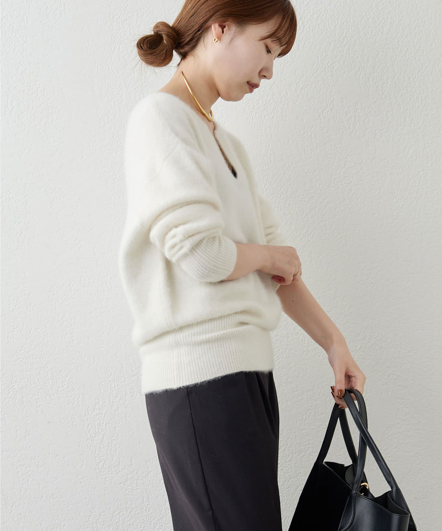 体型カバーとふんわりとした風合いが魅力のキーネックニット