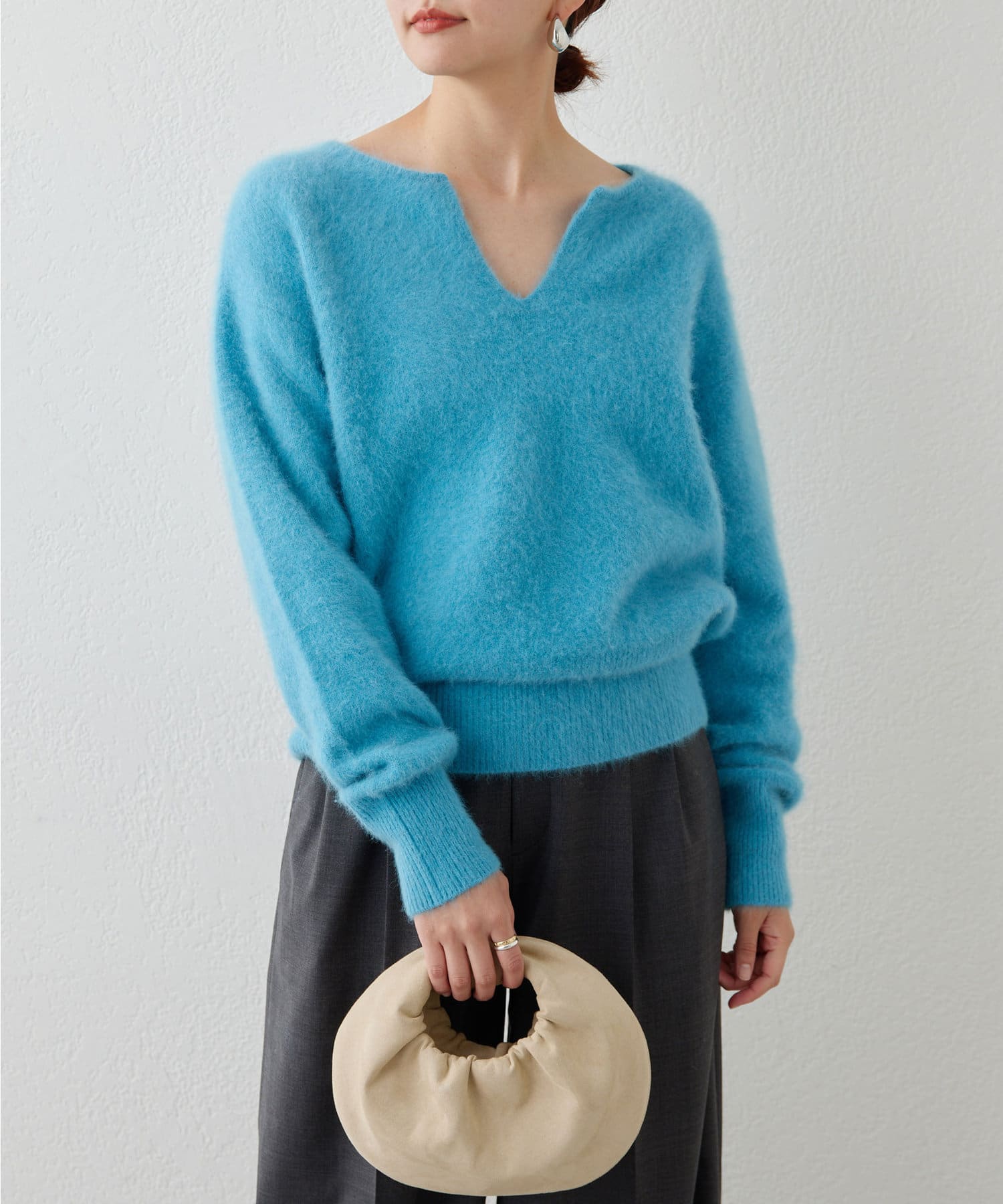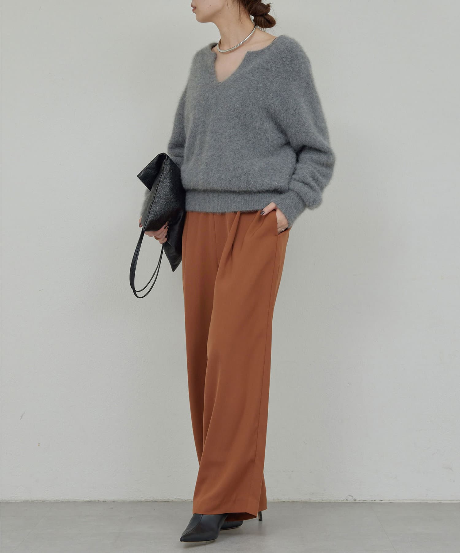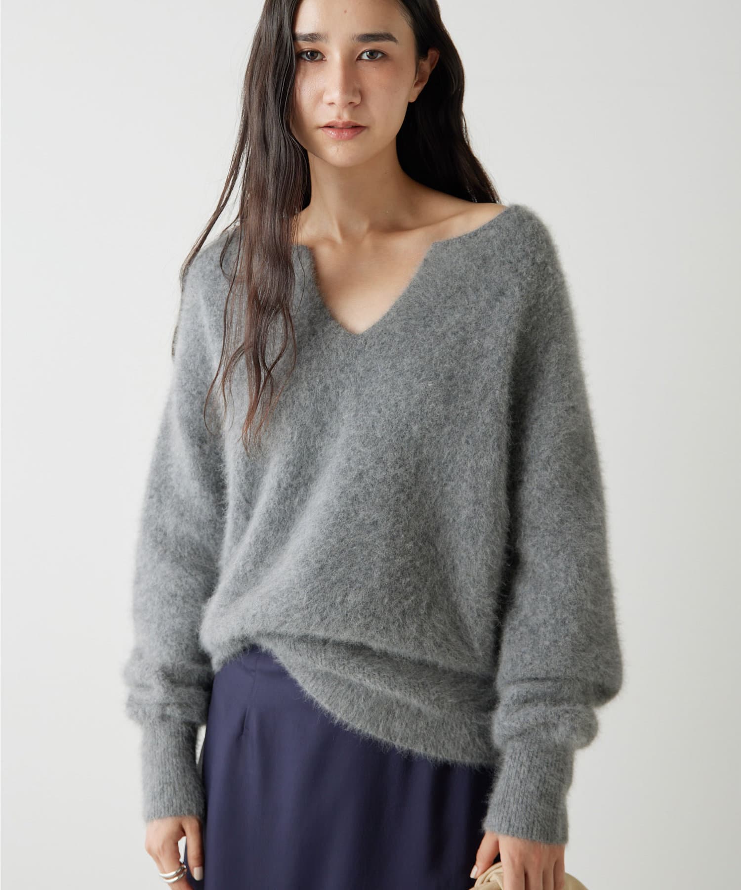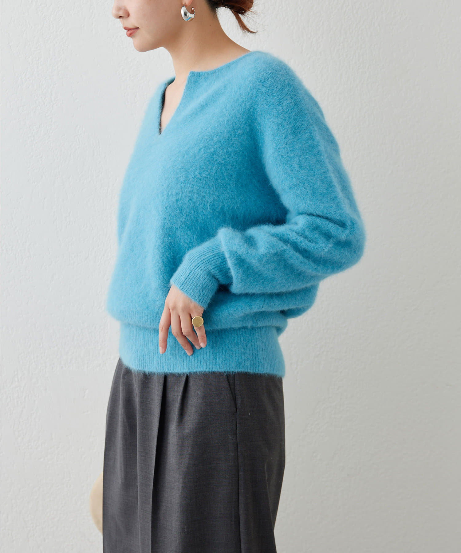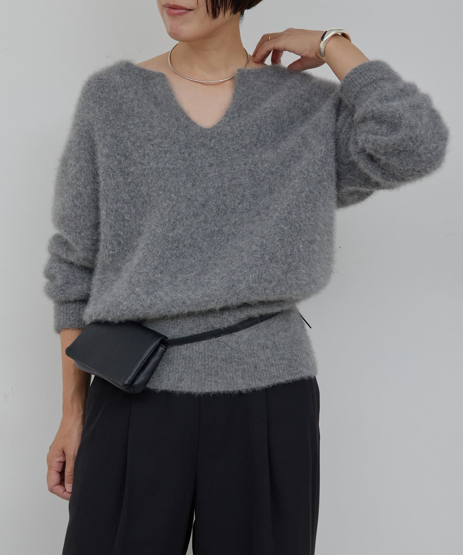 体型カバーとふんわりとした風合いが魅力のキーネックニット