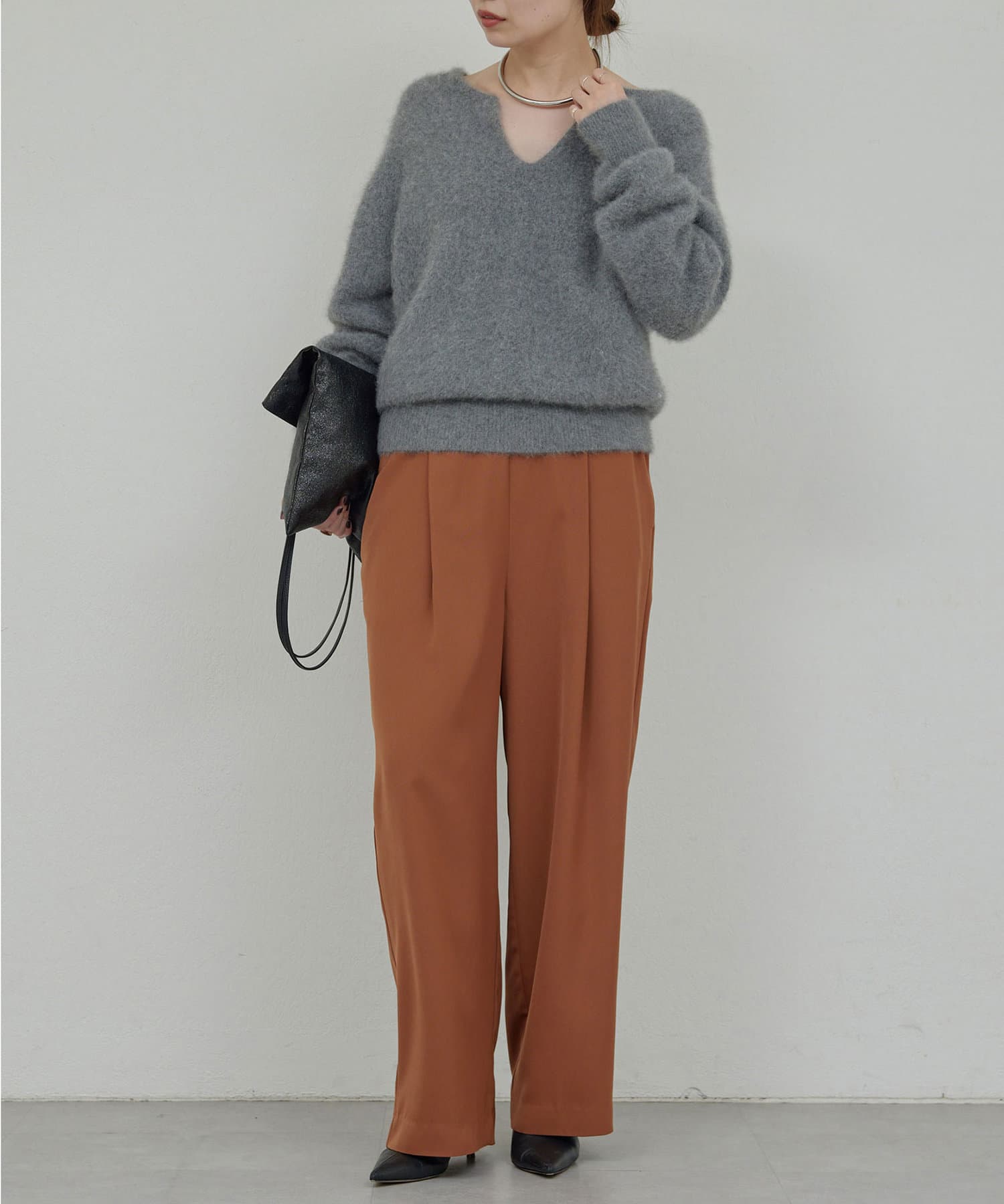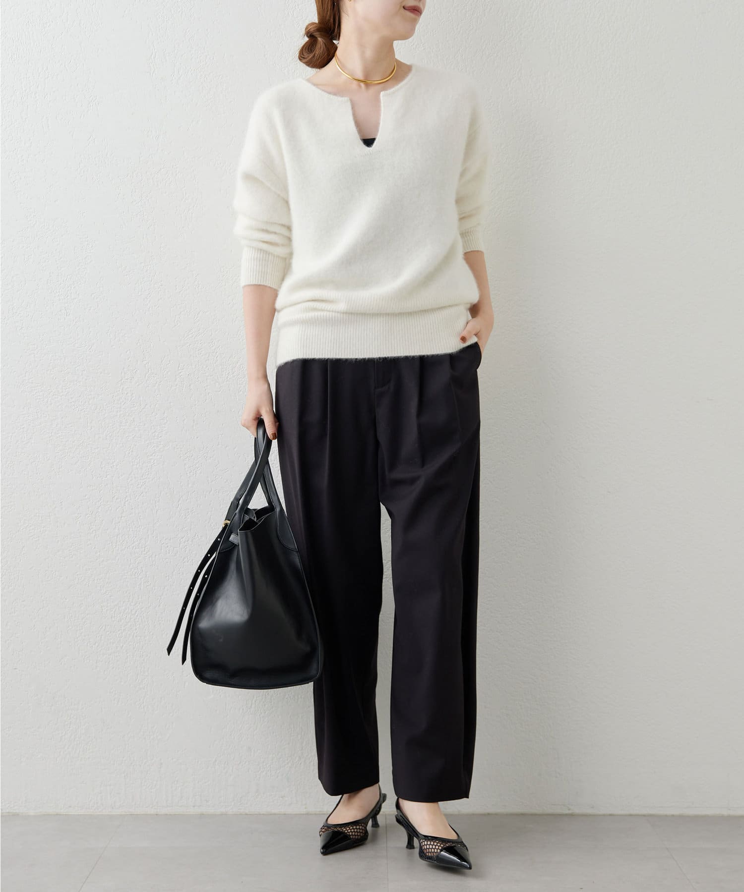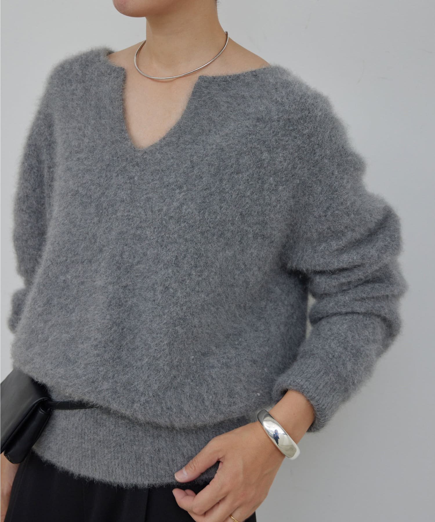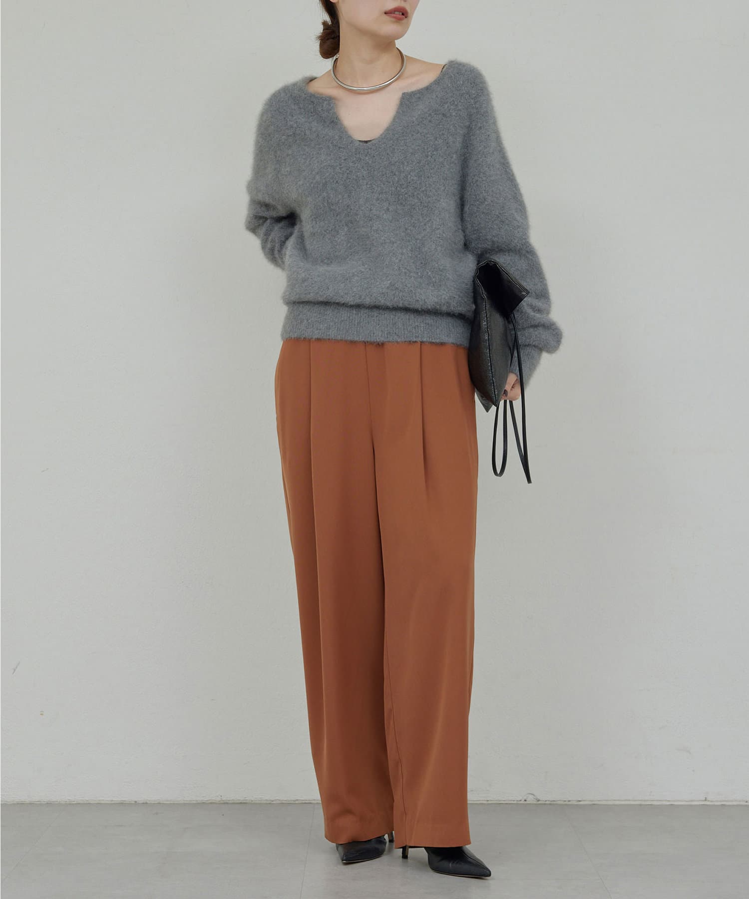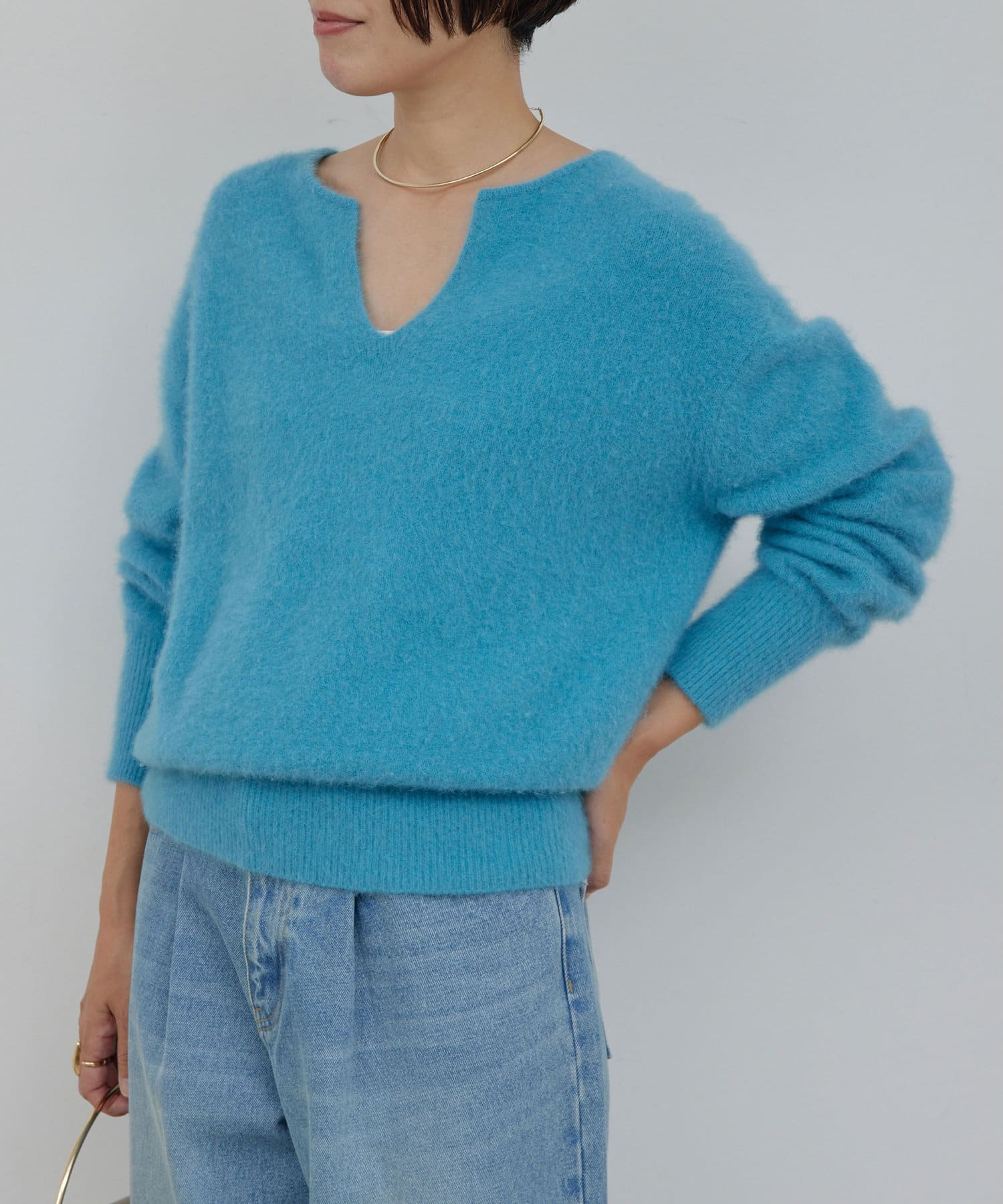 体型カバーとふんわりとした風合いが魅力のキーネックニット