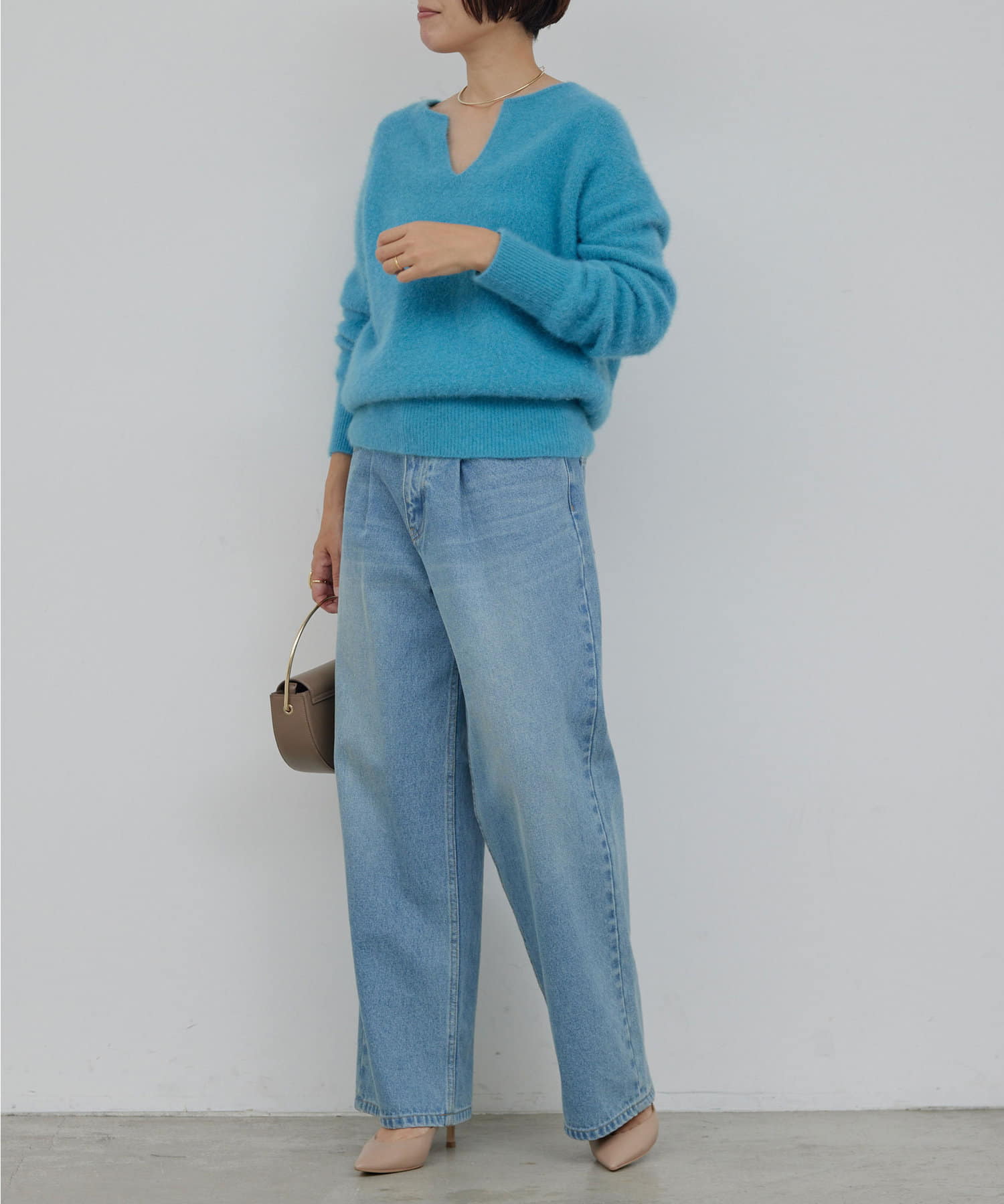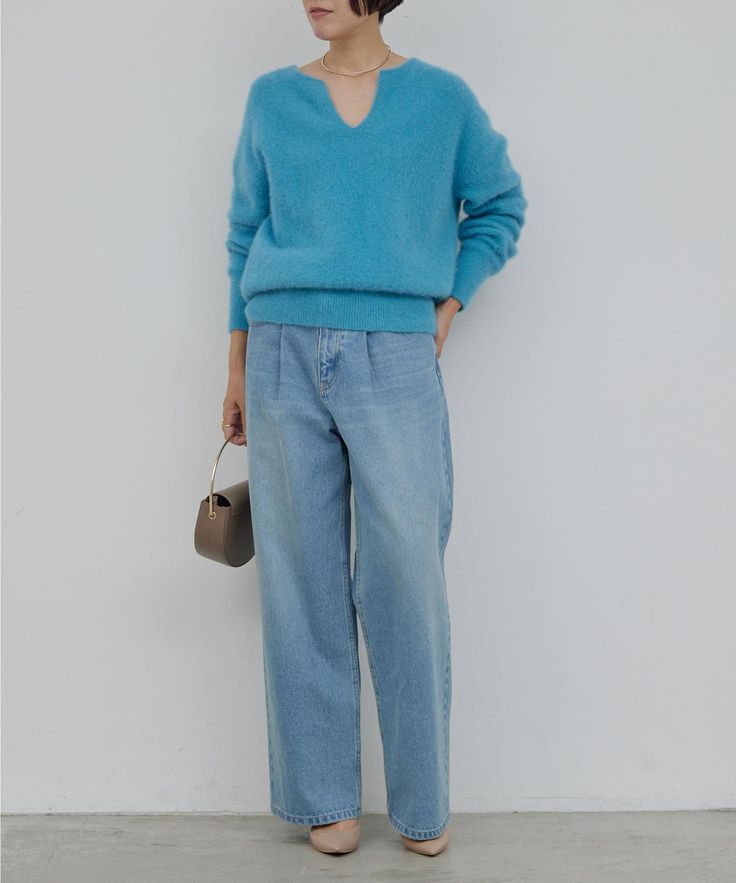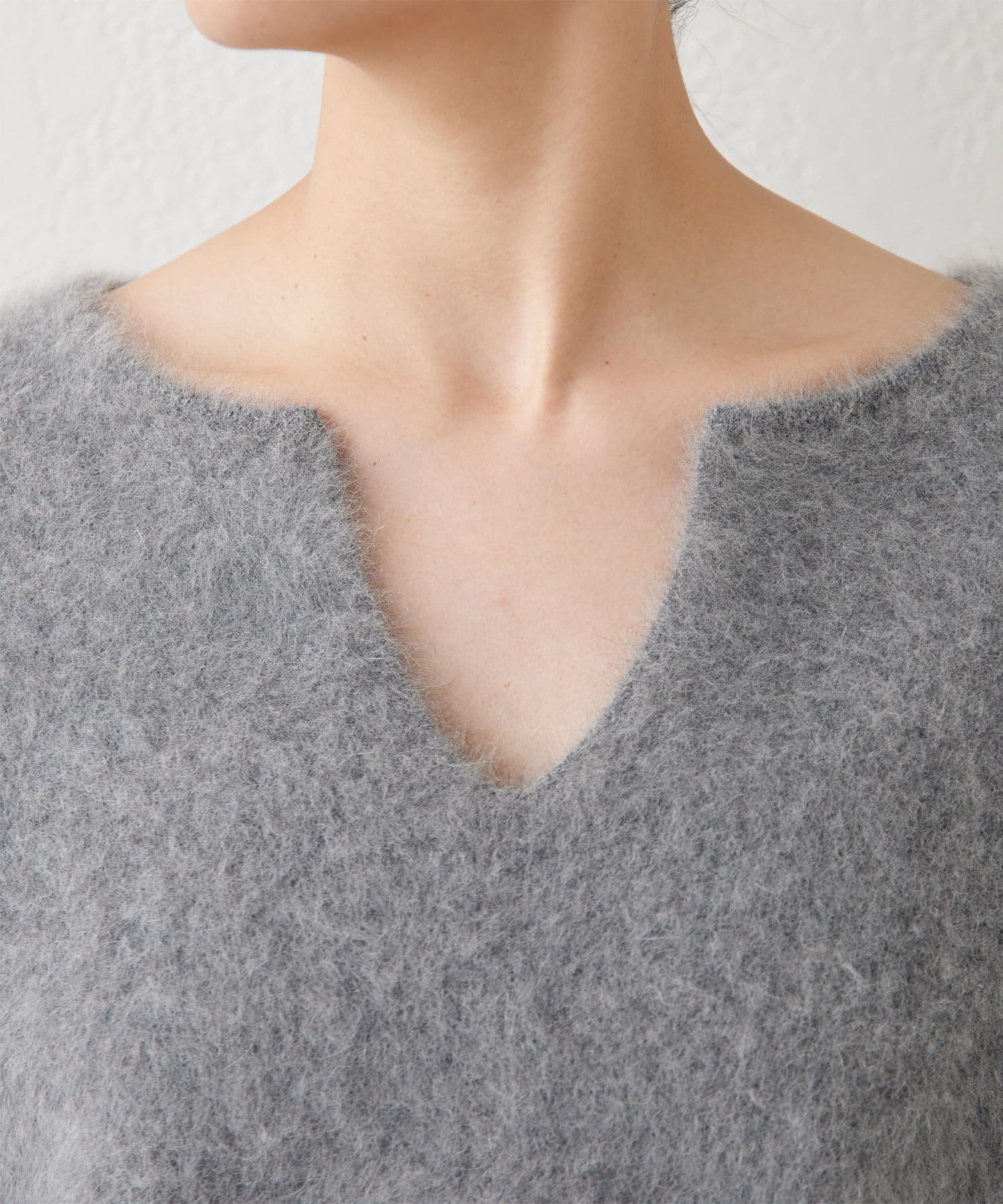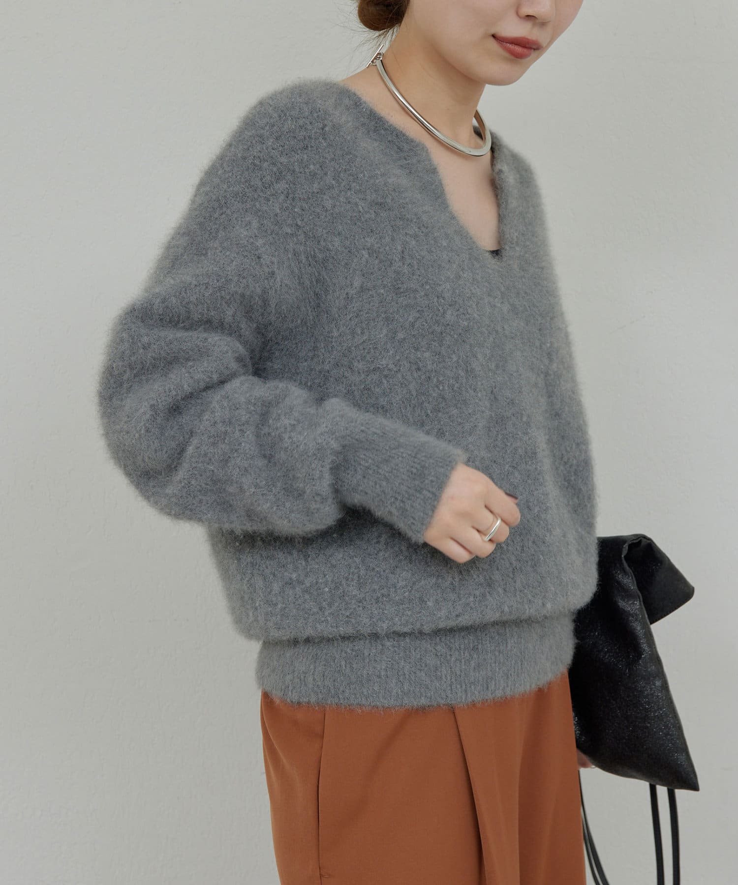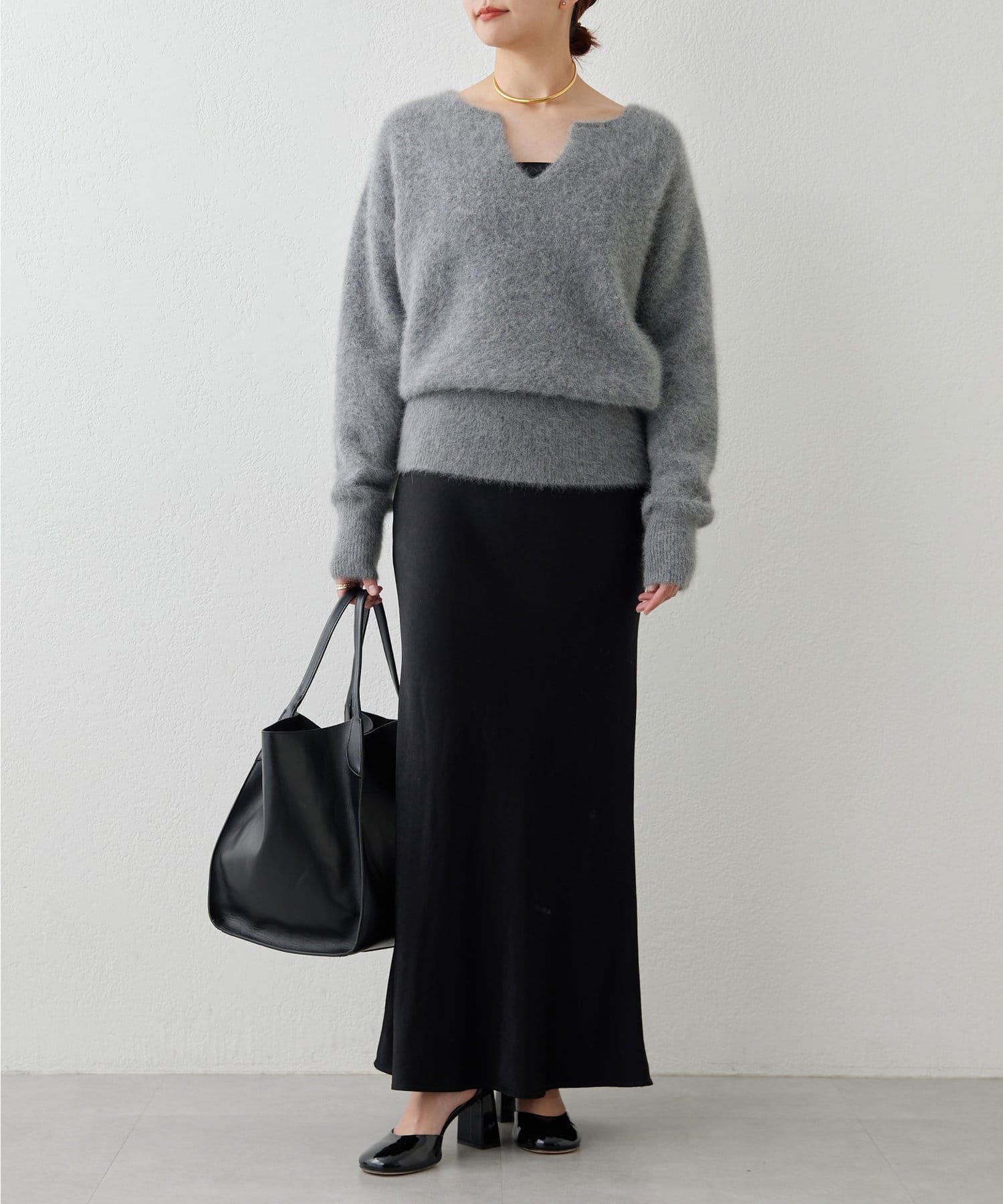 体型カバーとふんわりとした風合いが魅力のキーネックニット