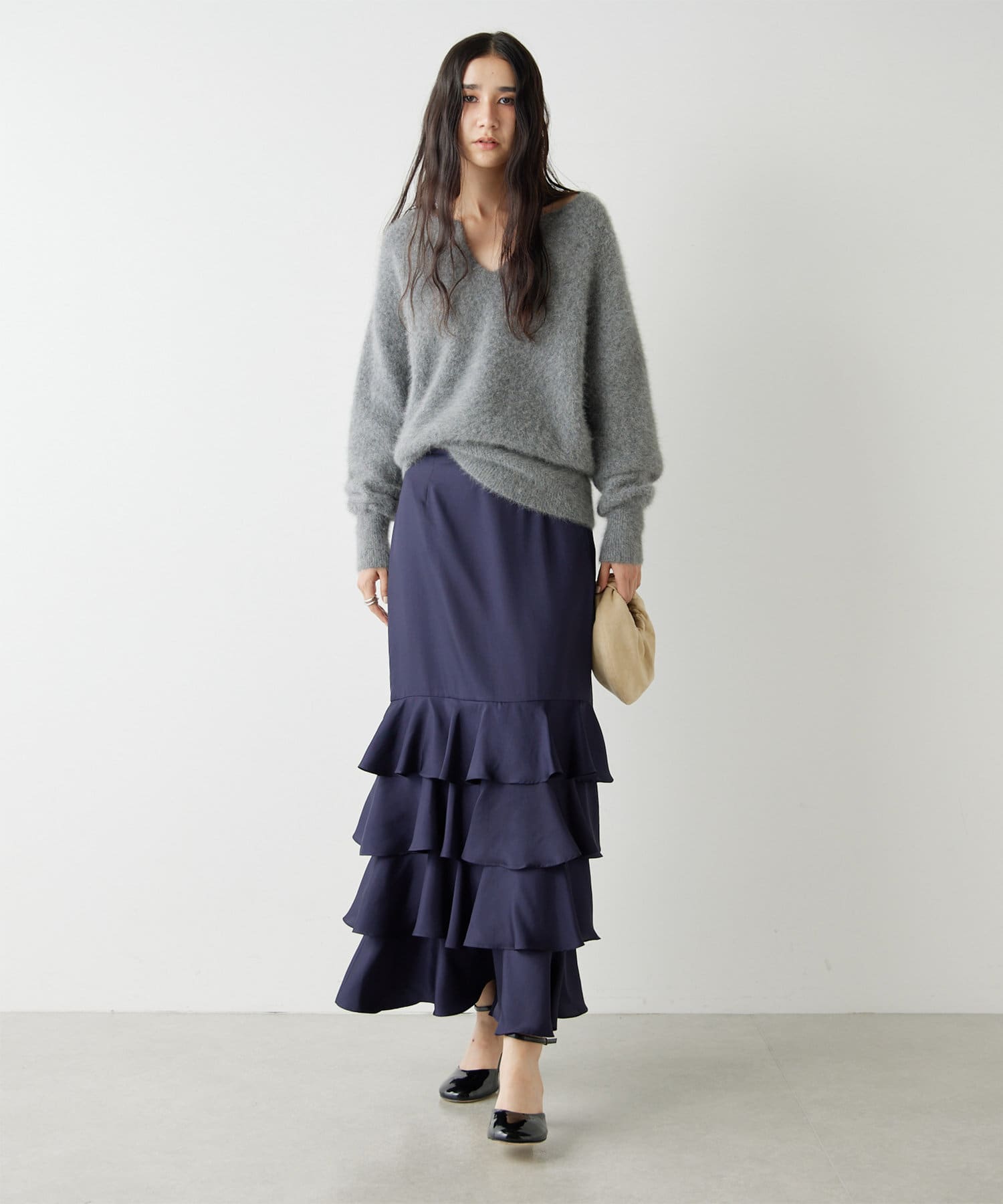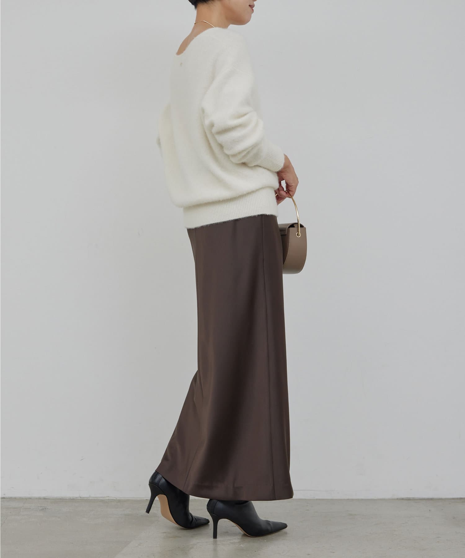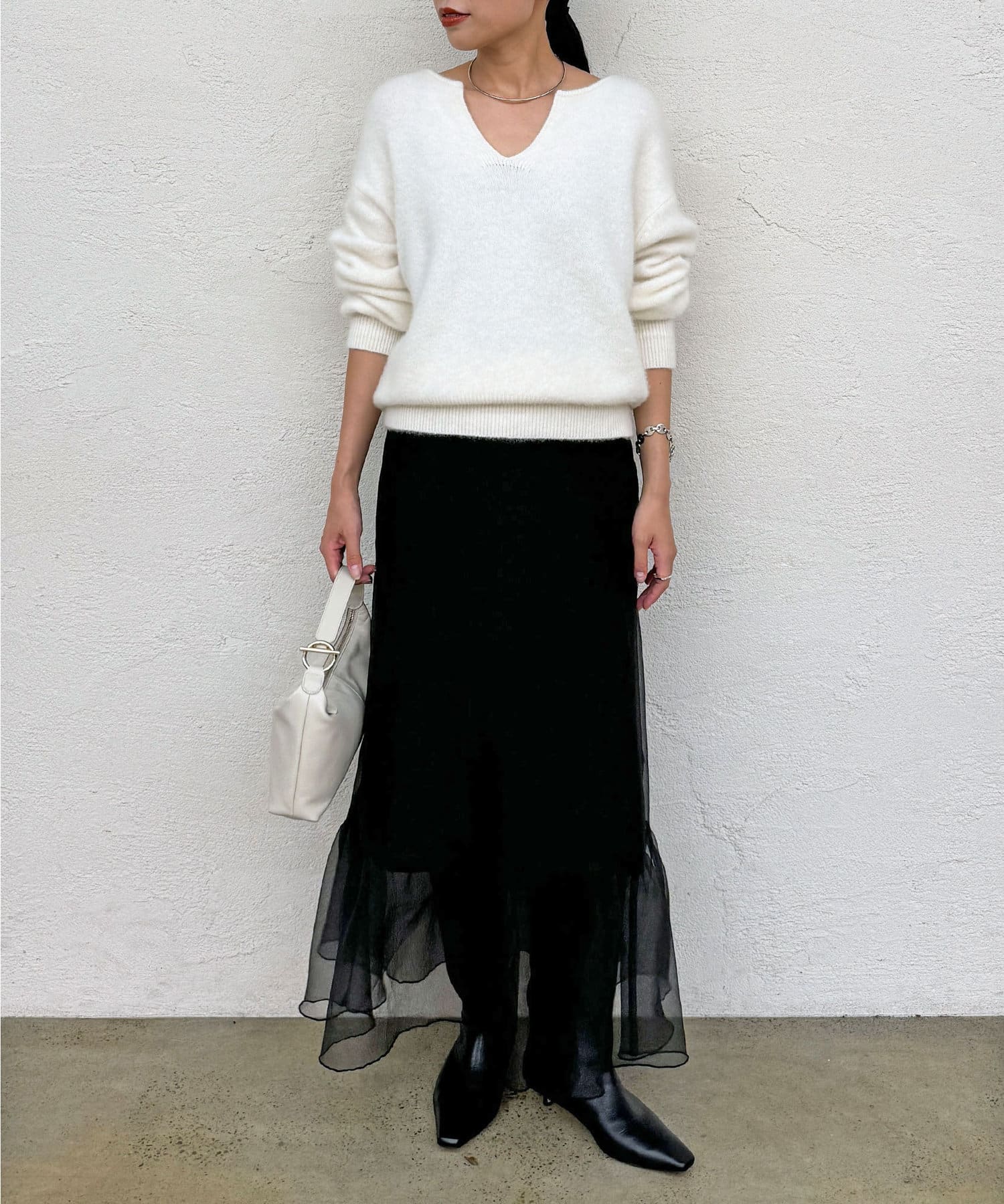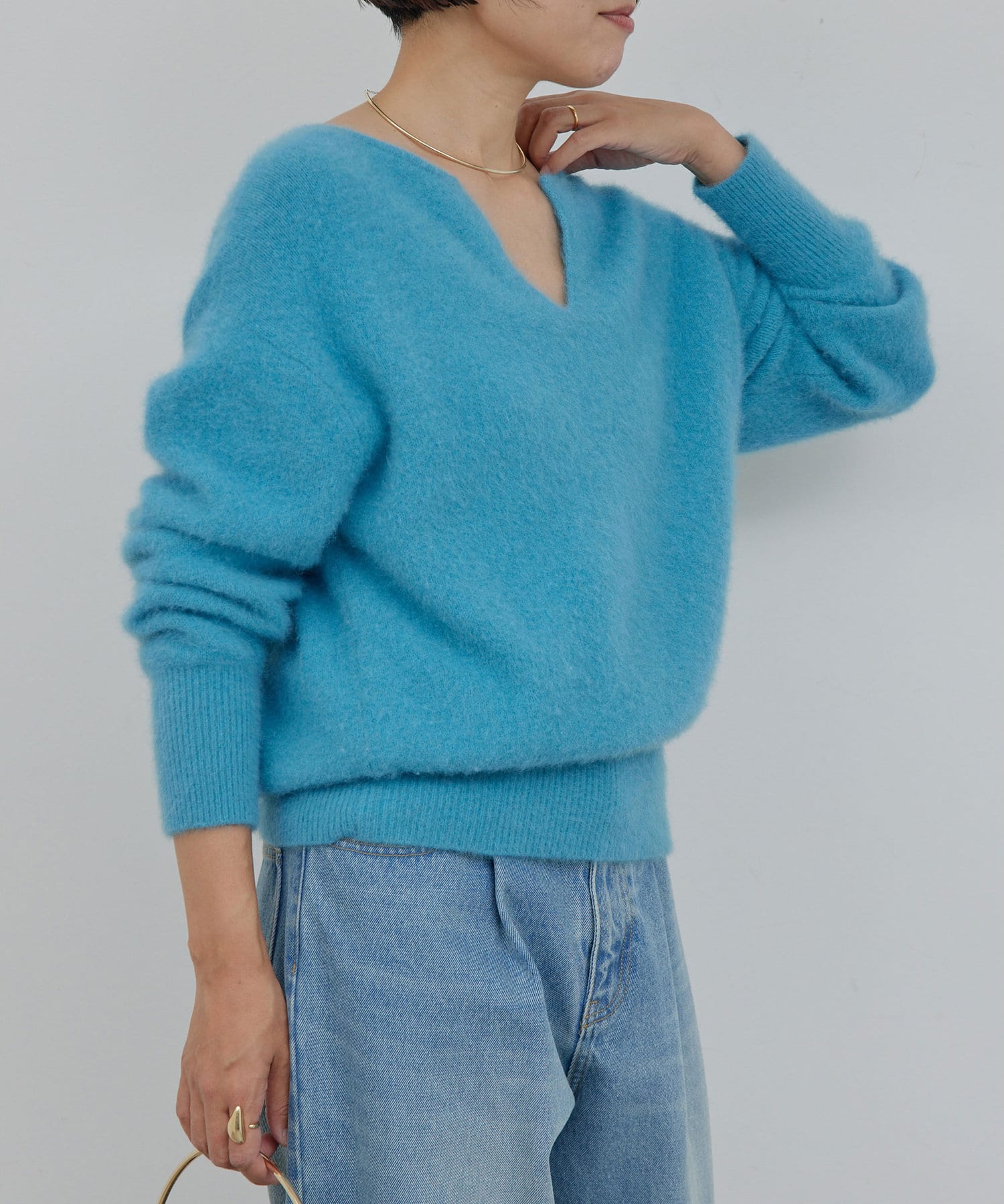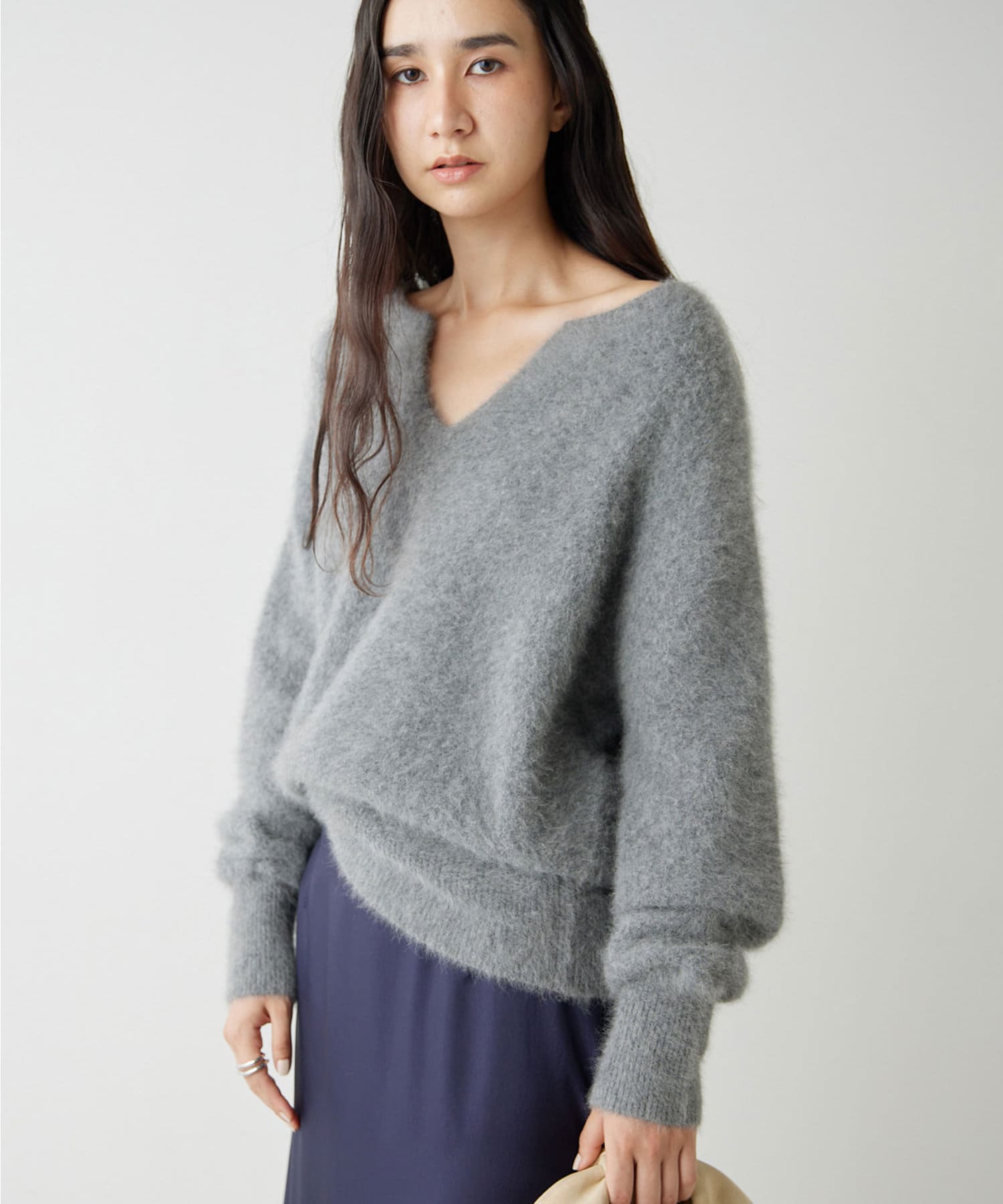 体型カバーとふんわりとした風合いが魅力のキーネックニット