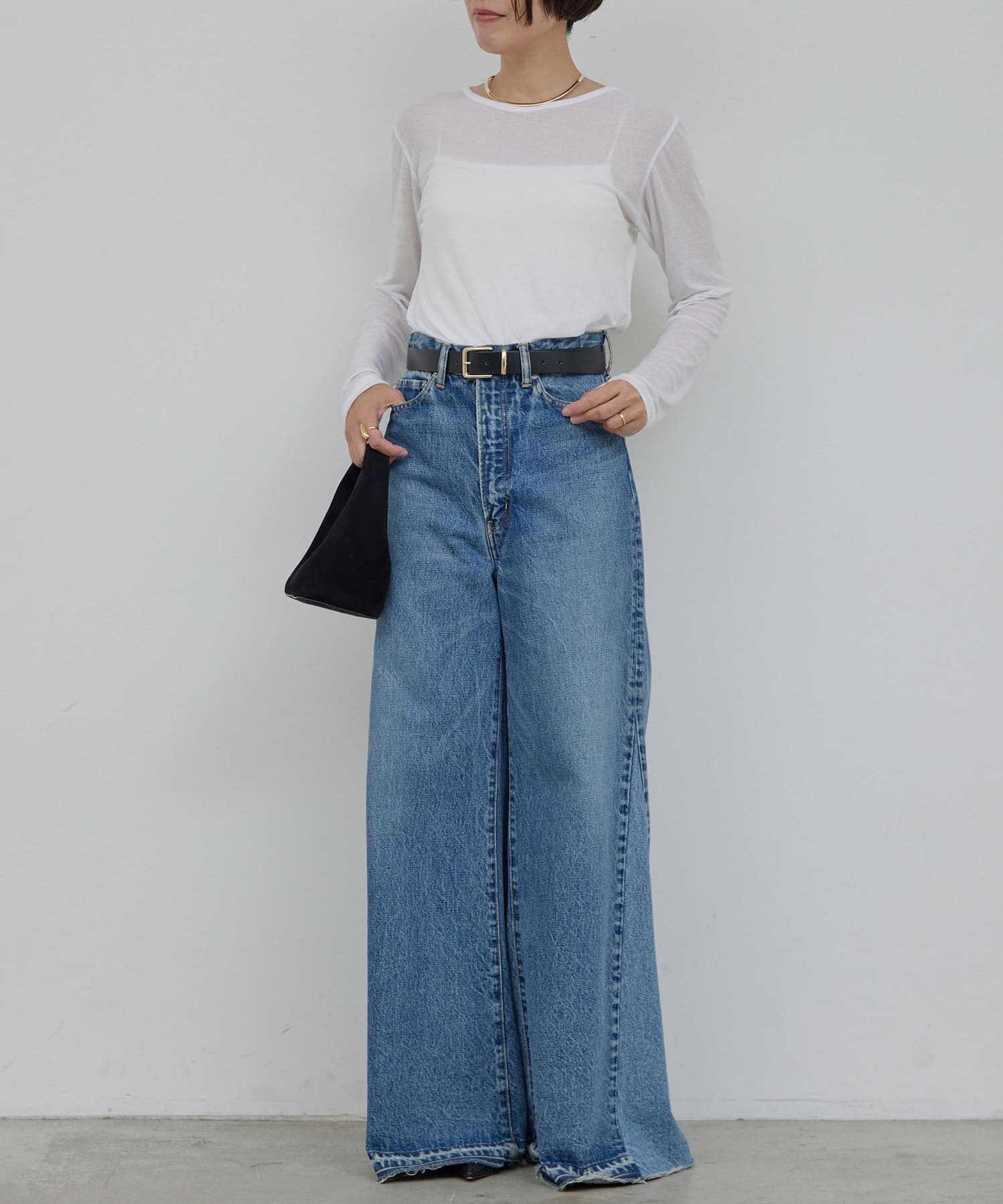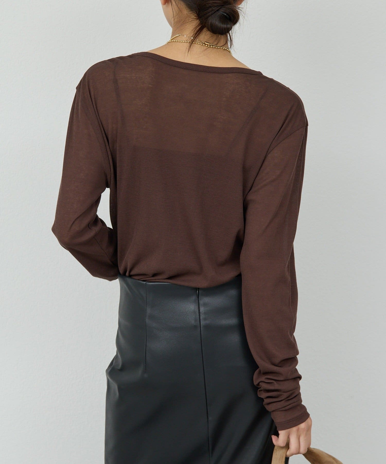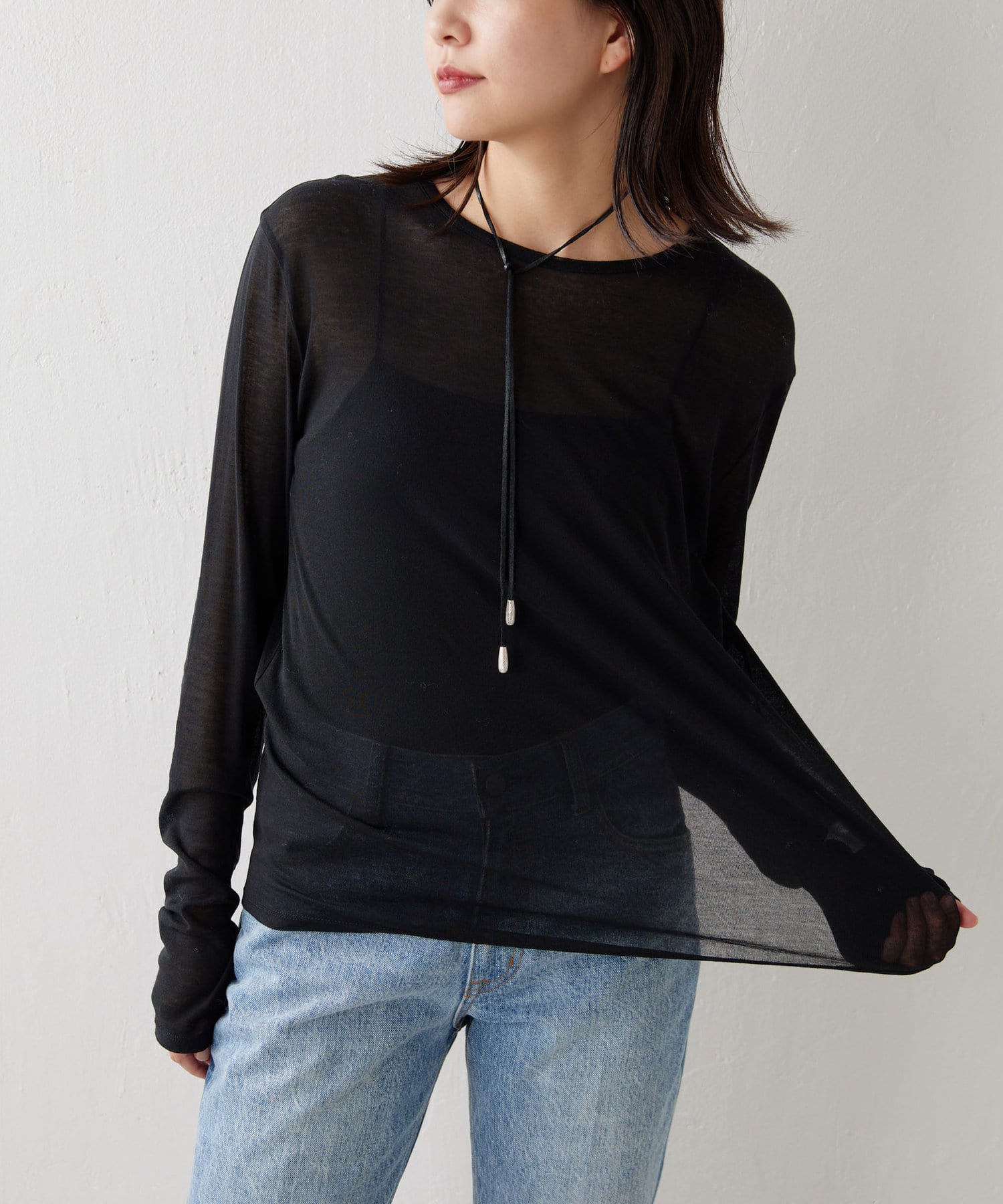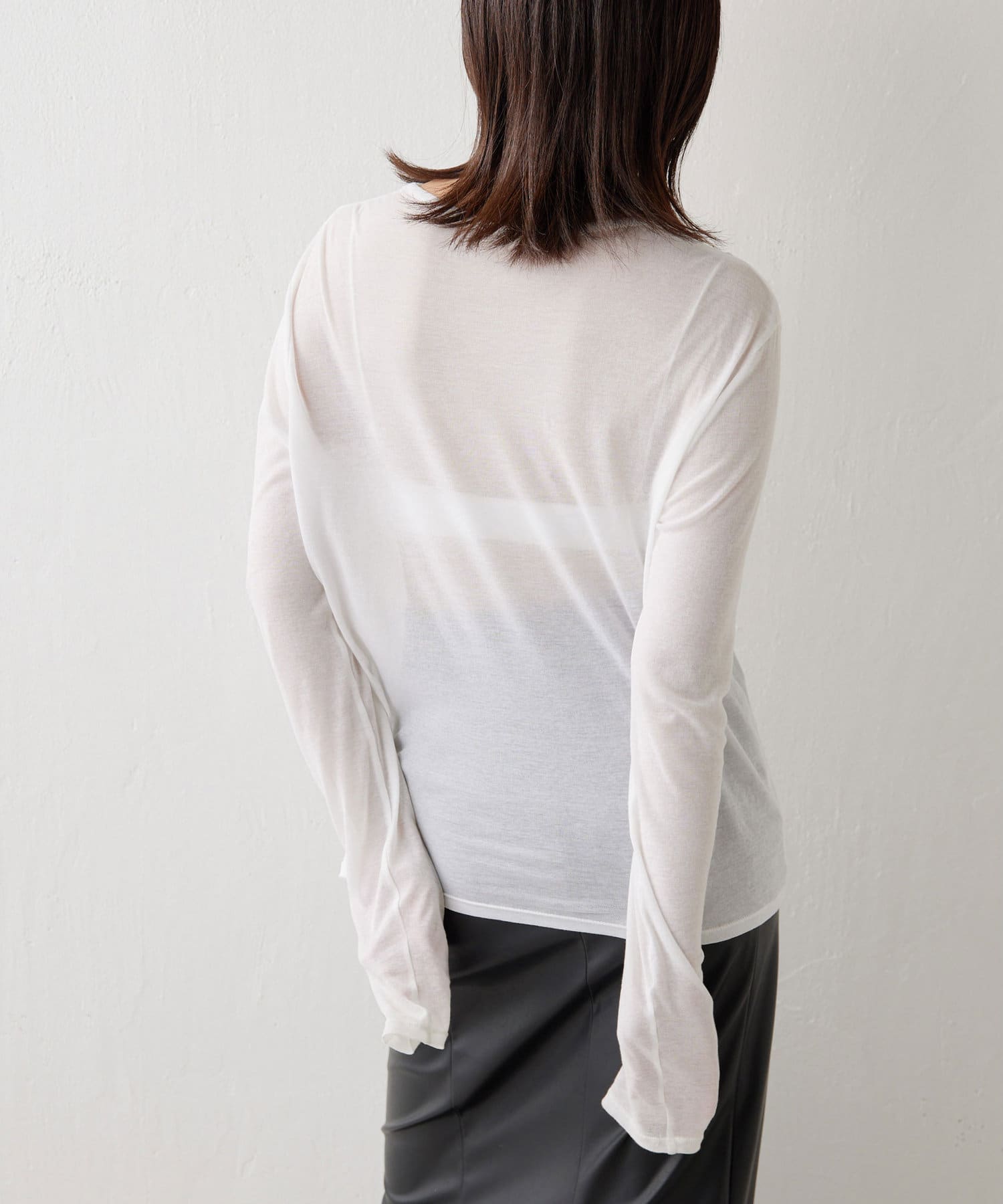 ●シアー感が旬な雰囲気を演出する薄手のロングTシャツ。