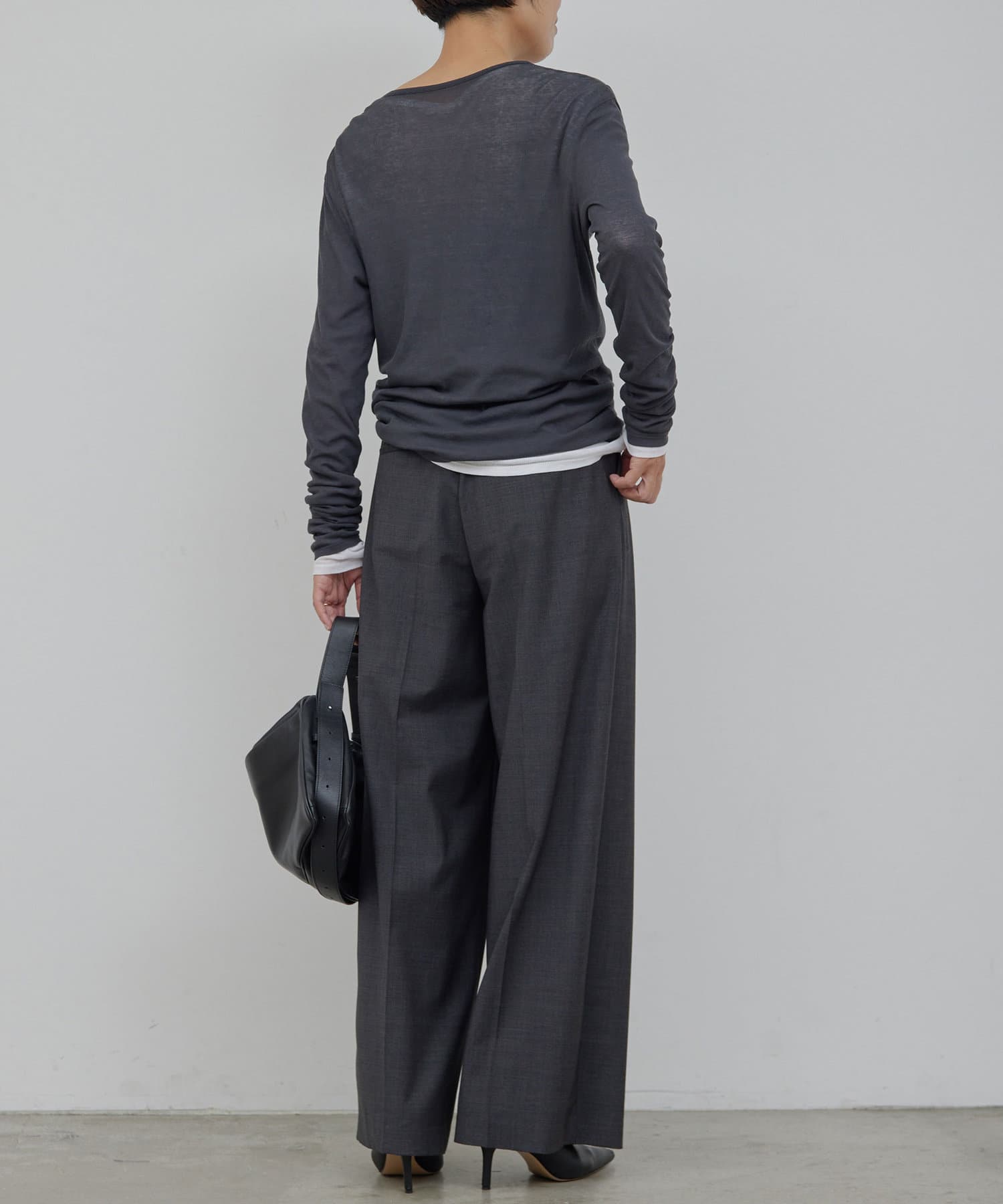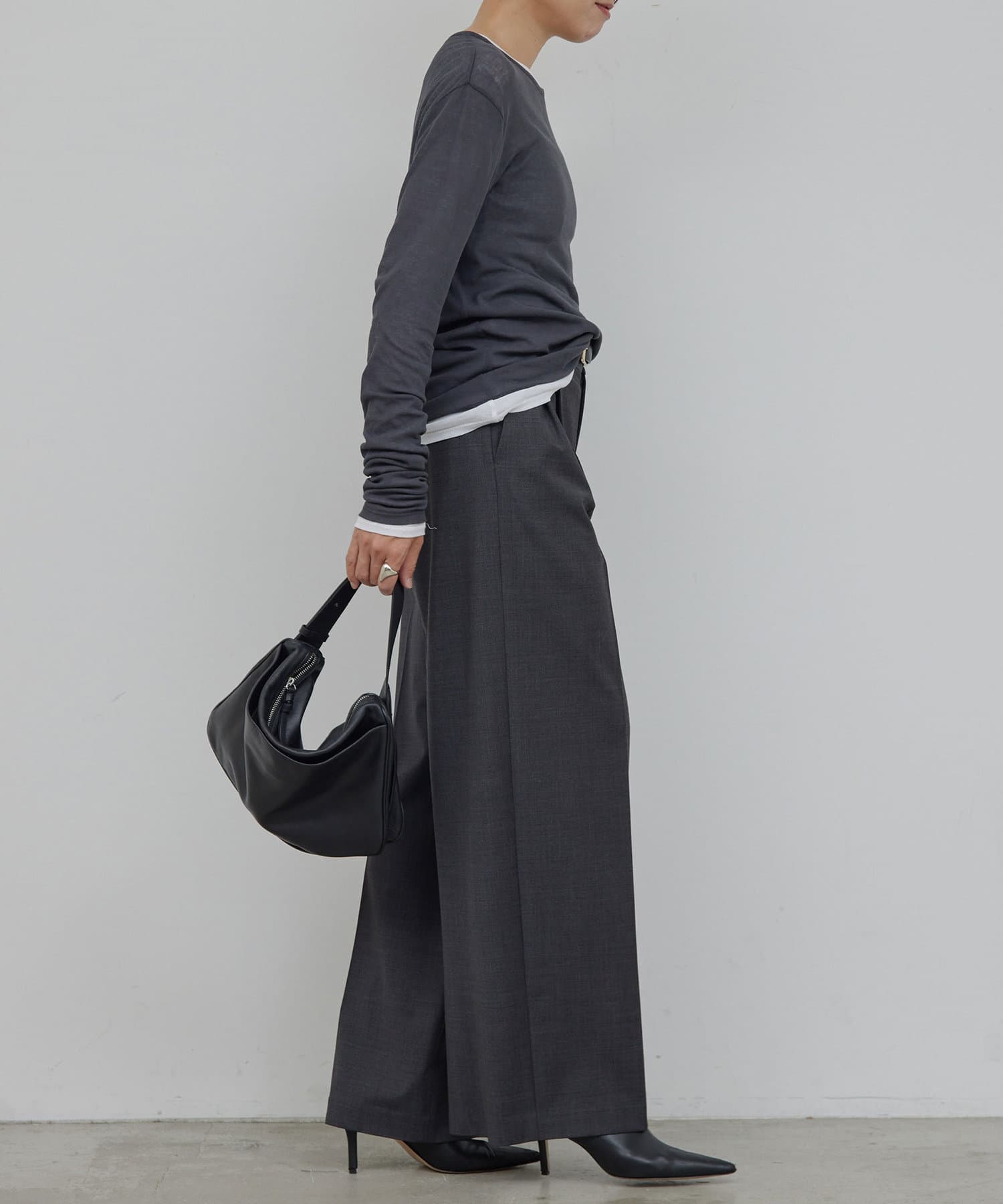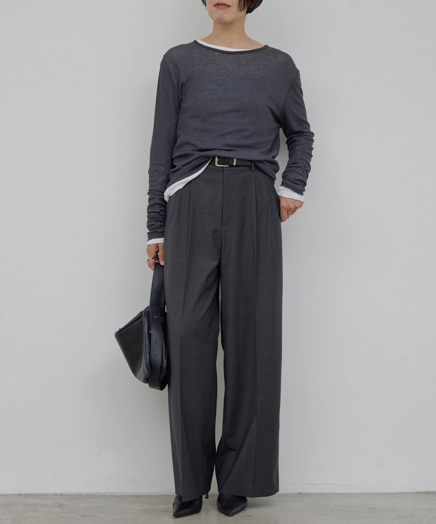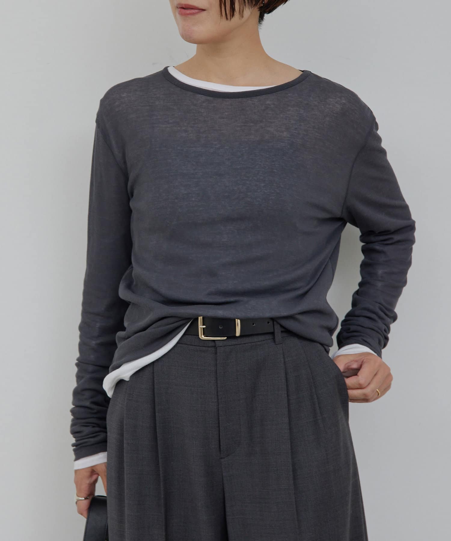 グレーの下にホワイトを着用して重ね着したりと、着こなしの幅が広がります。
