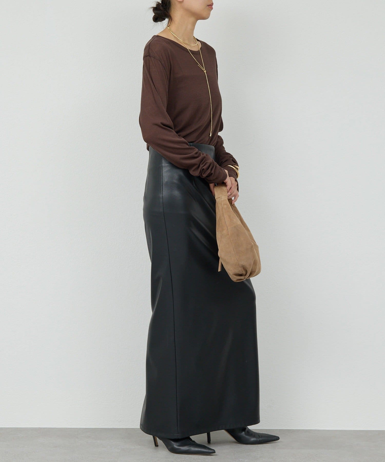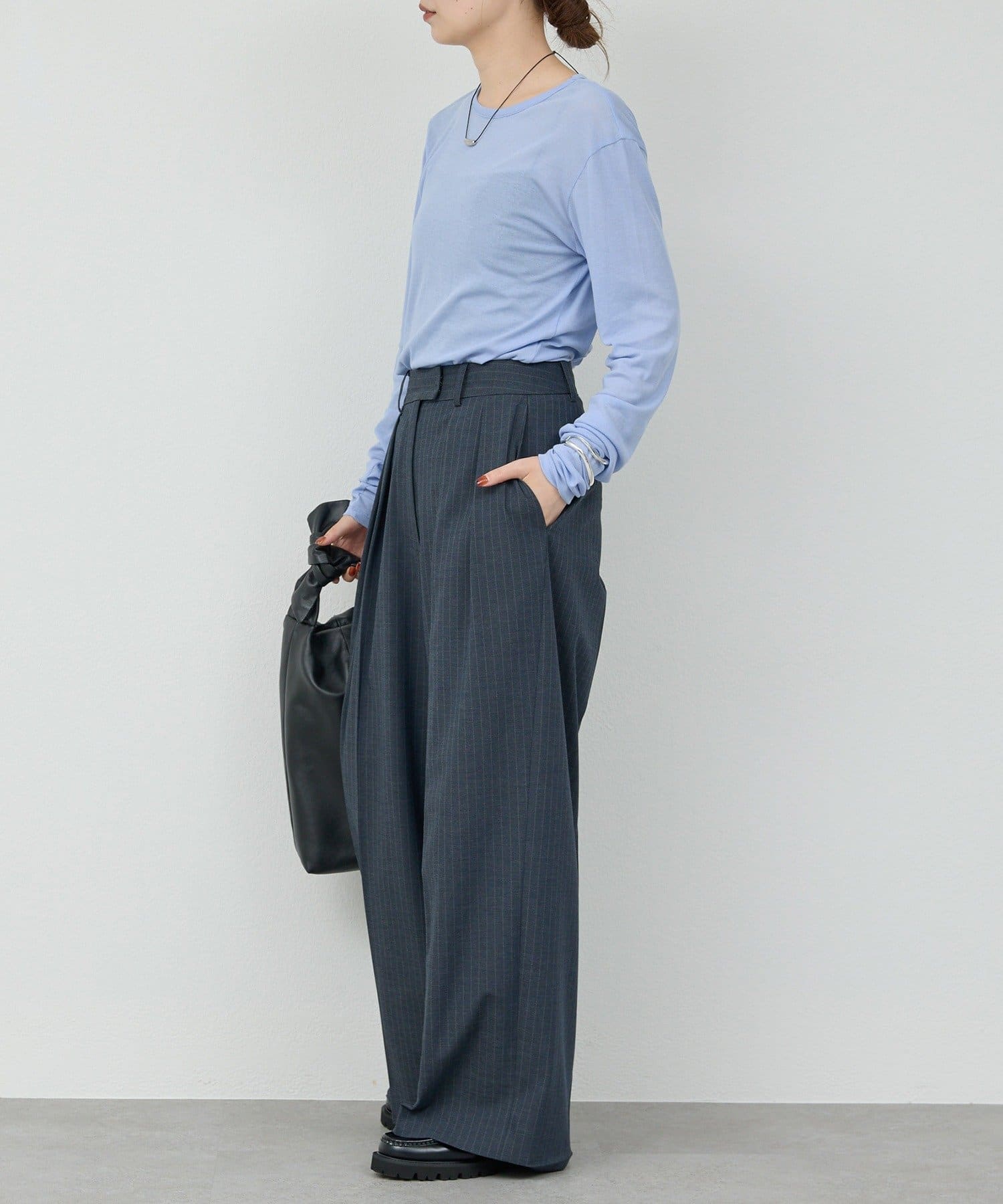 ●手元にニュアンスがつく長めの袖丈。