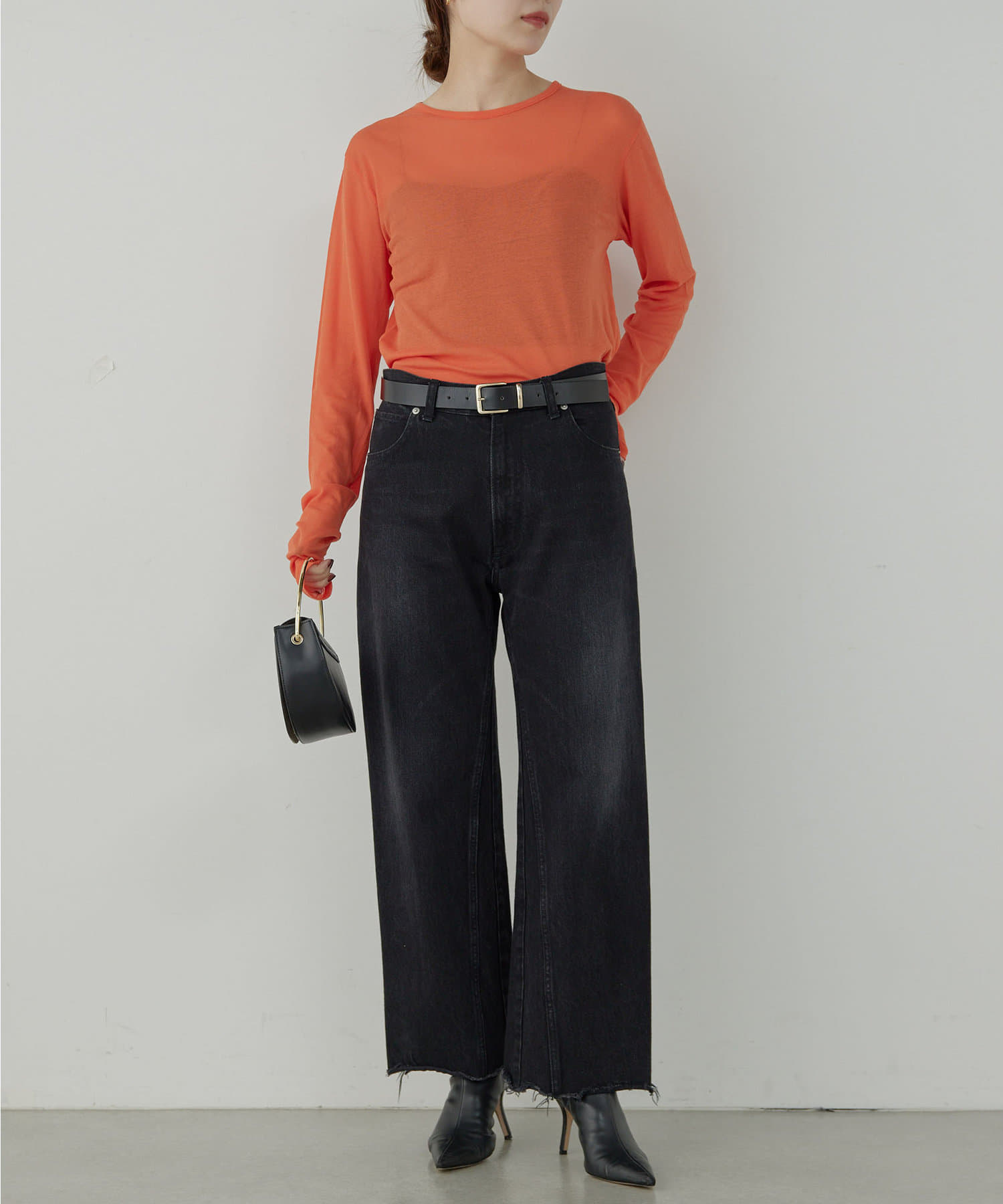 ●シアー感が旬な雰囲気を演出する薄手のロングTシャツ。