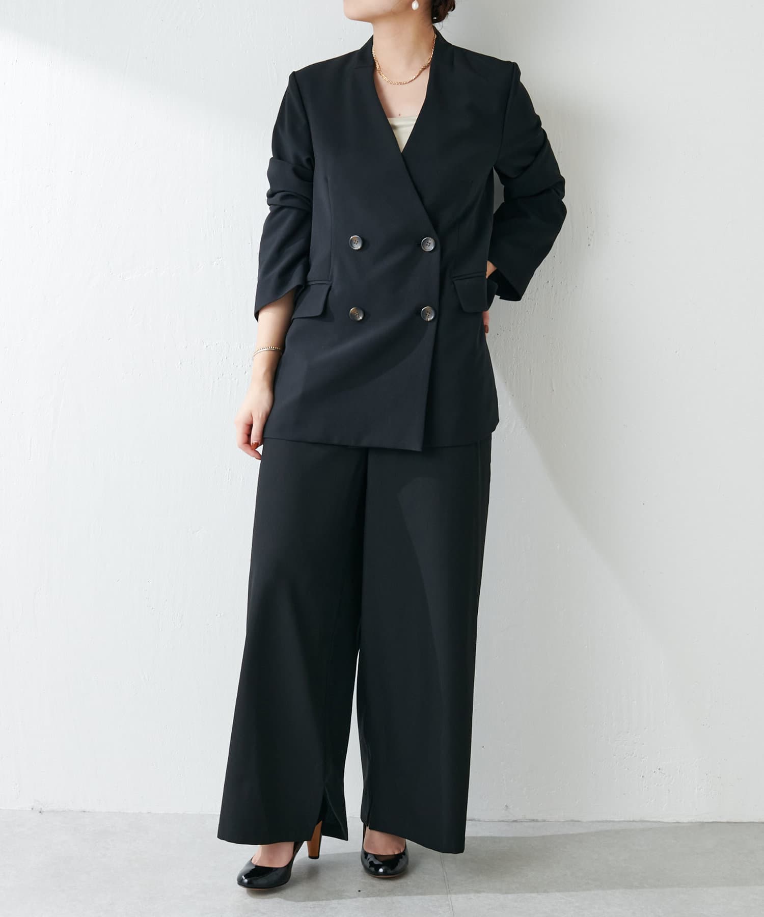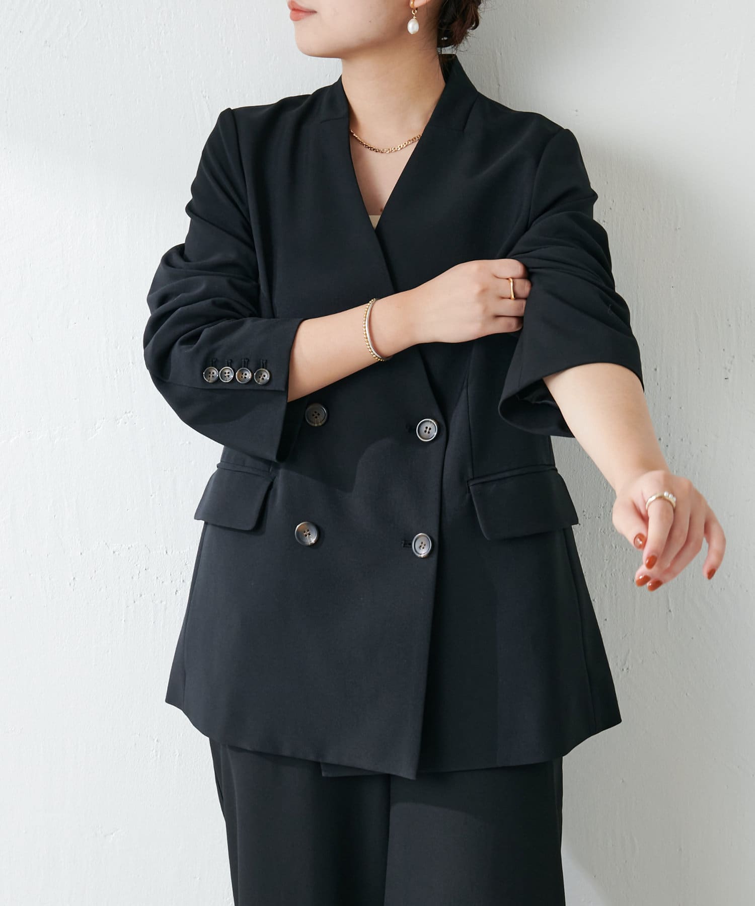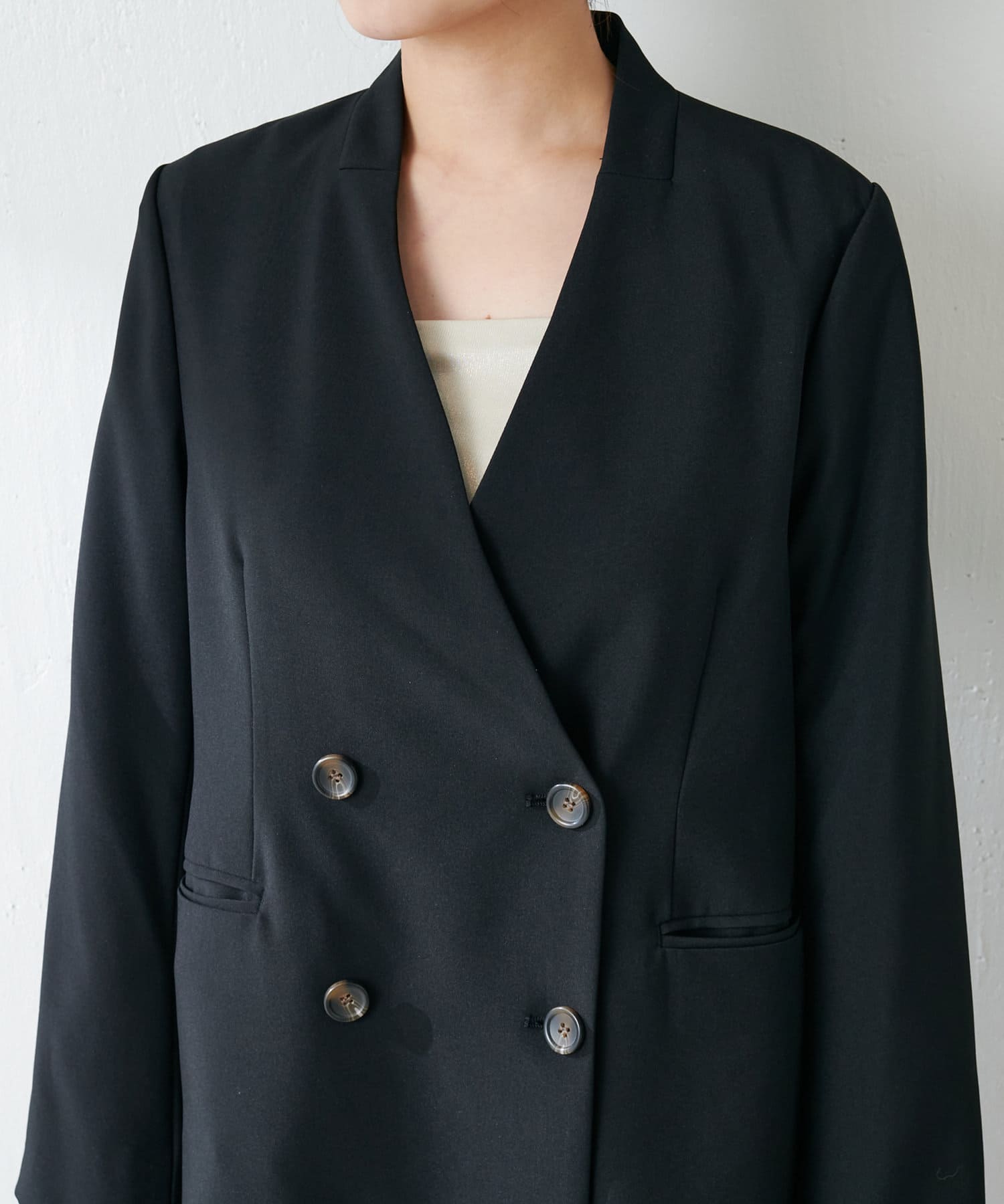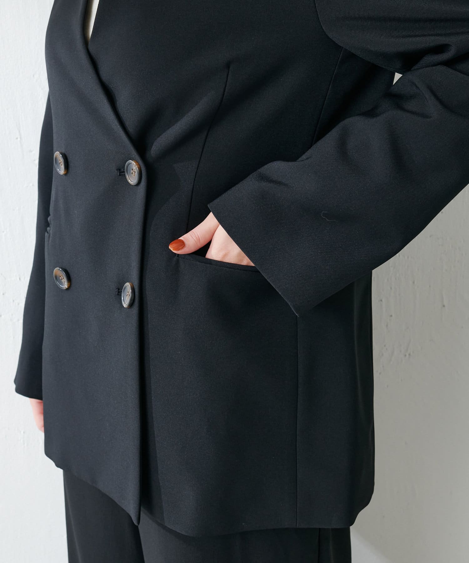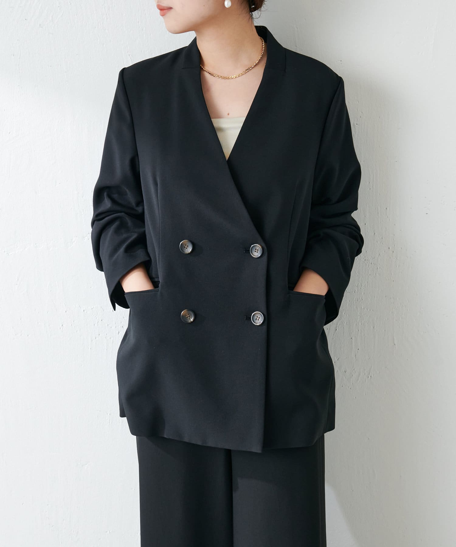 ・オケージョンからデイリーまで、オンオフ使えるノーカラーダブルジャケット。