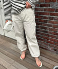 ゆったりしていてはきやすいです。裾を絞る金具が金色で良いです。少しシワになりやすいかも。