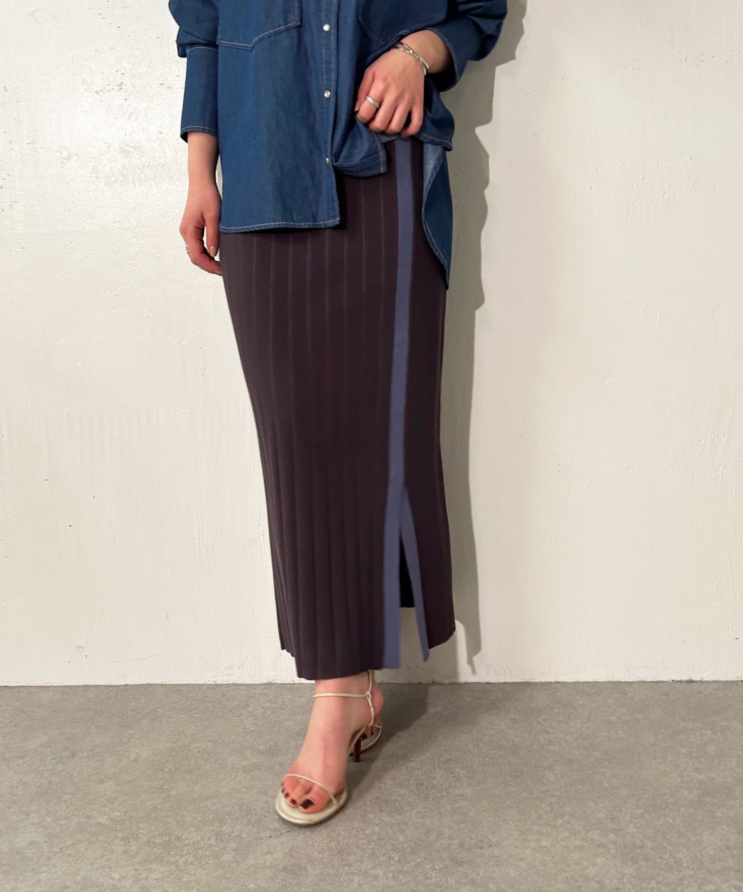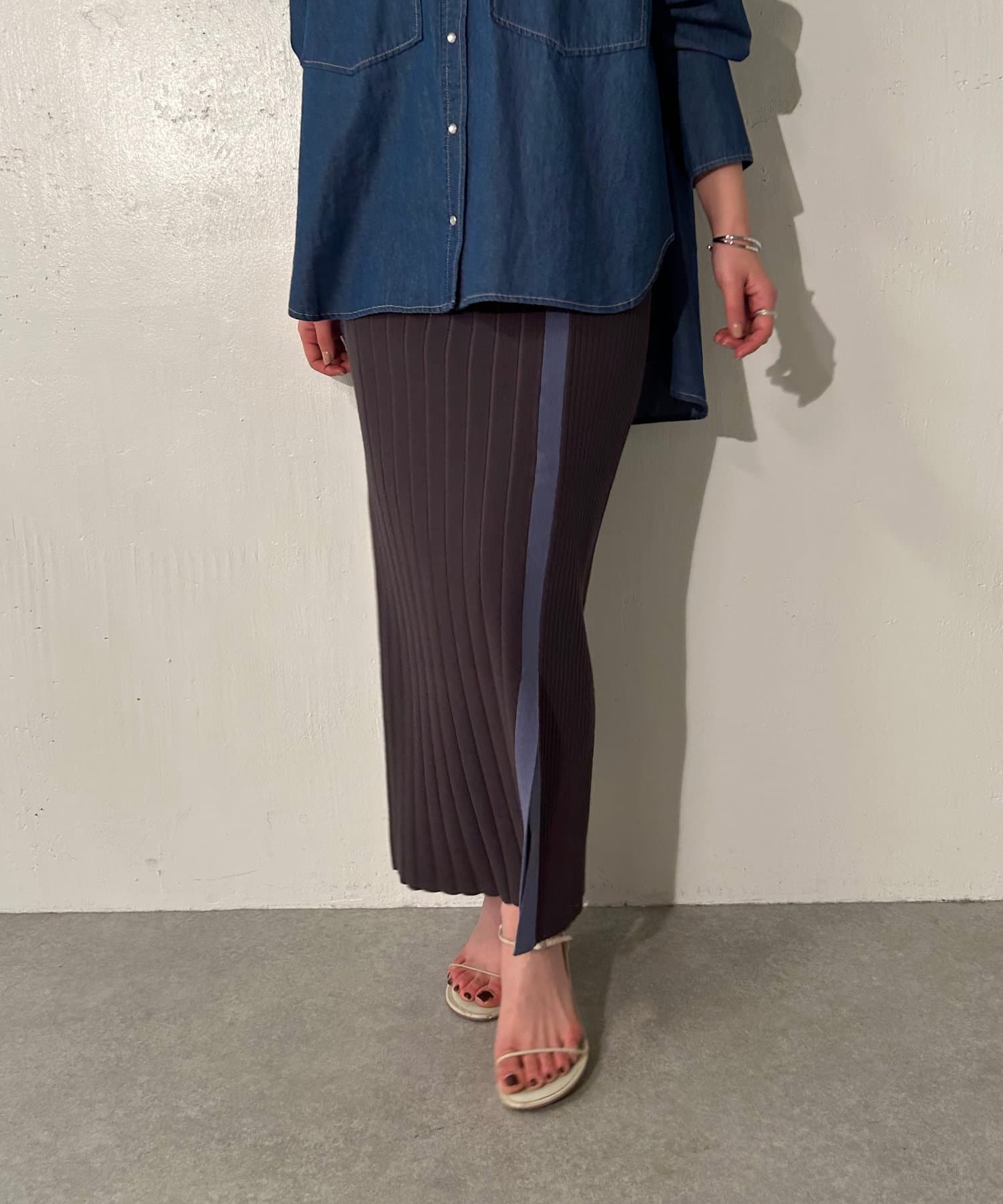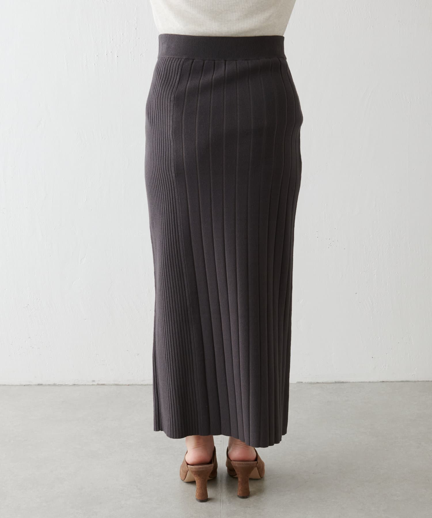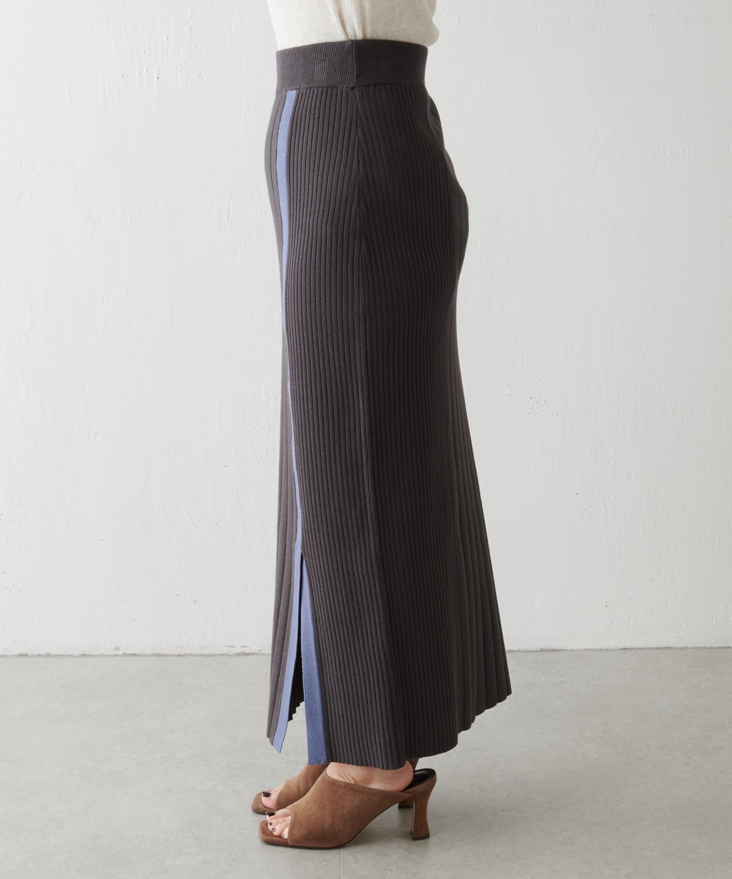 【美シルエット】リブニットラインスカート