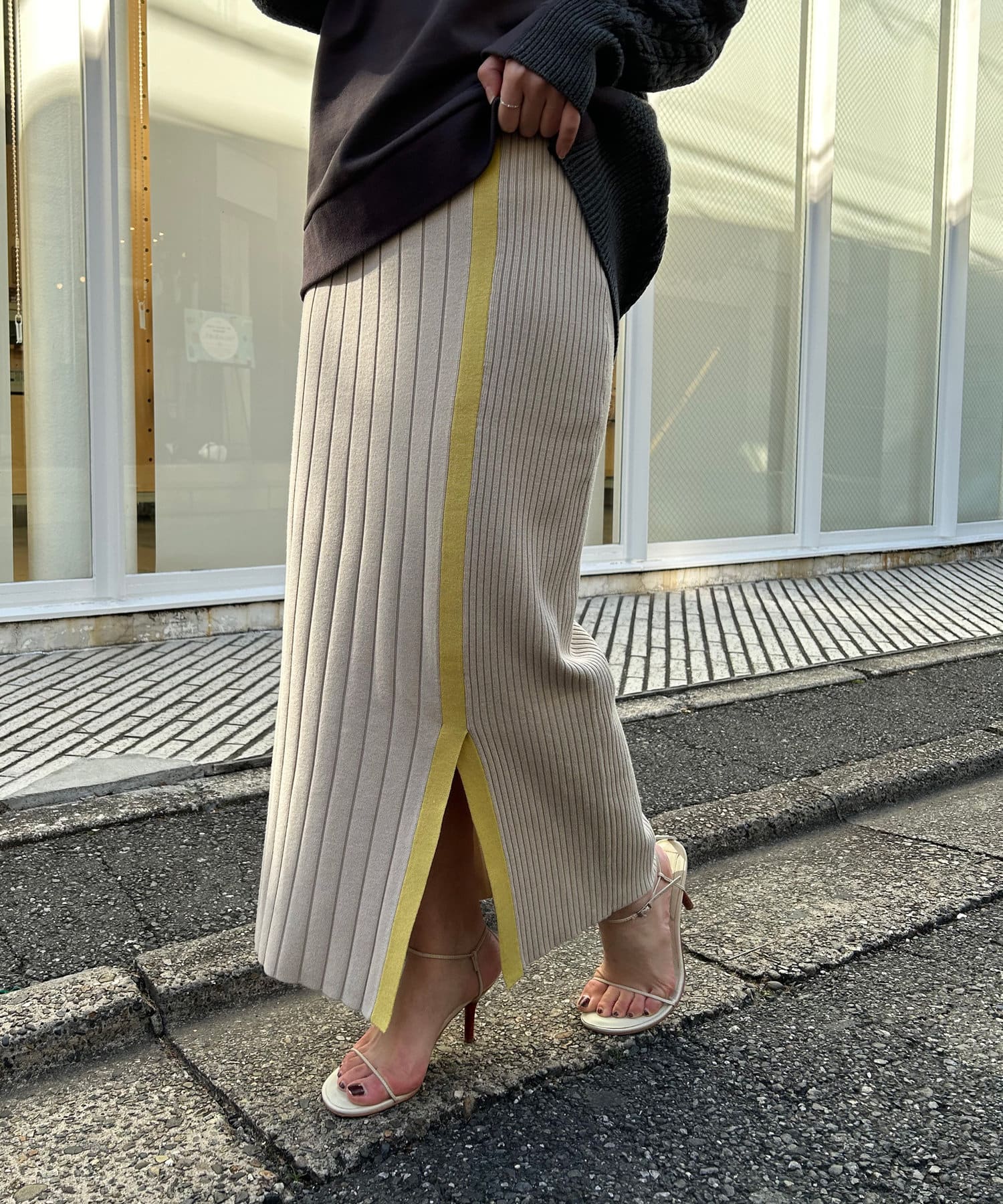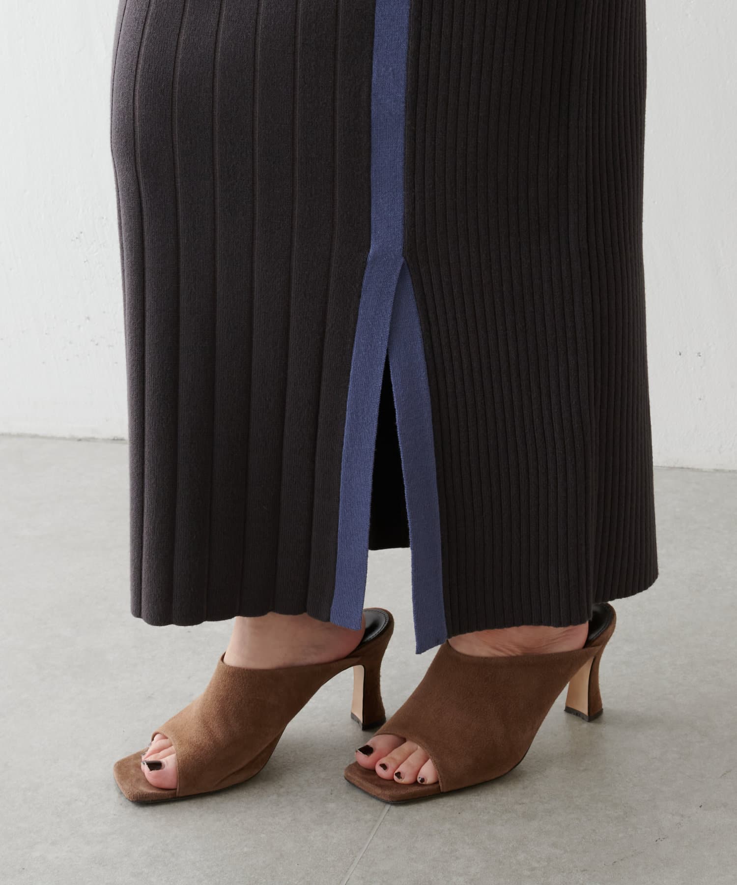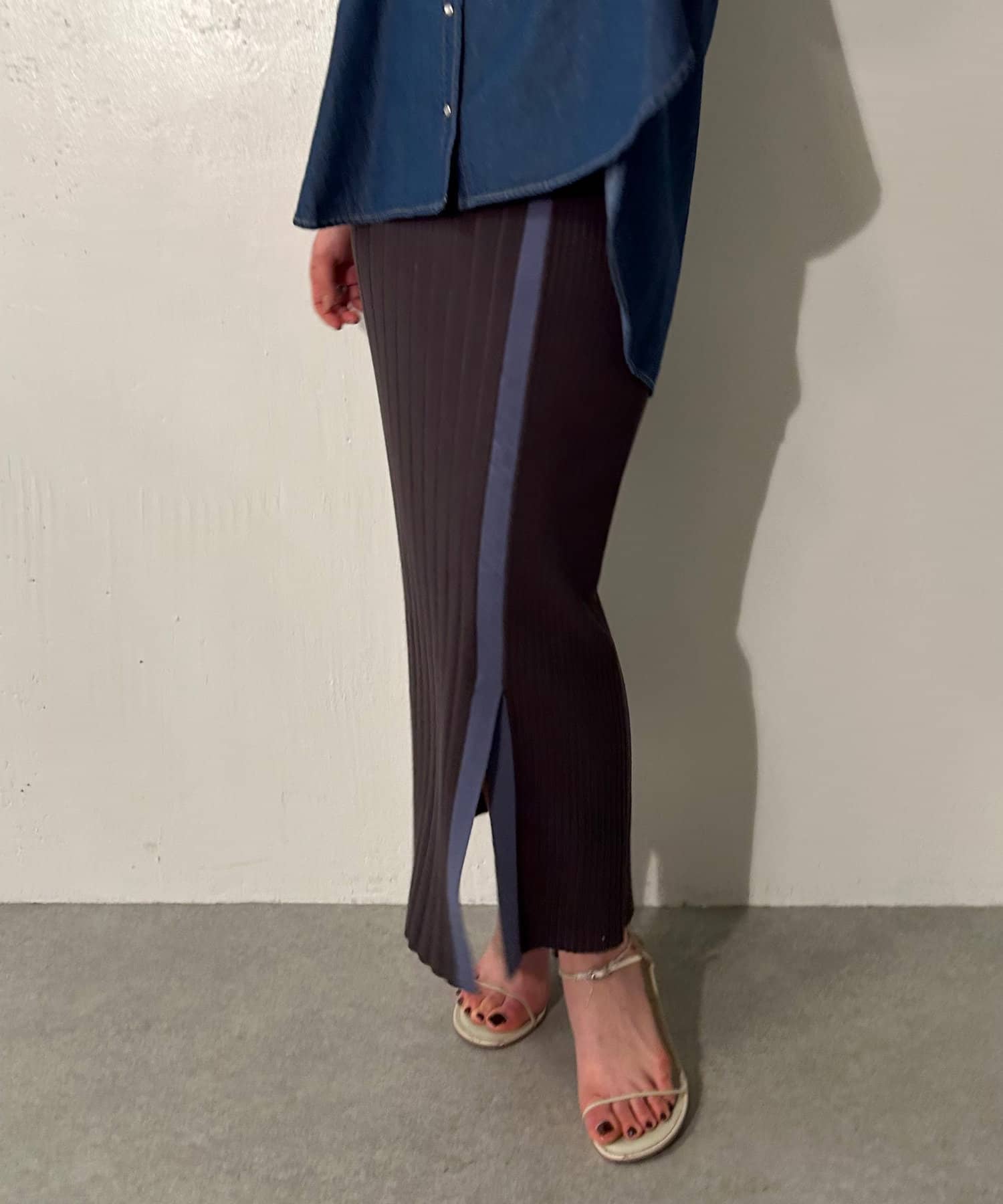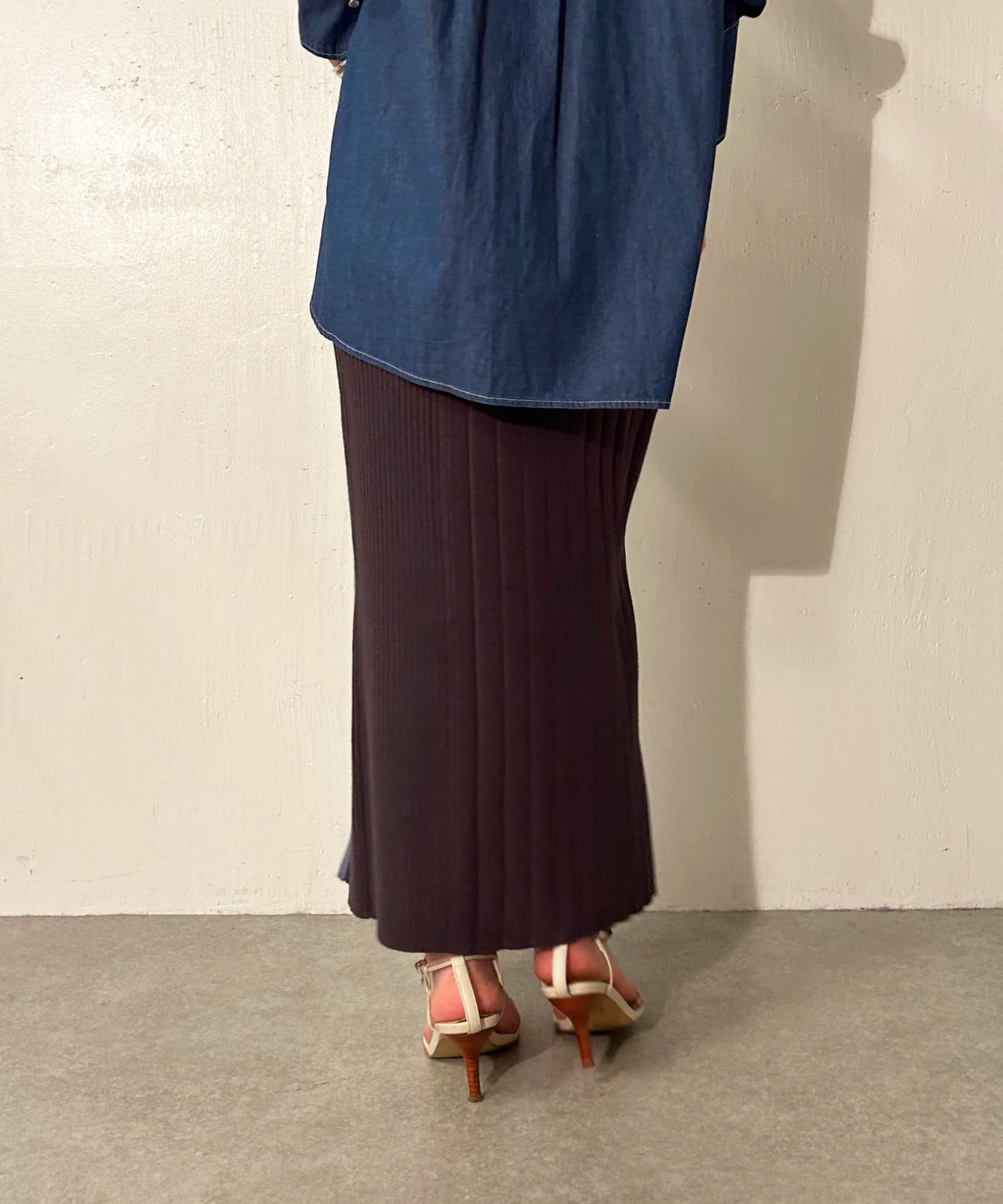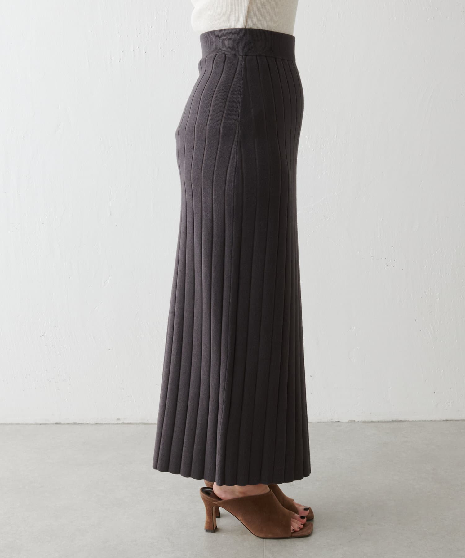 【美シルエット】リブニットラインスカート