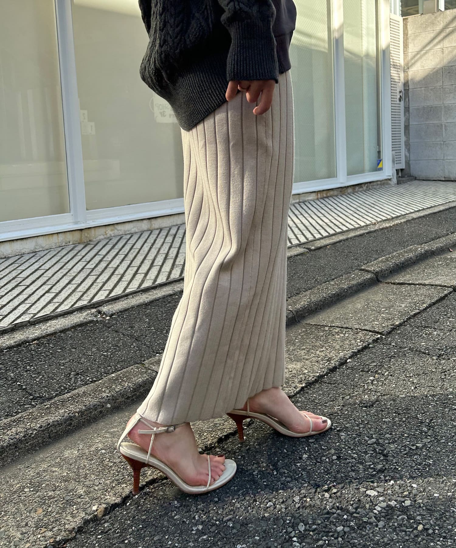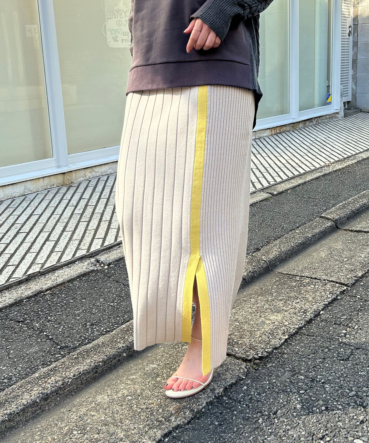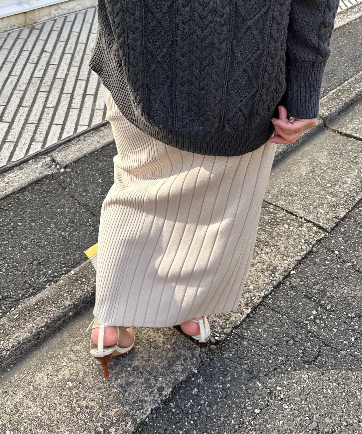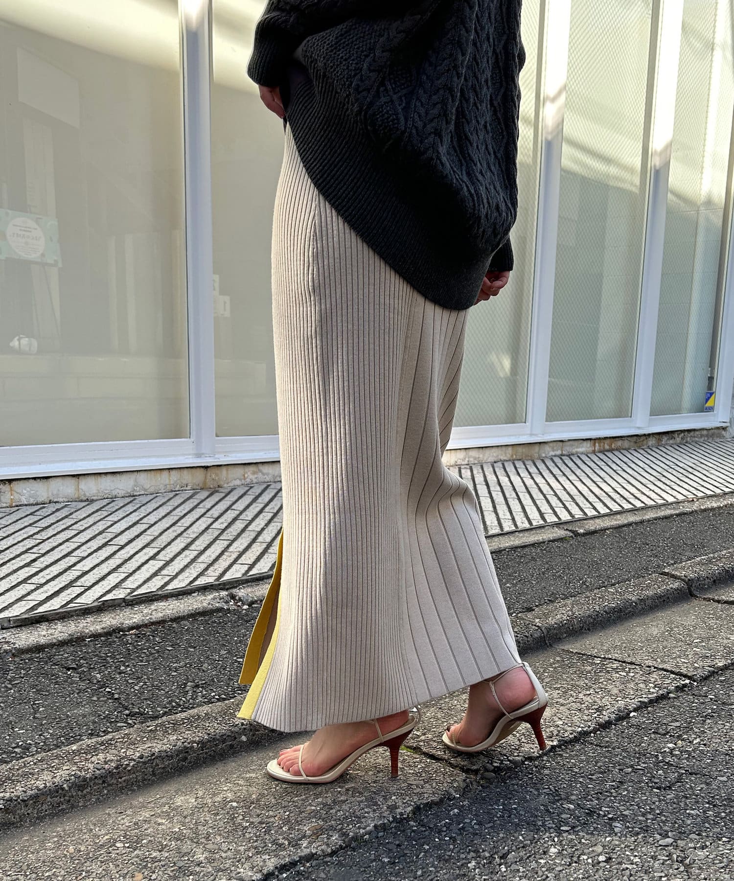【美シルエット】リブニットラインスカート
