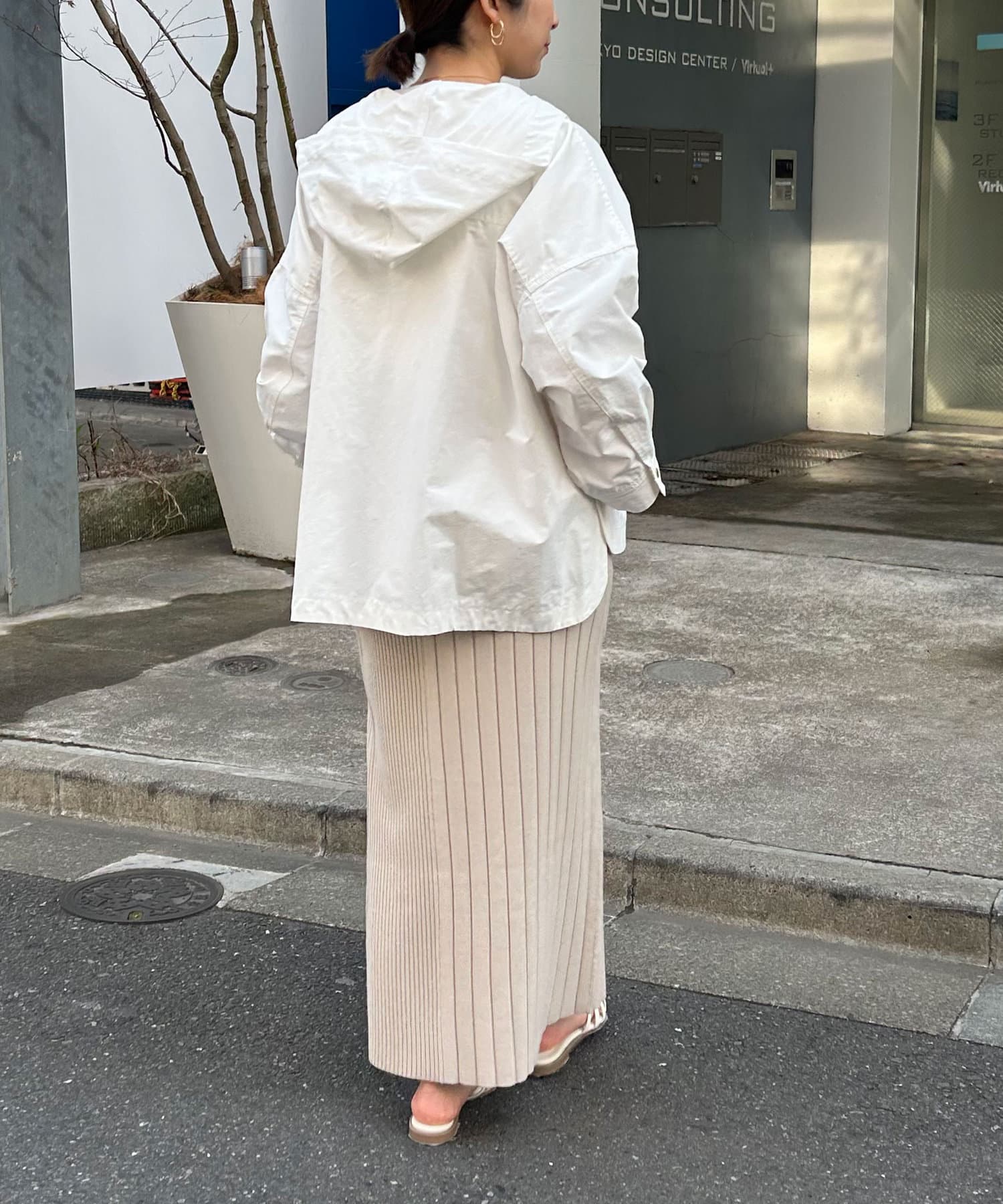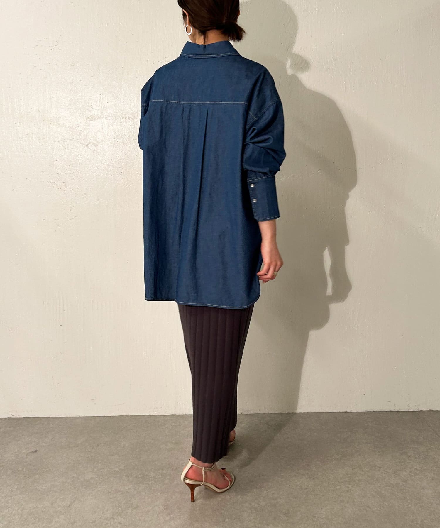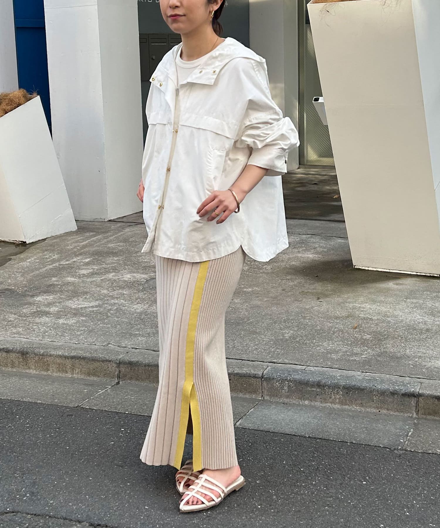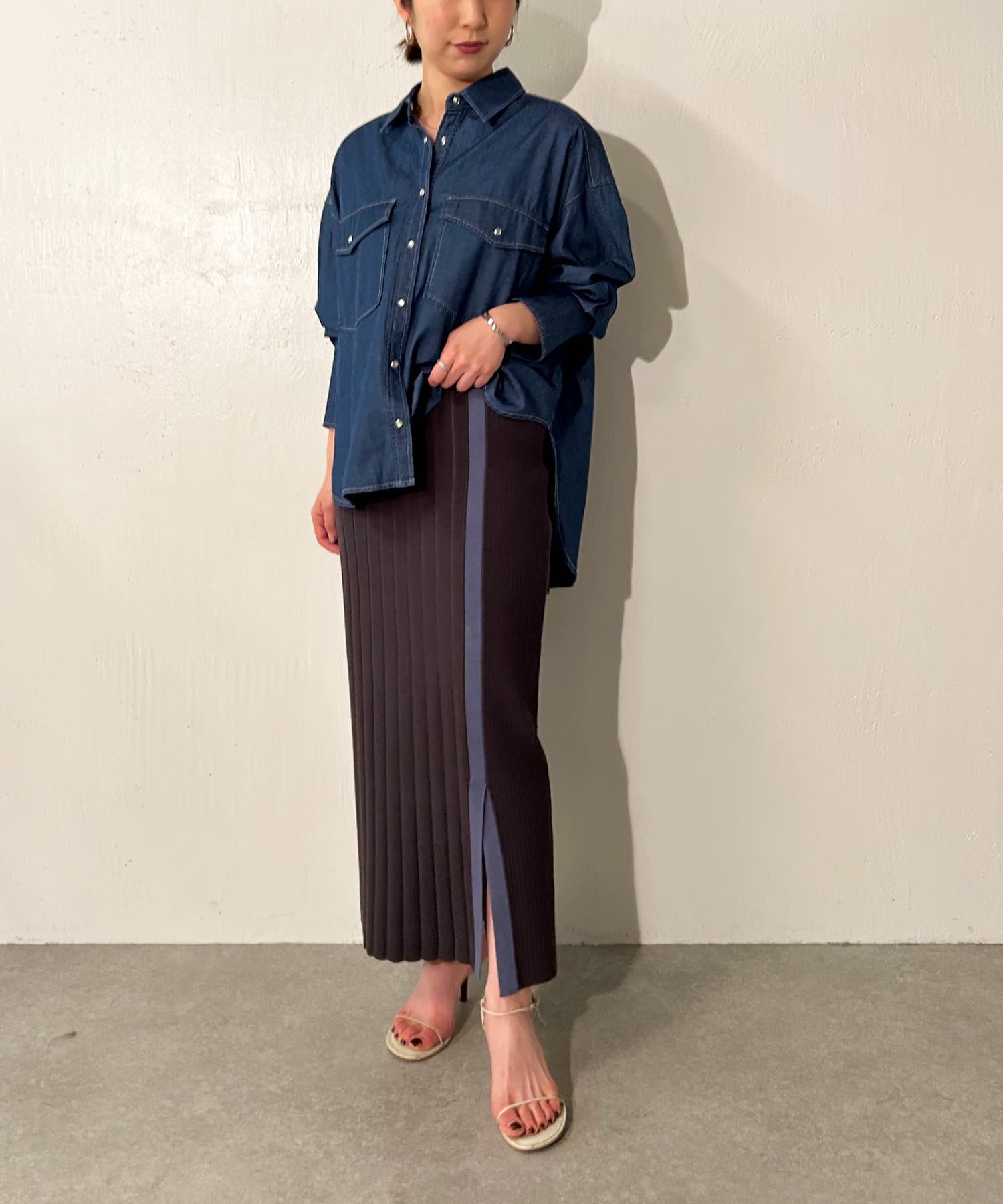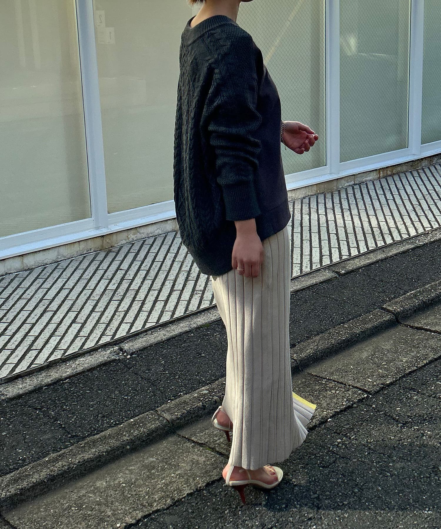 ・ざっくりと入ったスリットが、抜け感と女性らしさを演出。