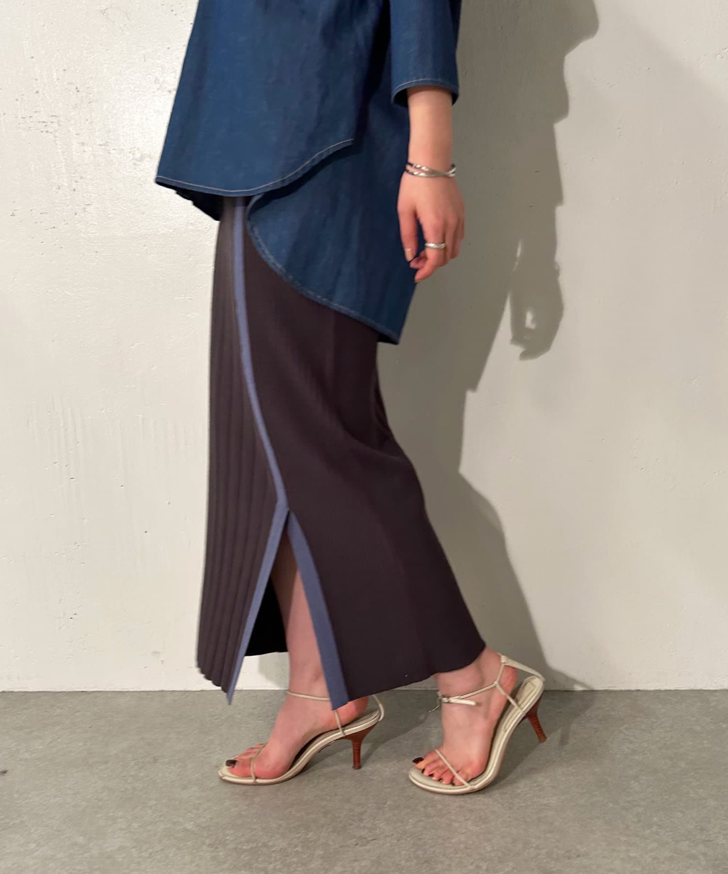 ・スリット部分の延長戦で施されたカラーのラインがコーディネートのアクセントに◎