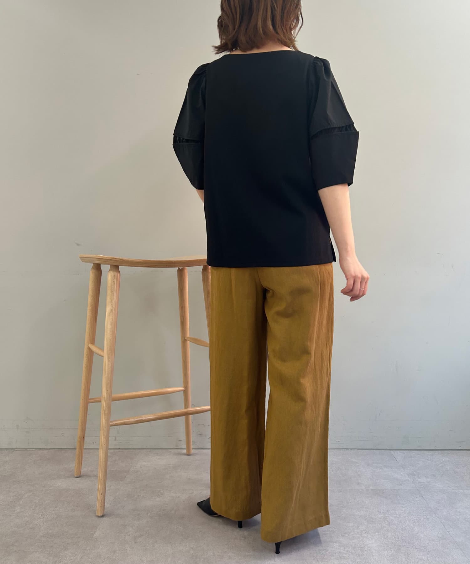 ・広がり過ぎない絶妙なワイドシルエットで、落ち感があるので履くだけでこなれ感が出せるパンツ。