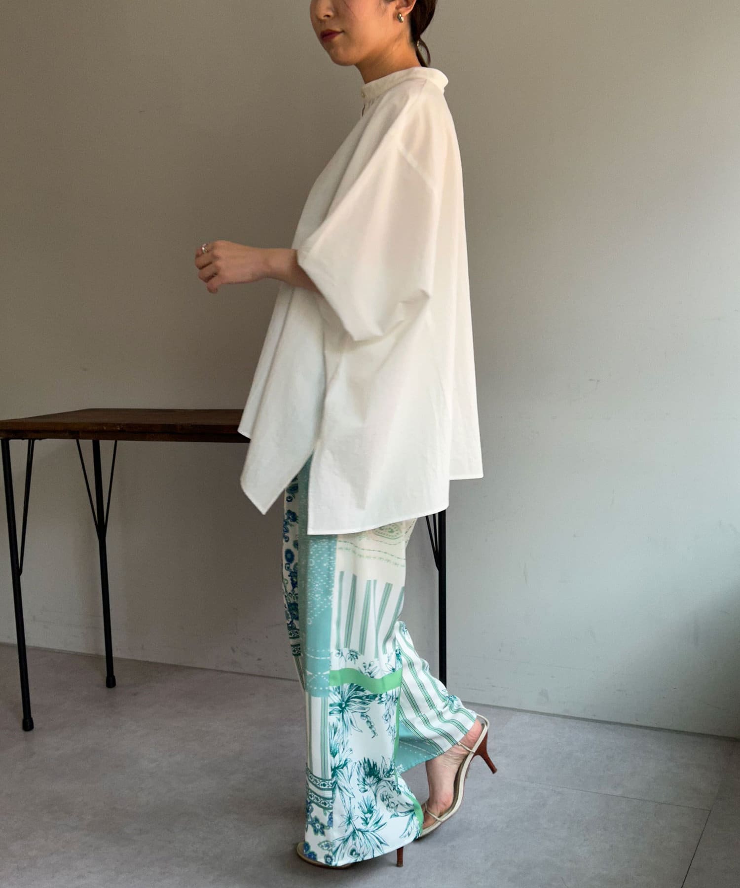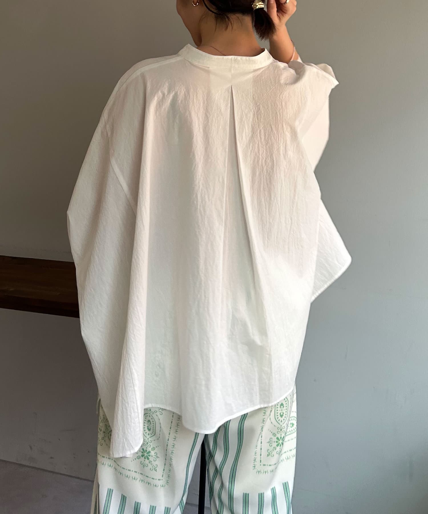 ・かっちりしすぎないシャツブラウスなのでカジュアルなボトムスとも相性が良くおすすめです。