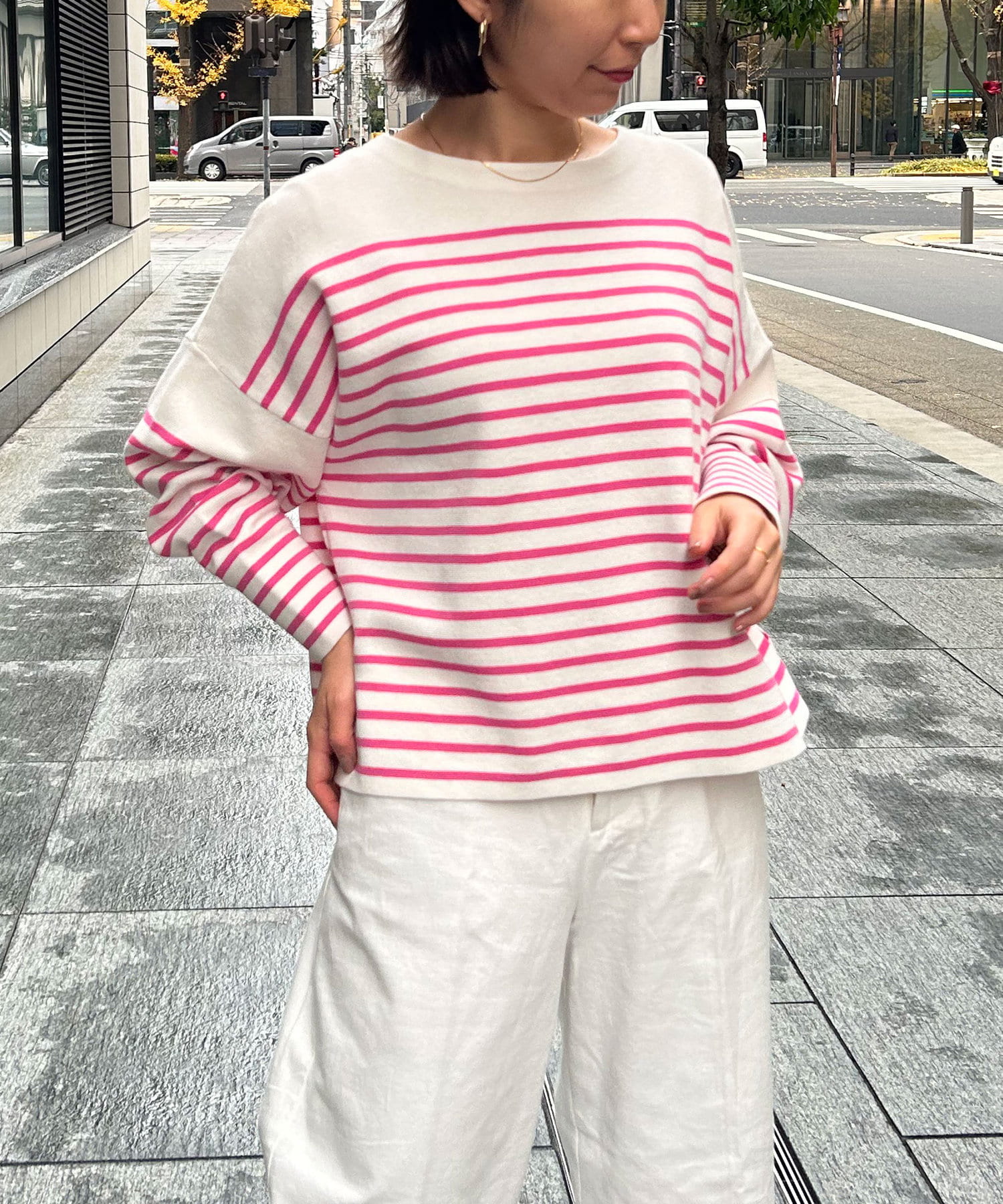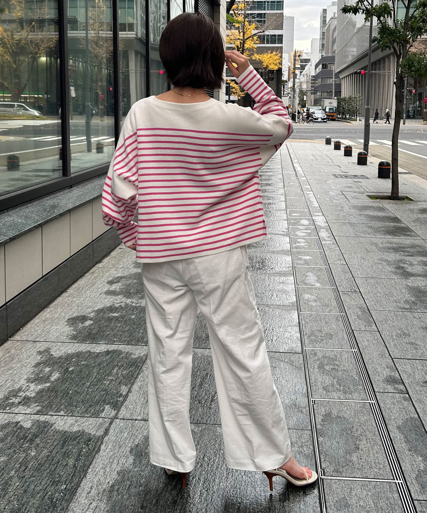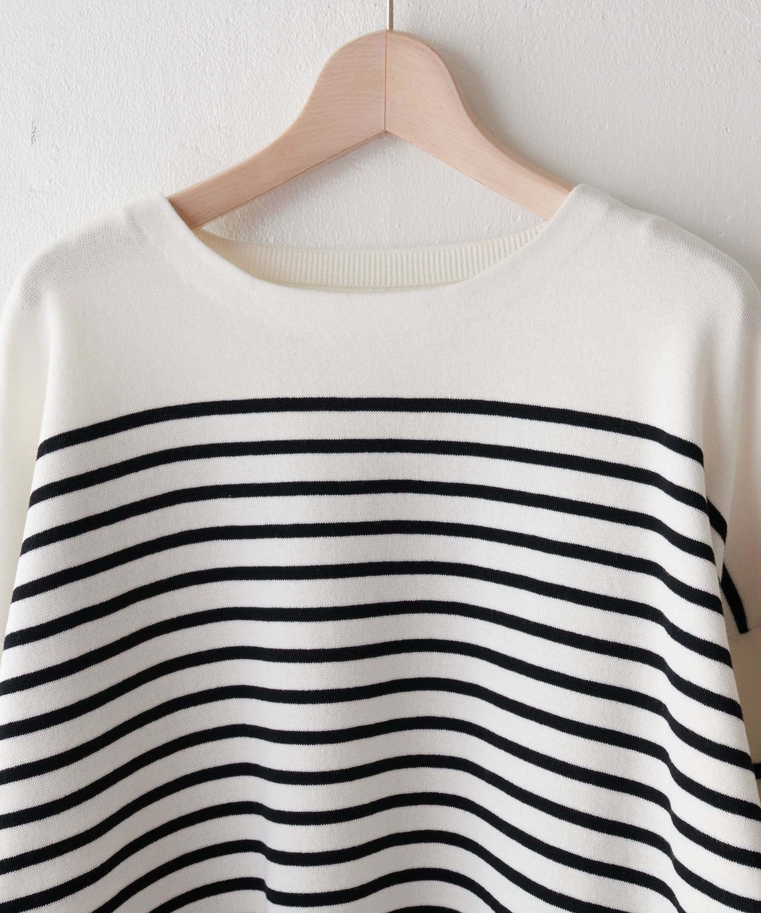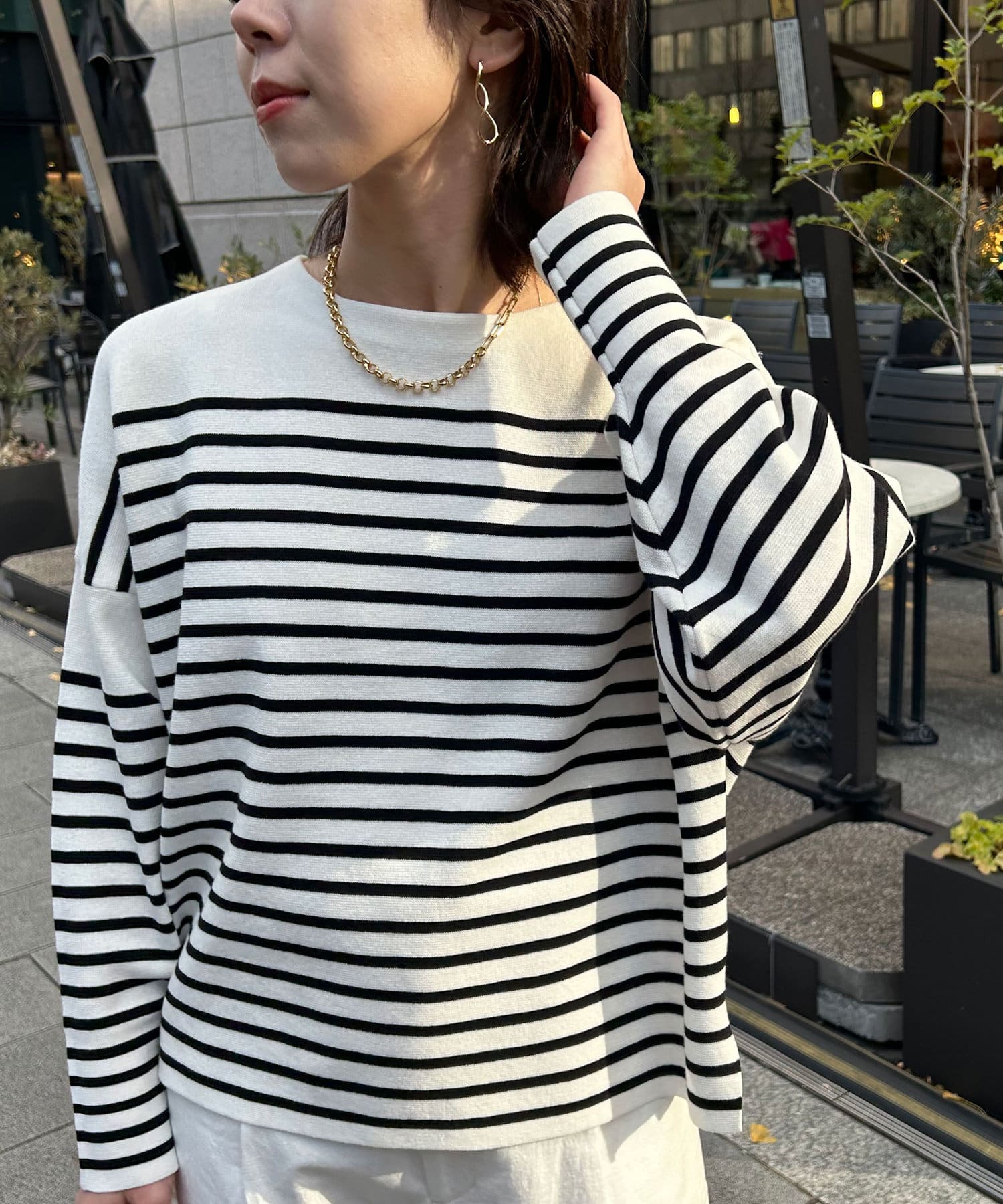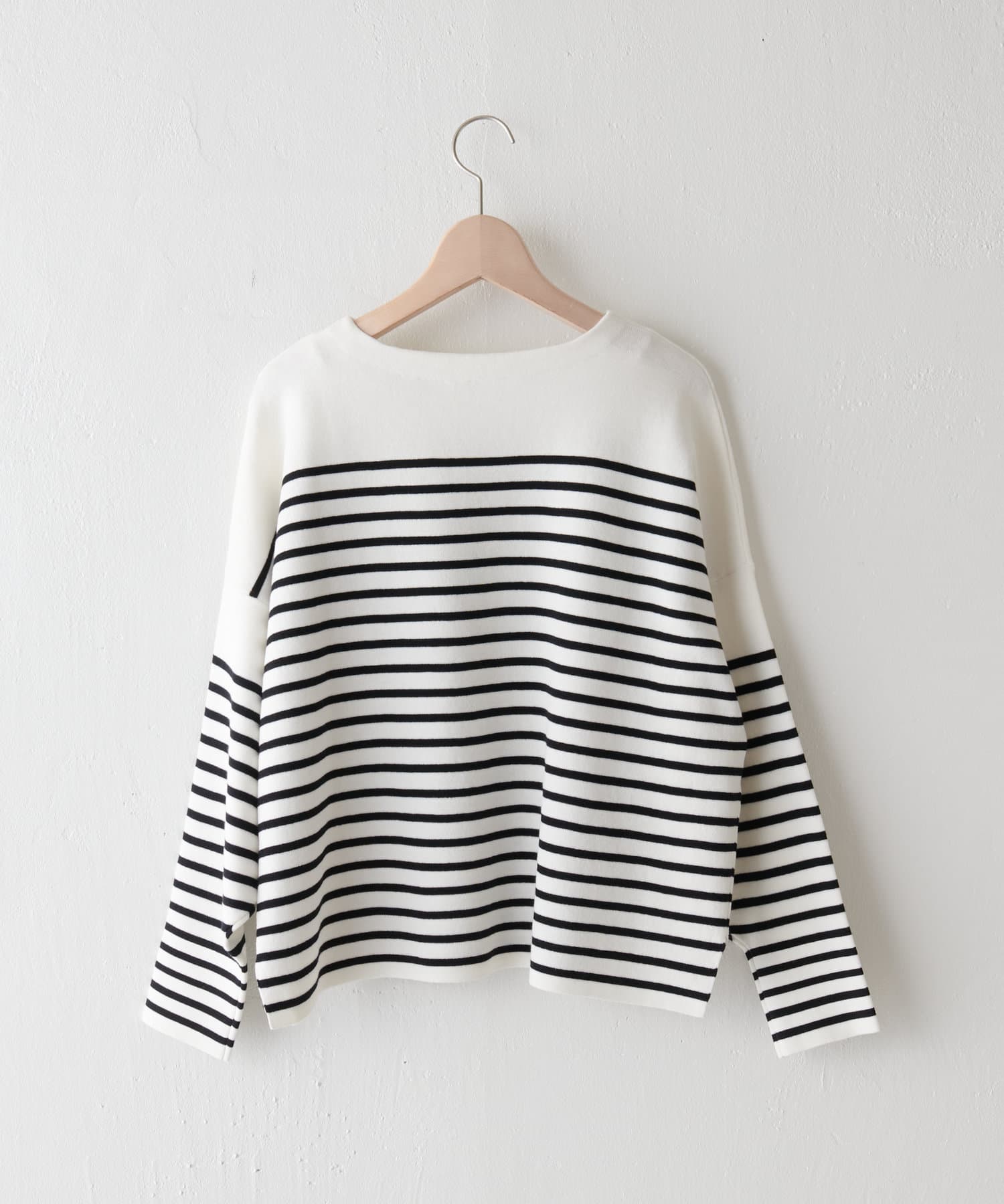 ・オトナな雰囲気で楽しめるようにニットで仕立て上げたボーダー柄トップス。