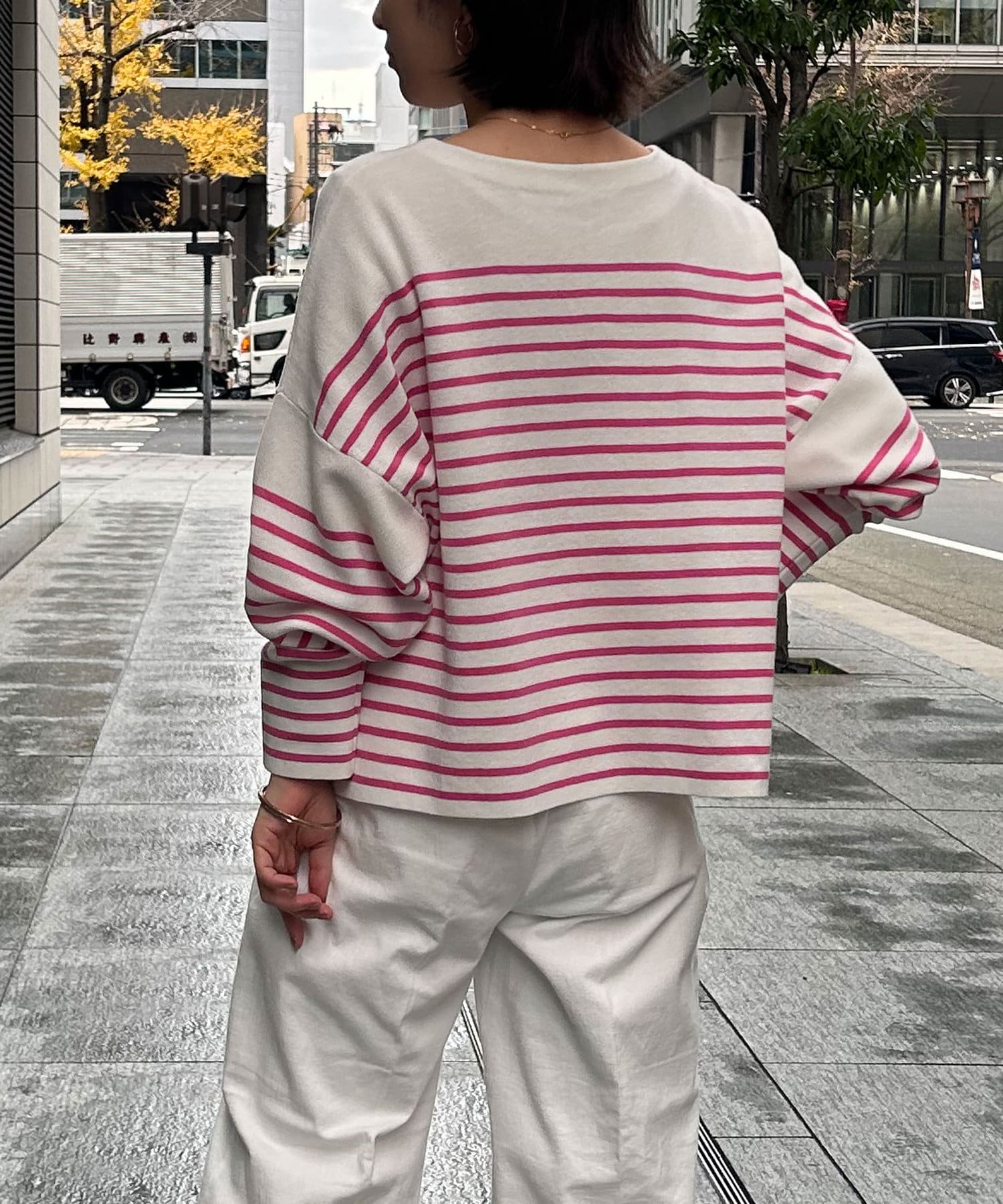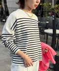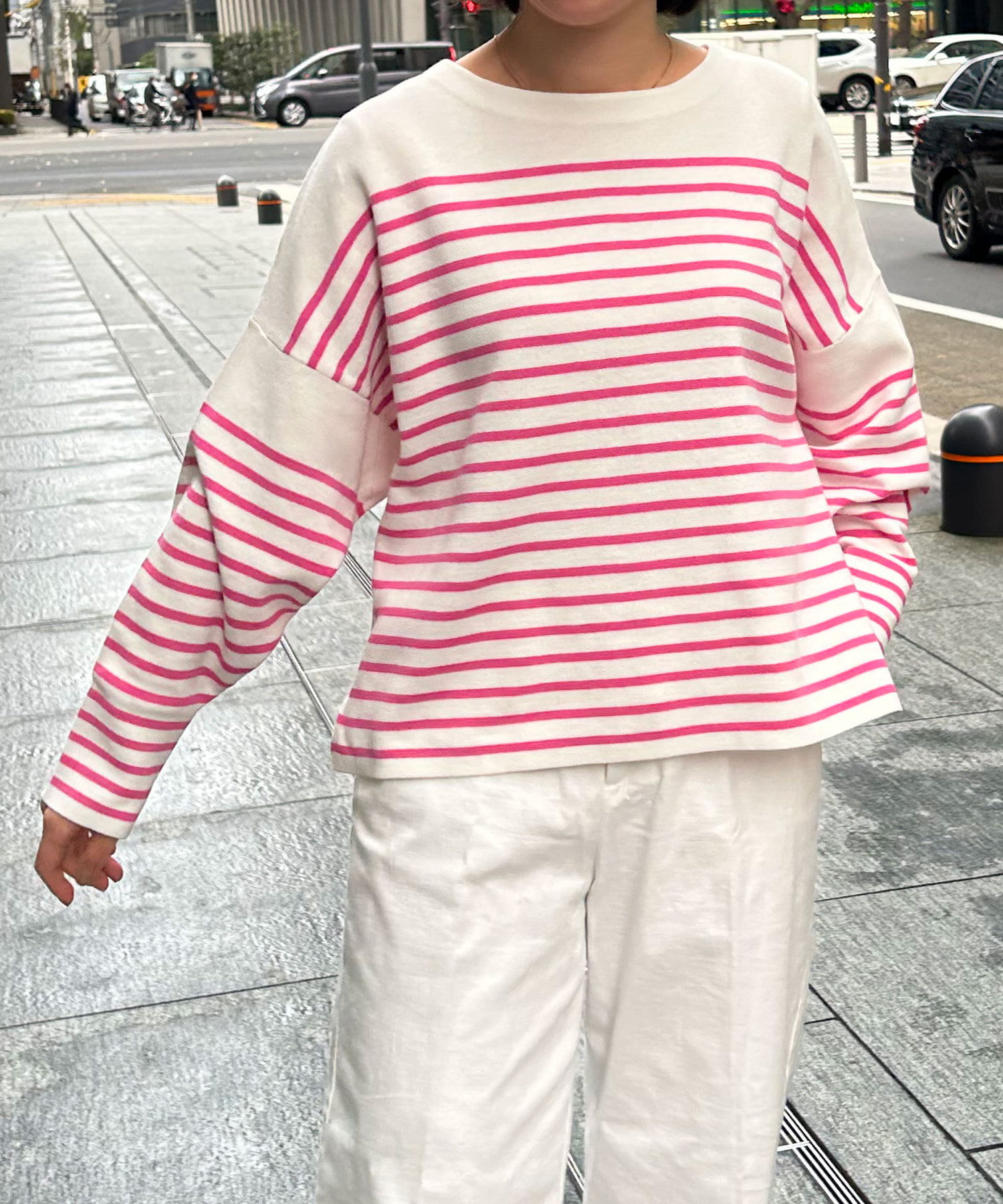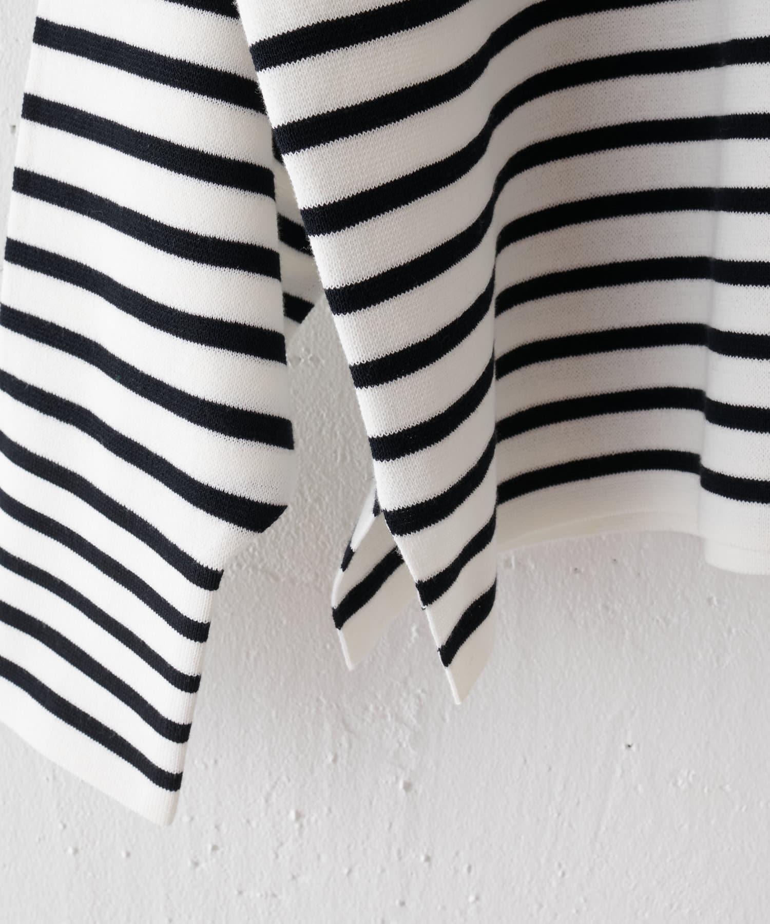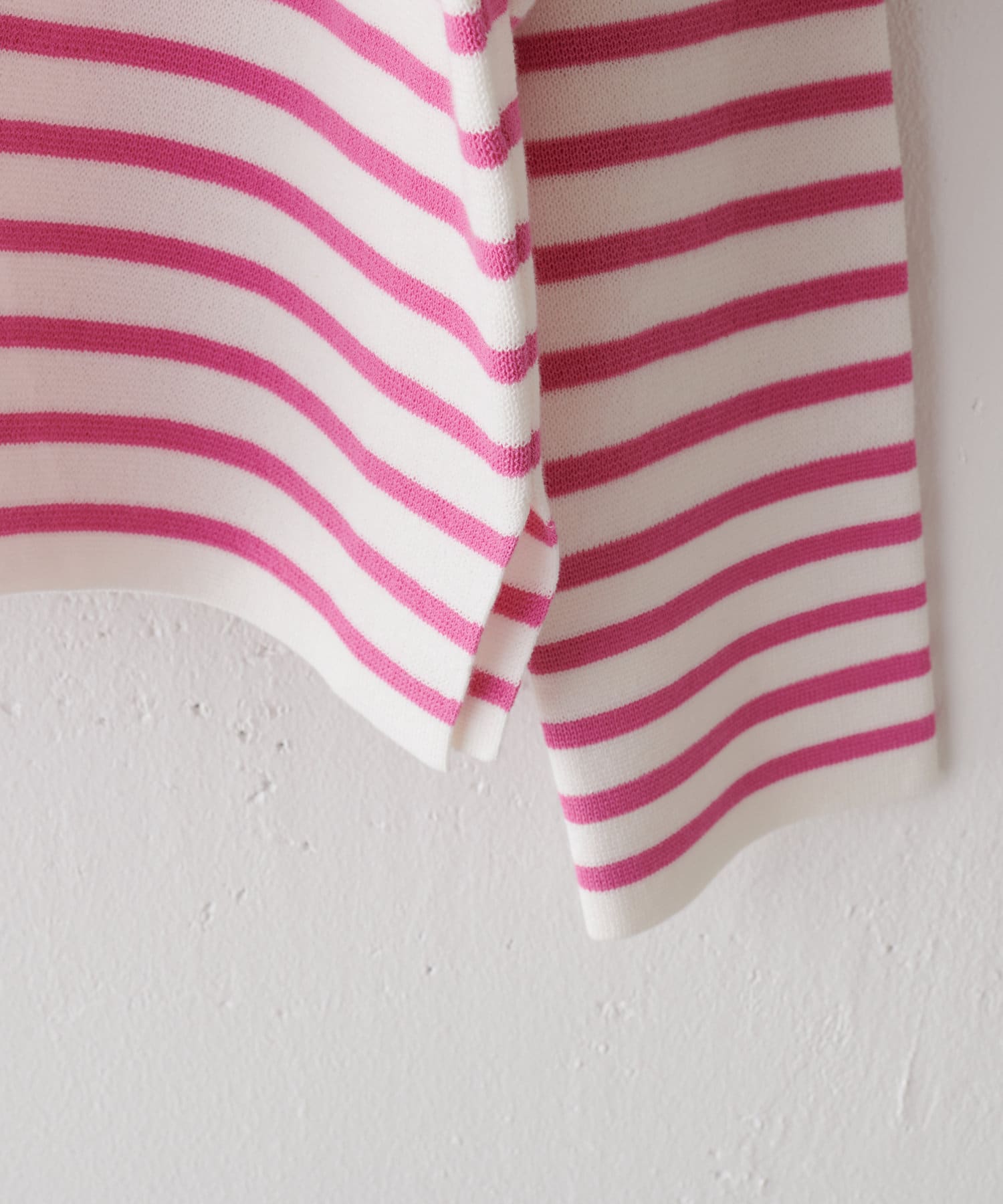 ・オトナな雰囲気で楽しめるようにニットで仕立て上げたボーダー柄トップス。