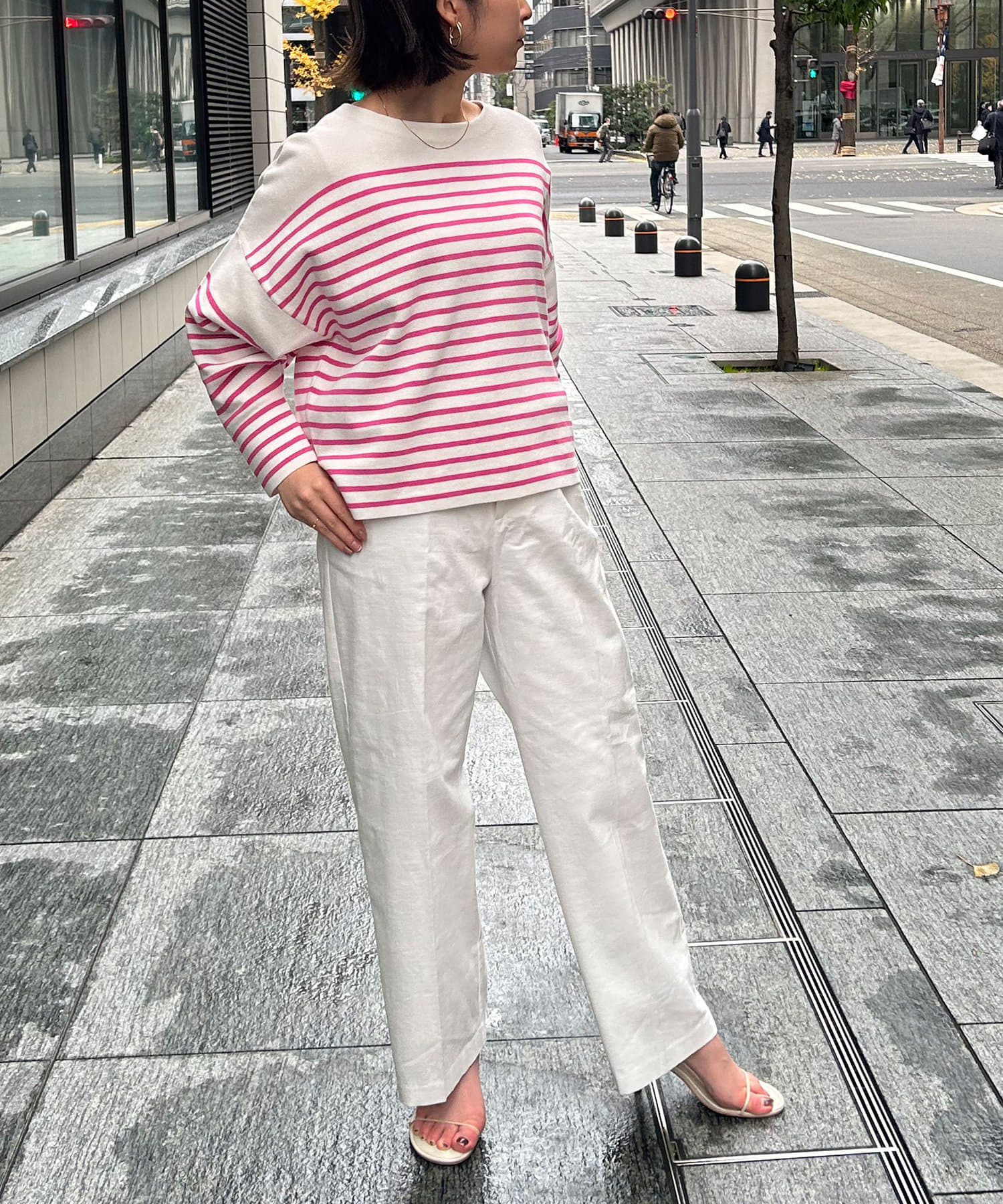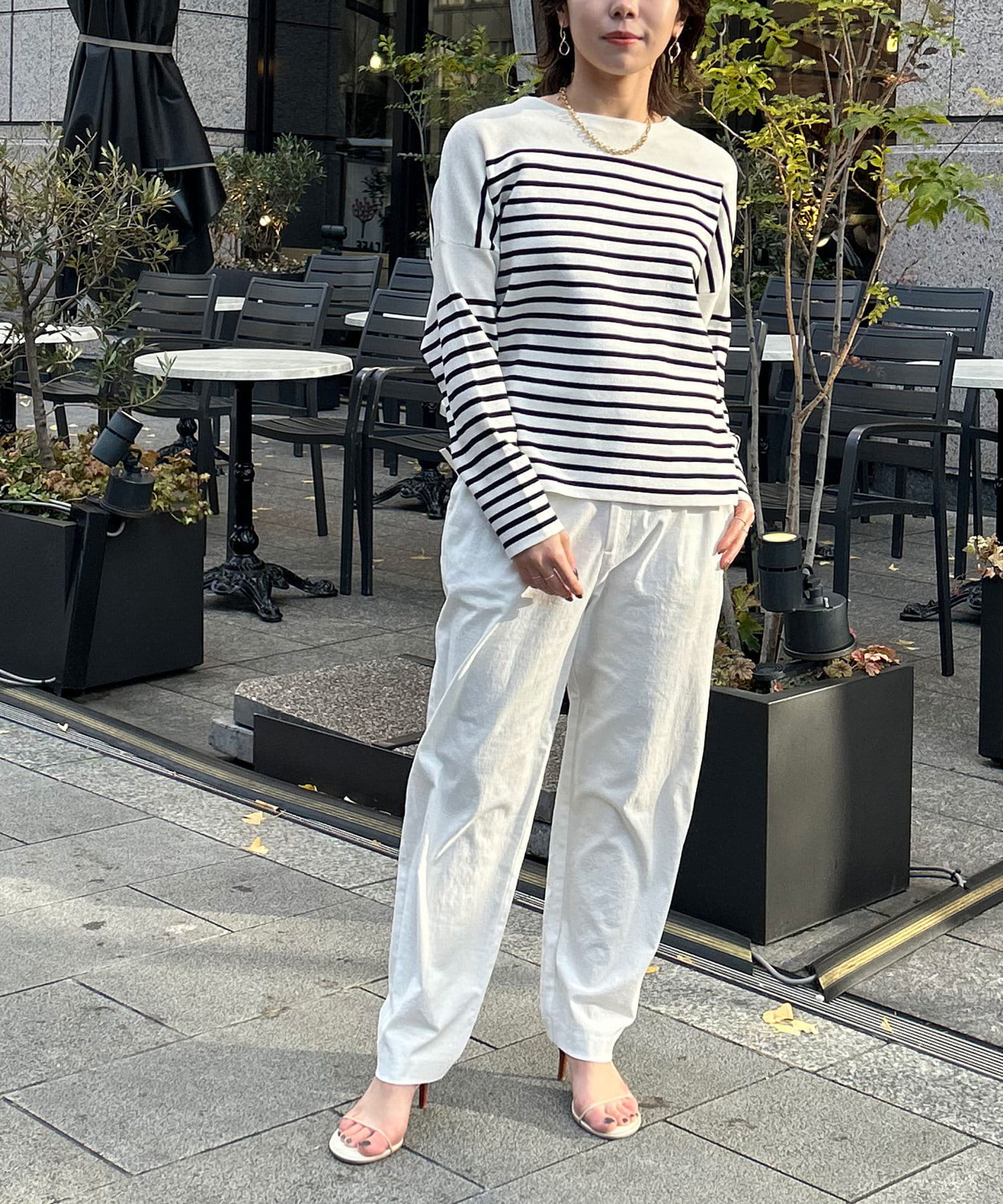 ・ボーダーはあえて白の余白を多くすることでカジュアル過ぎない印象に◎