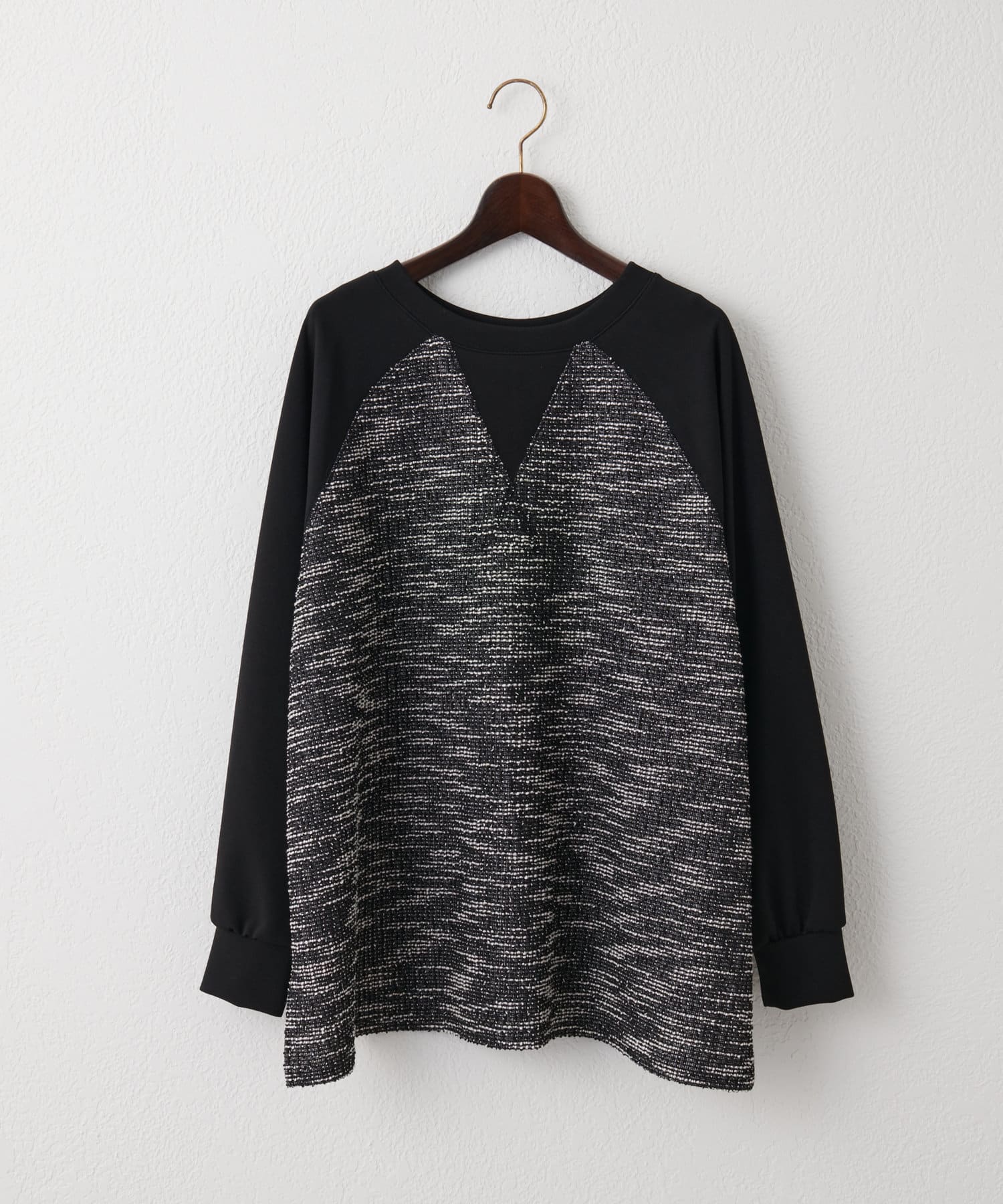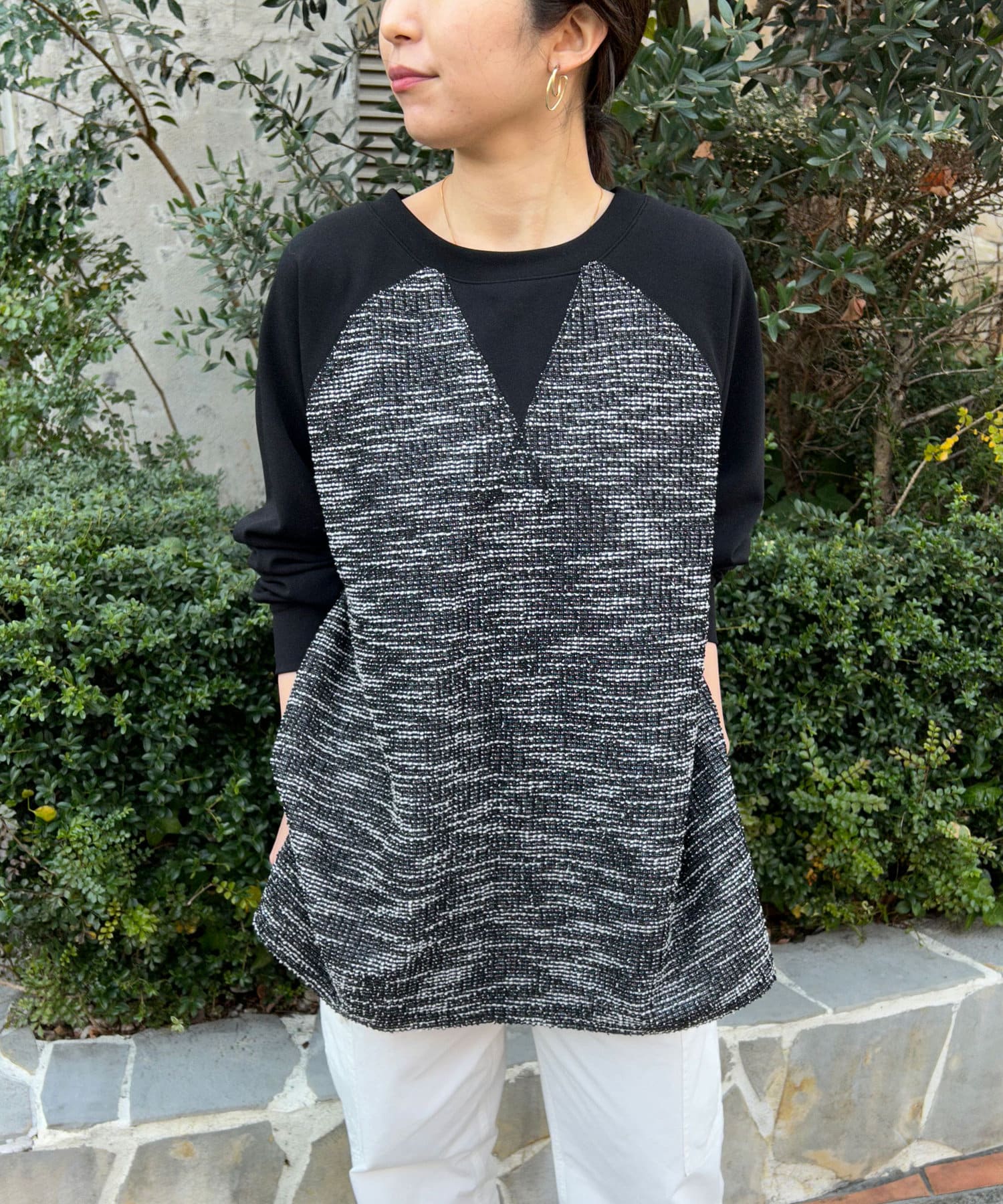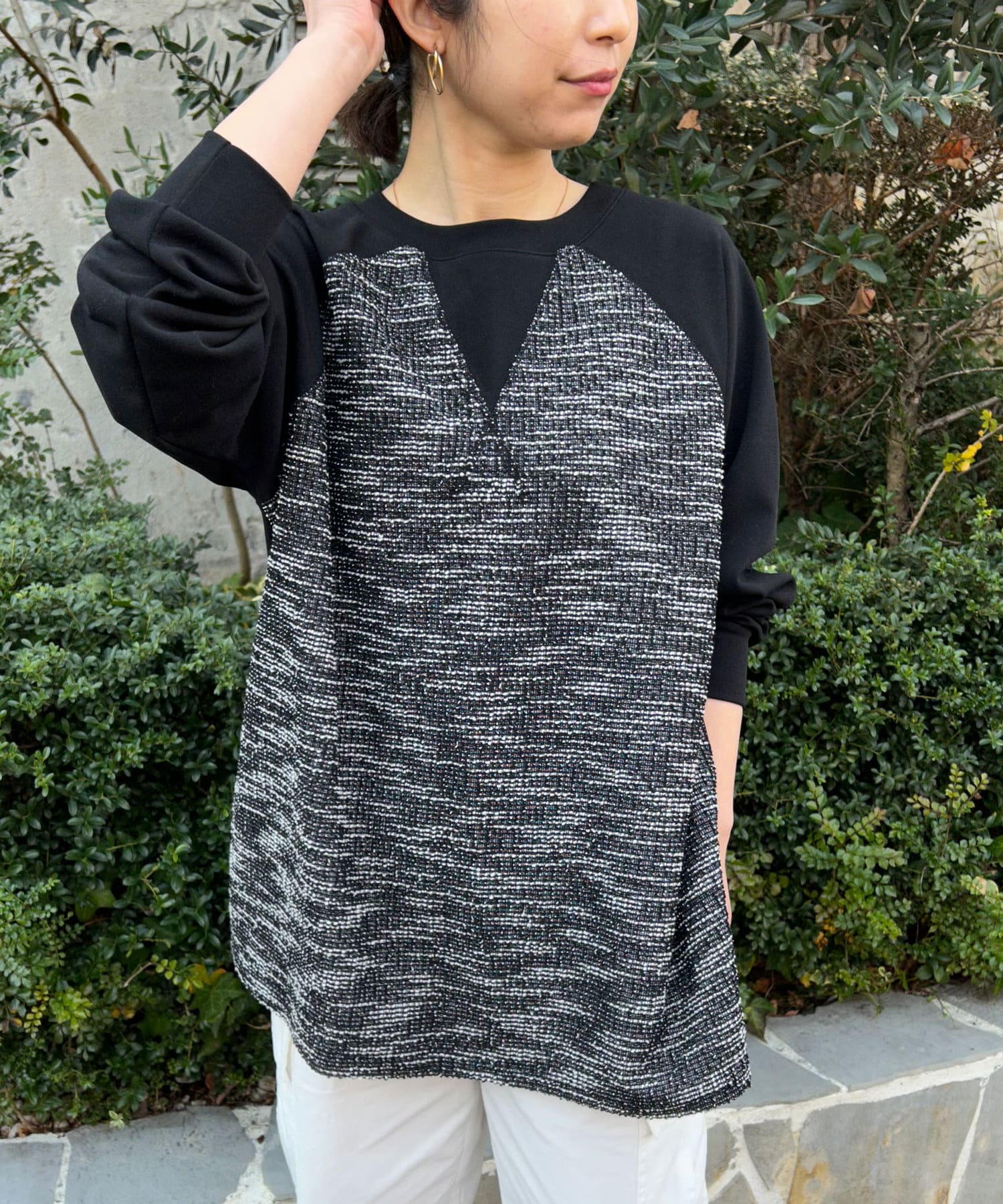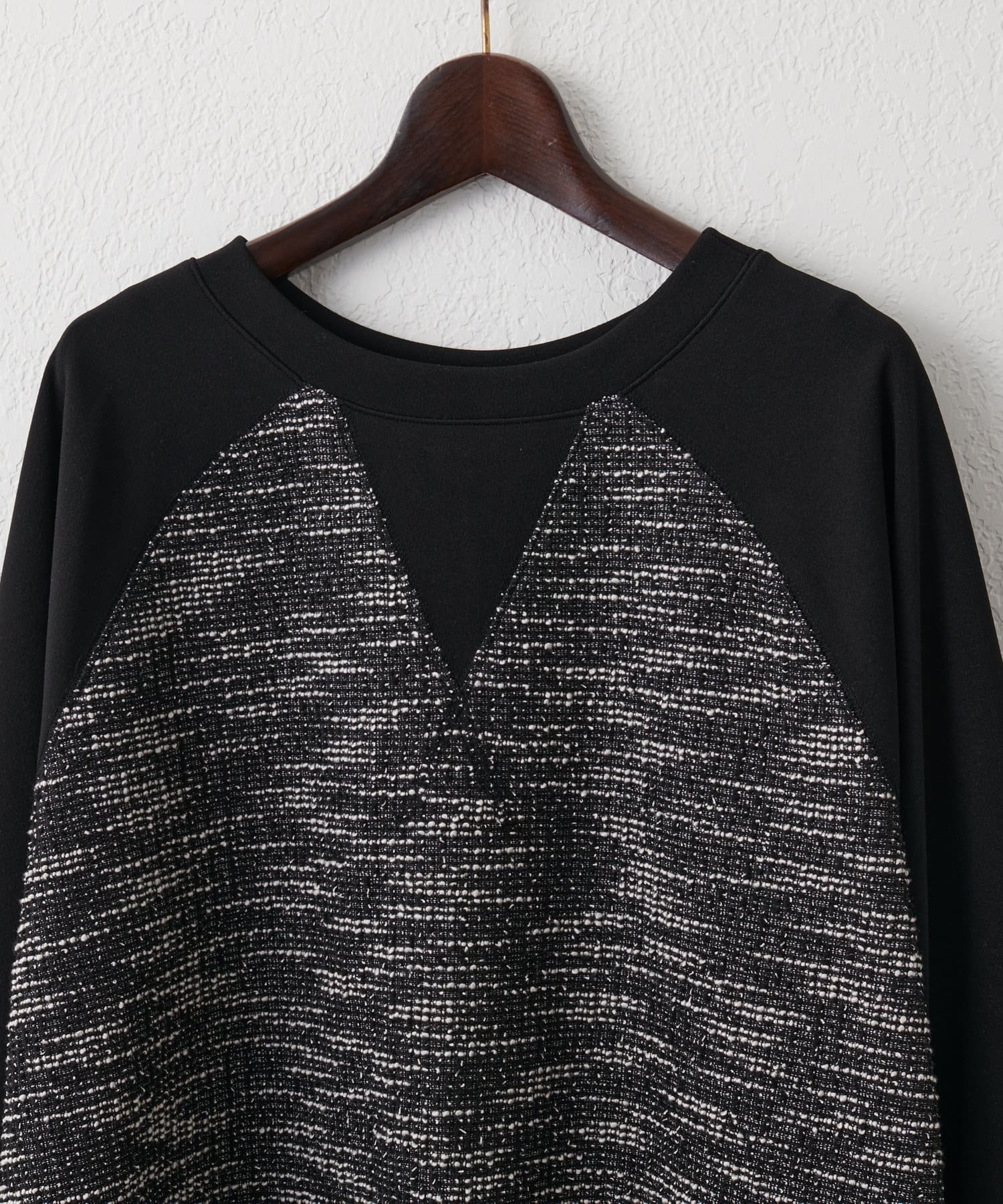 【異素材デザインが素敵】2WAYツイードプルオーバー