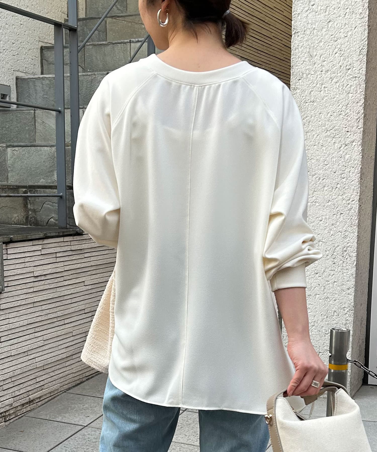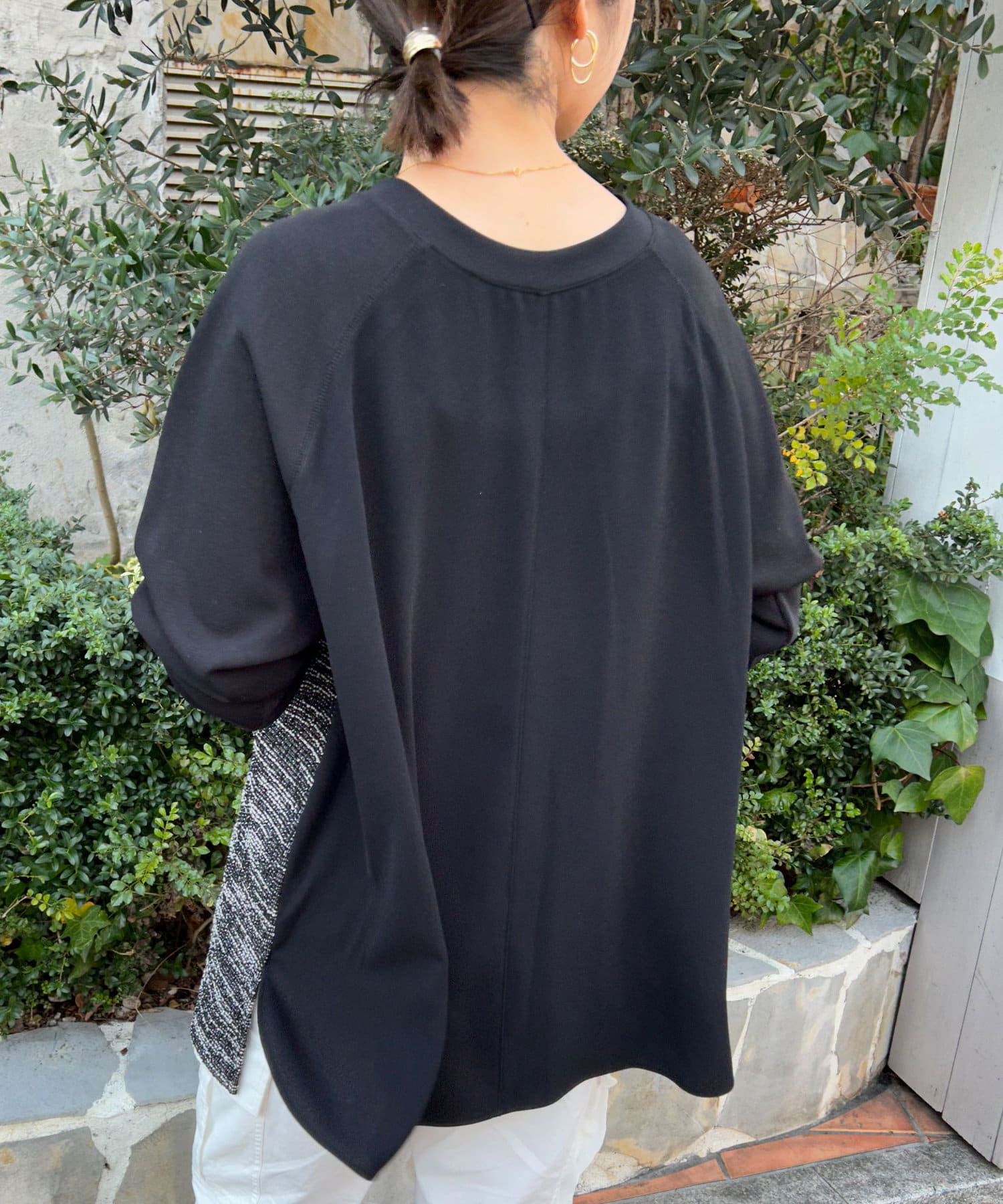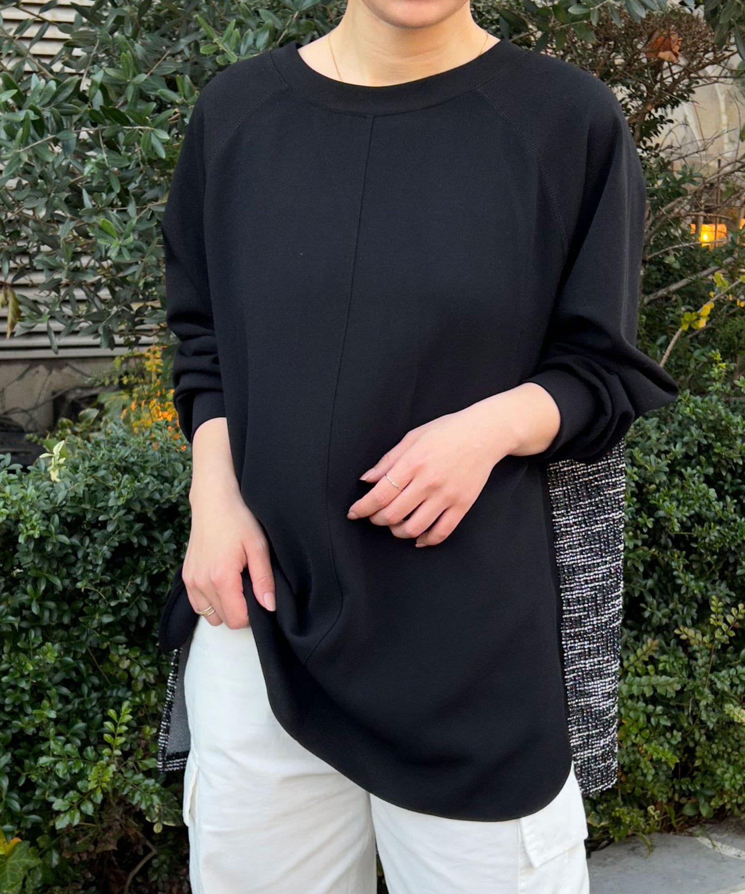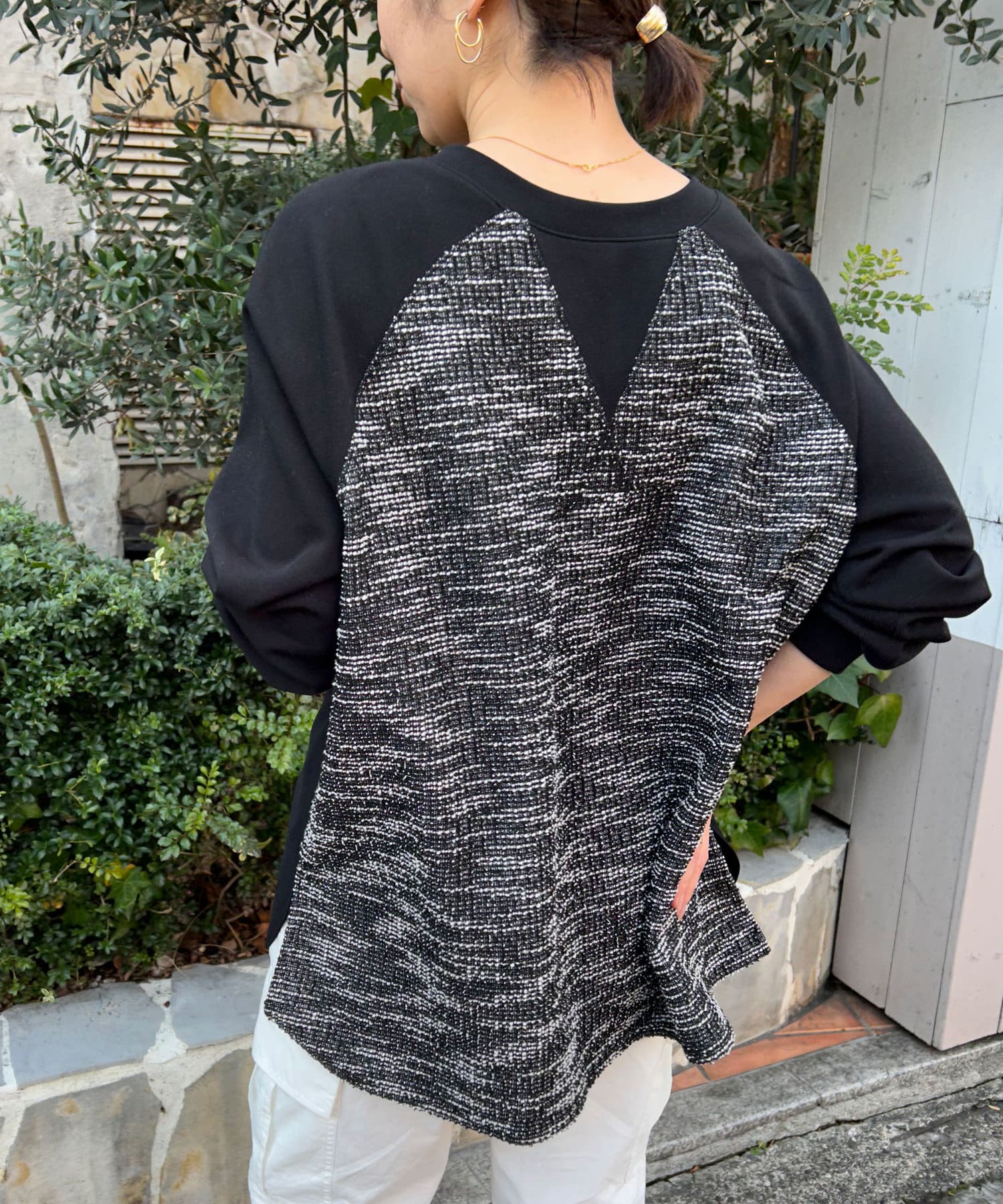 【異素材デザインが素敵】2WAYツイードプルオーバー
