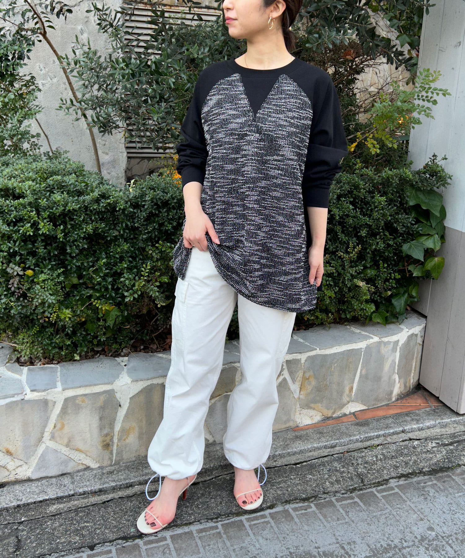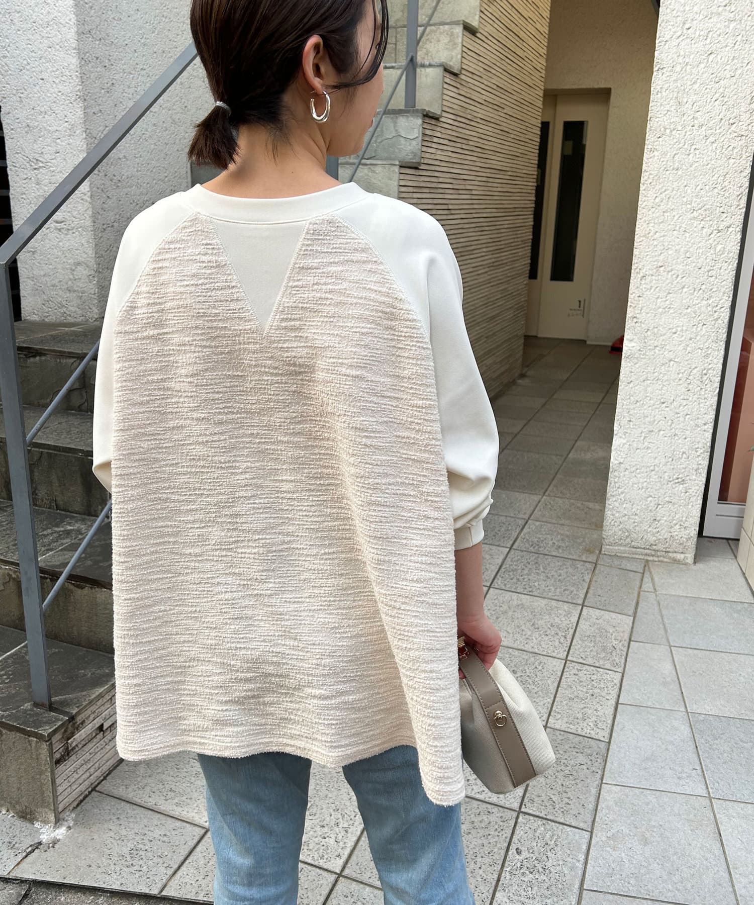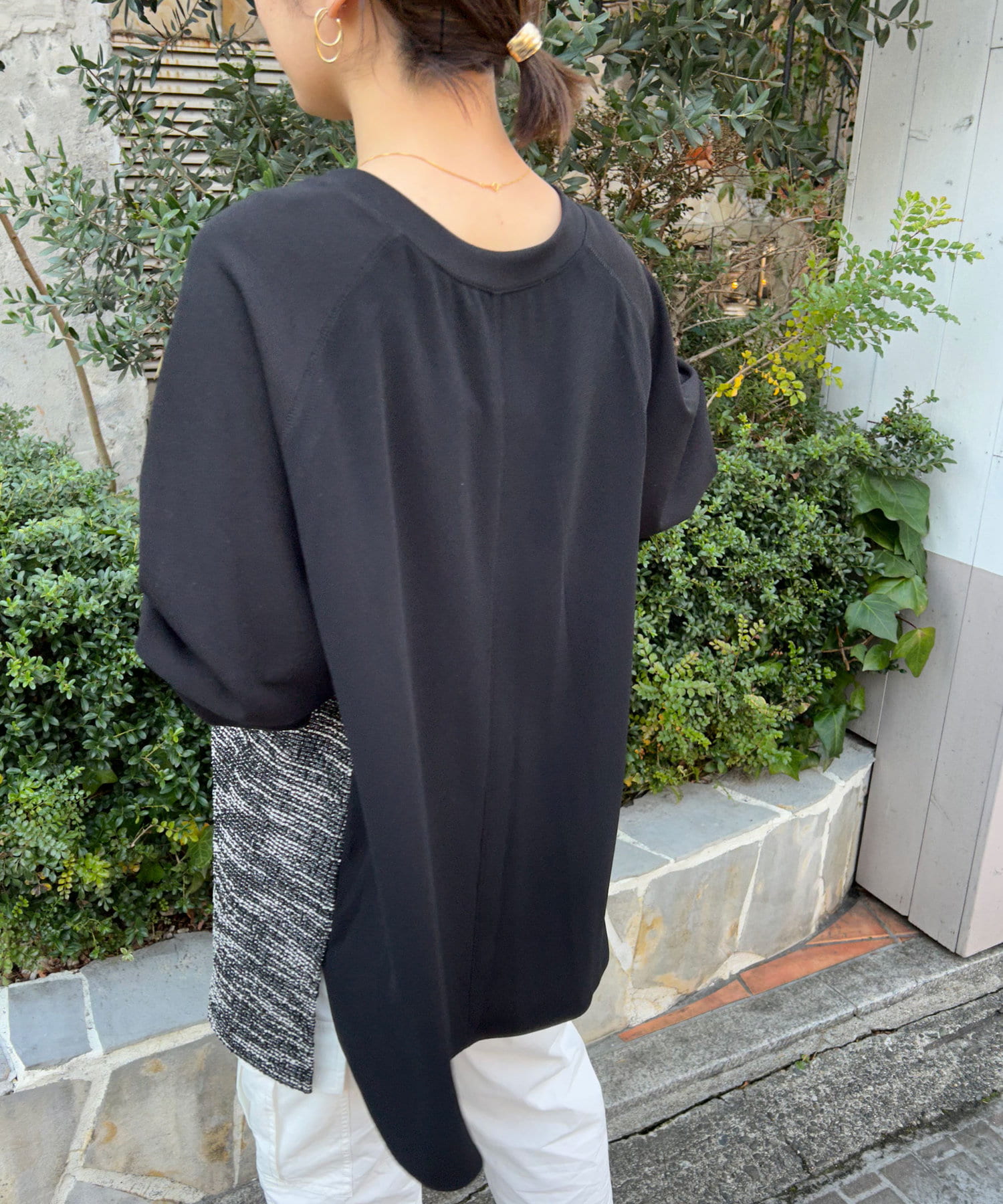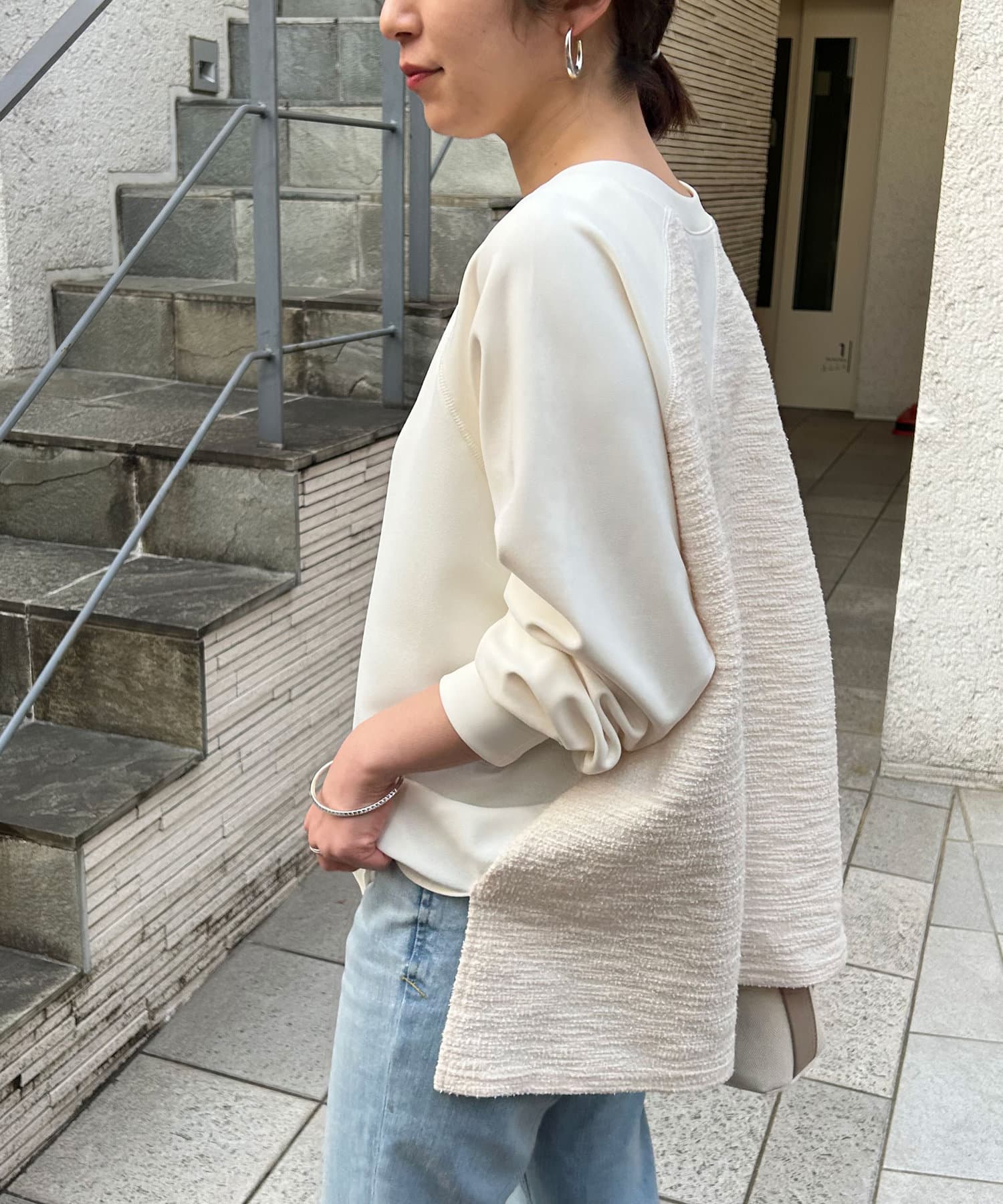 【異素材デザインが素敵】2WAYツイードプルオーバー