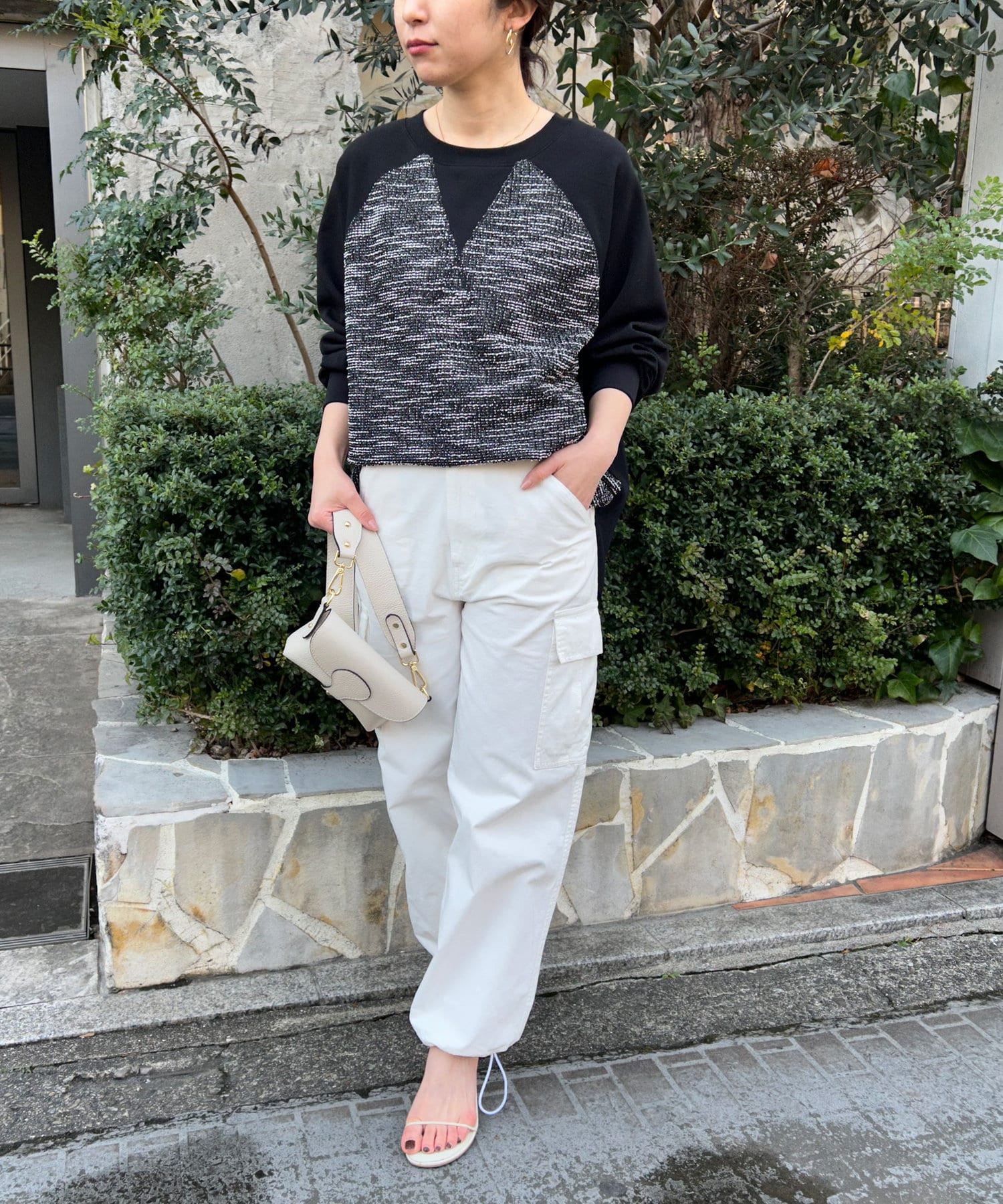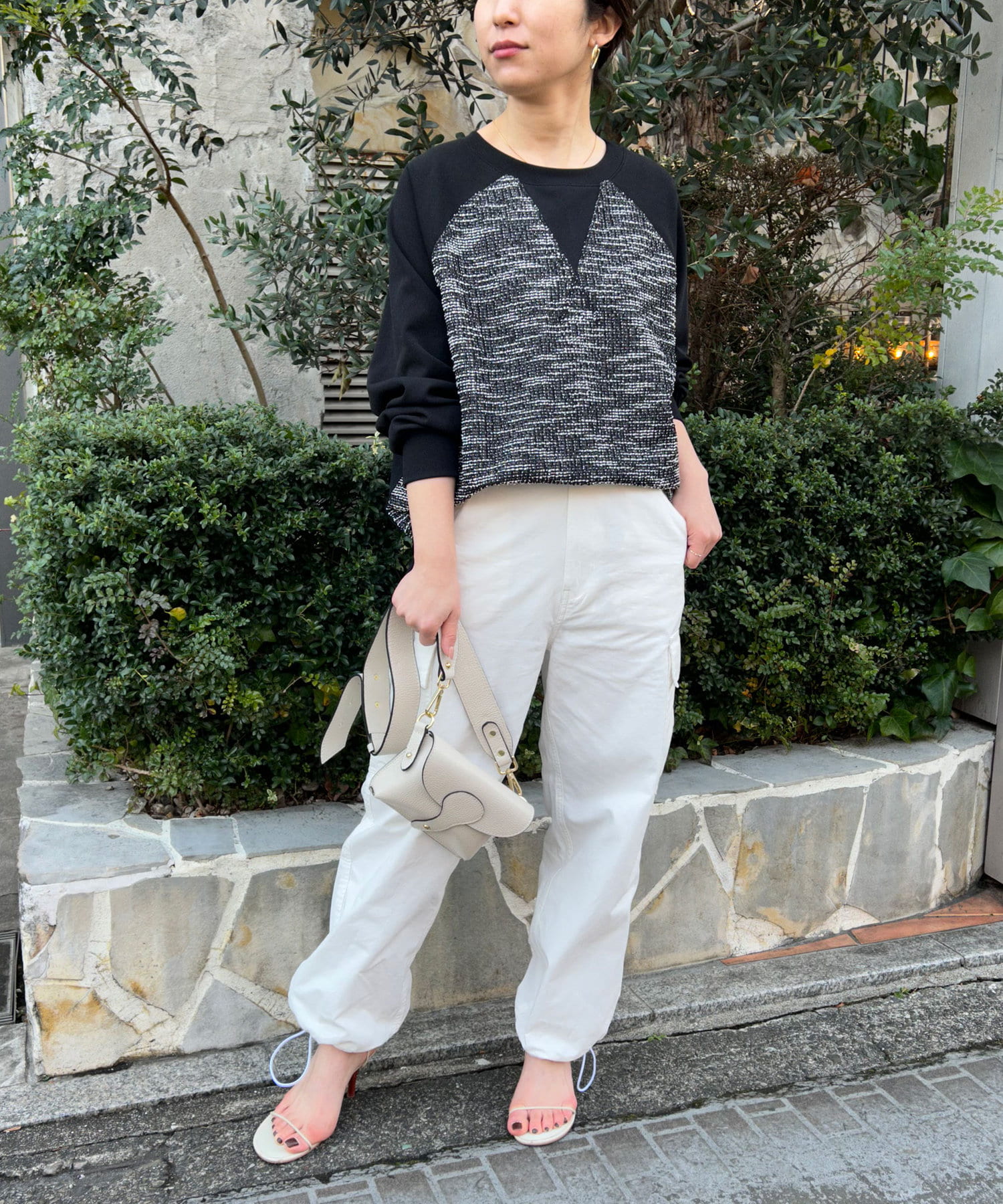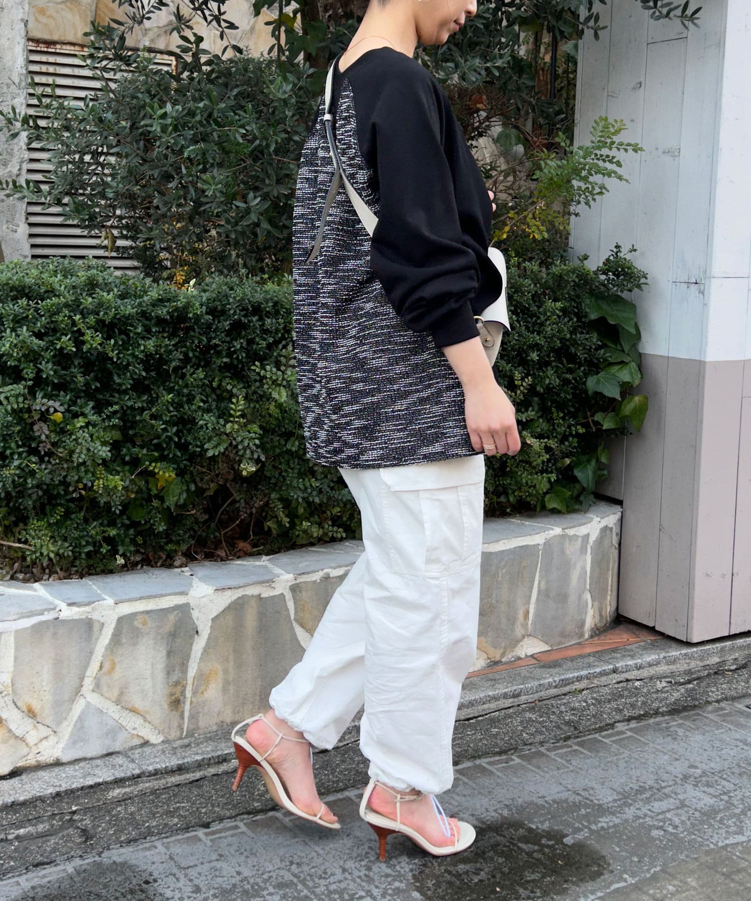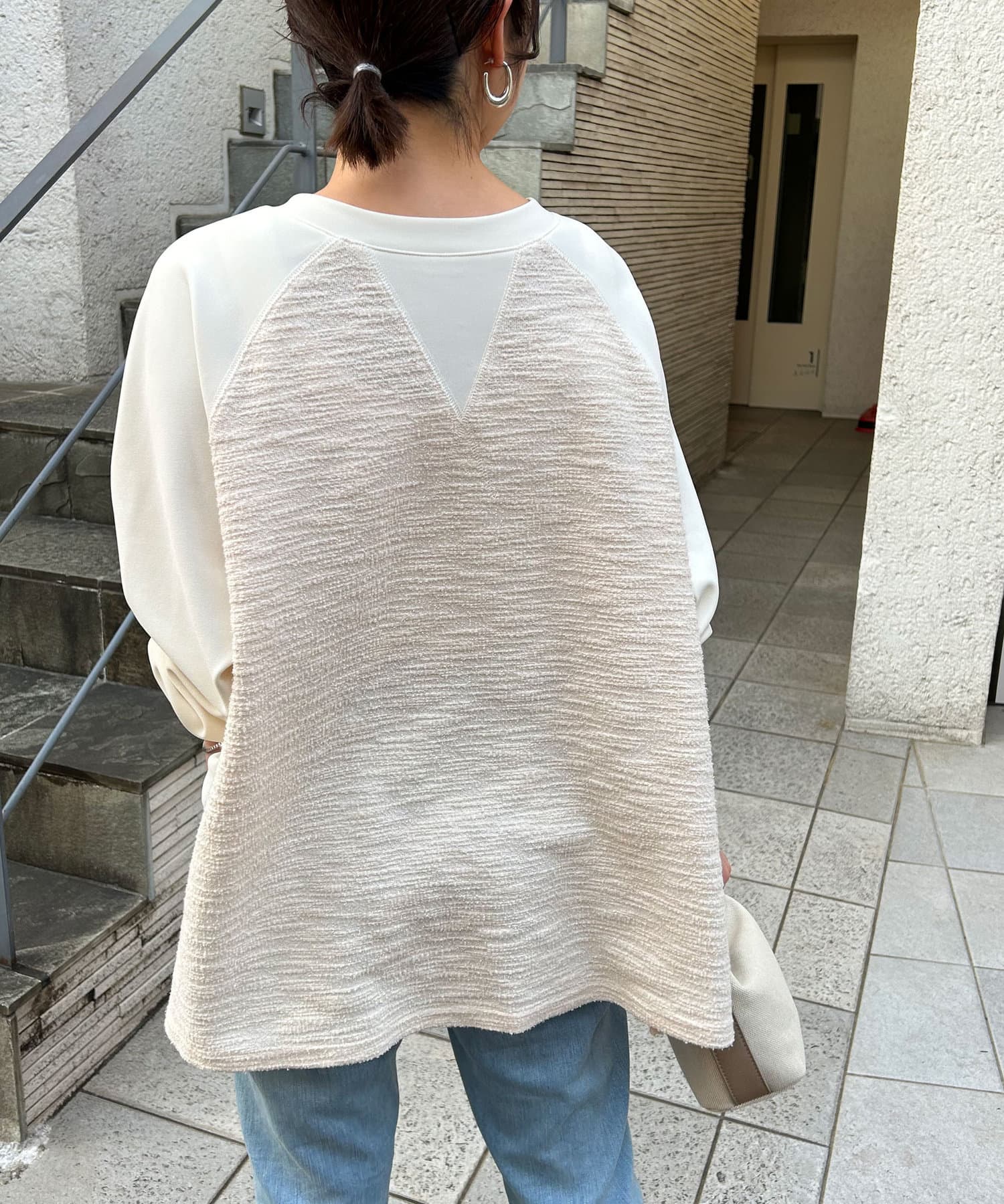【異素材デザインが素敵】2WAYツイードプルオーバー