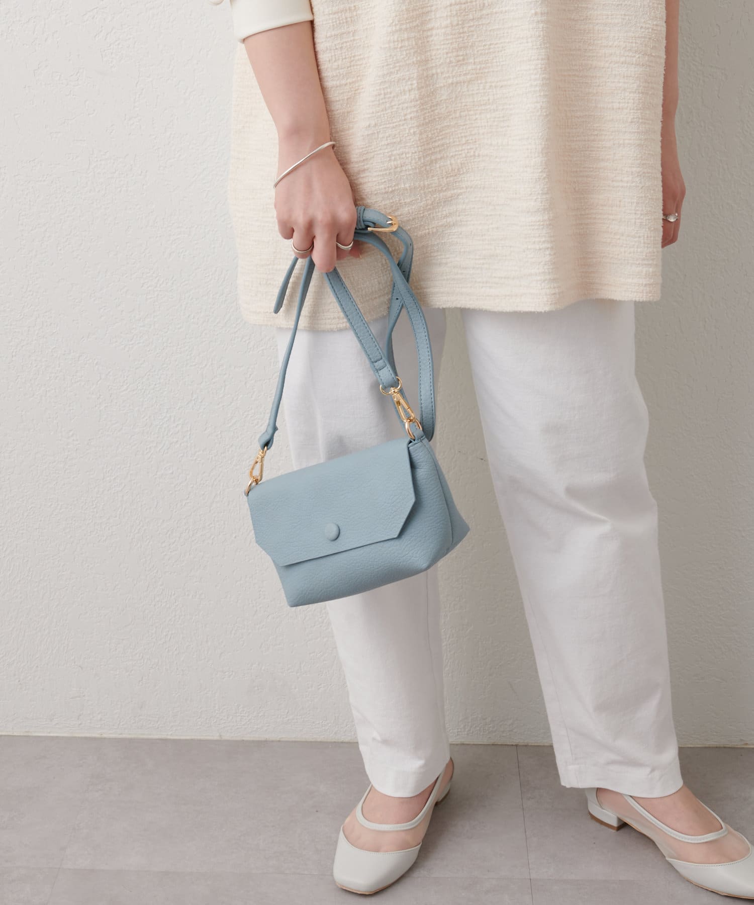 ・ポシェットは、ショルダーを付けてワンピーススタイルのワンポイントに〇