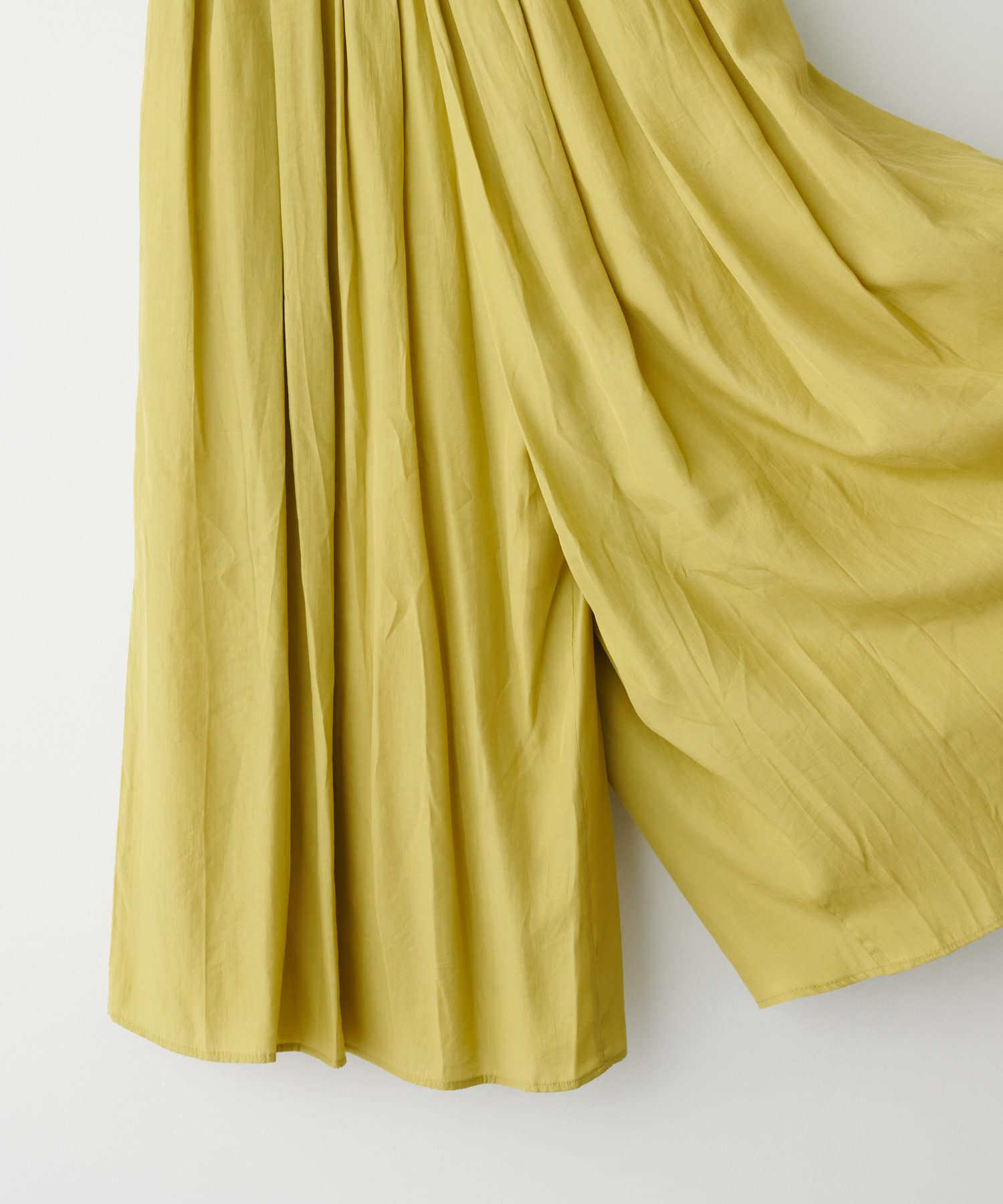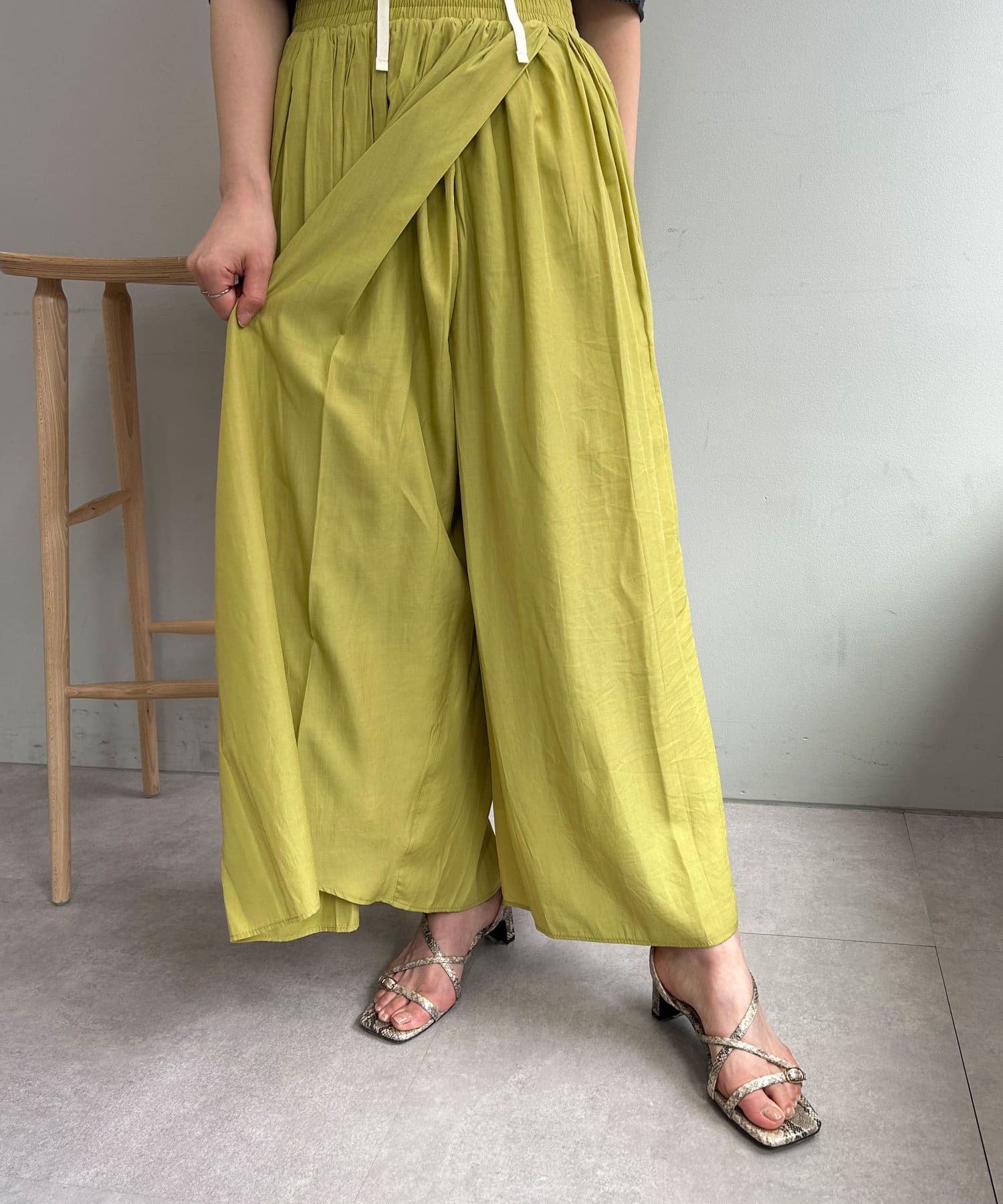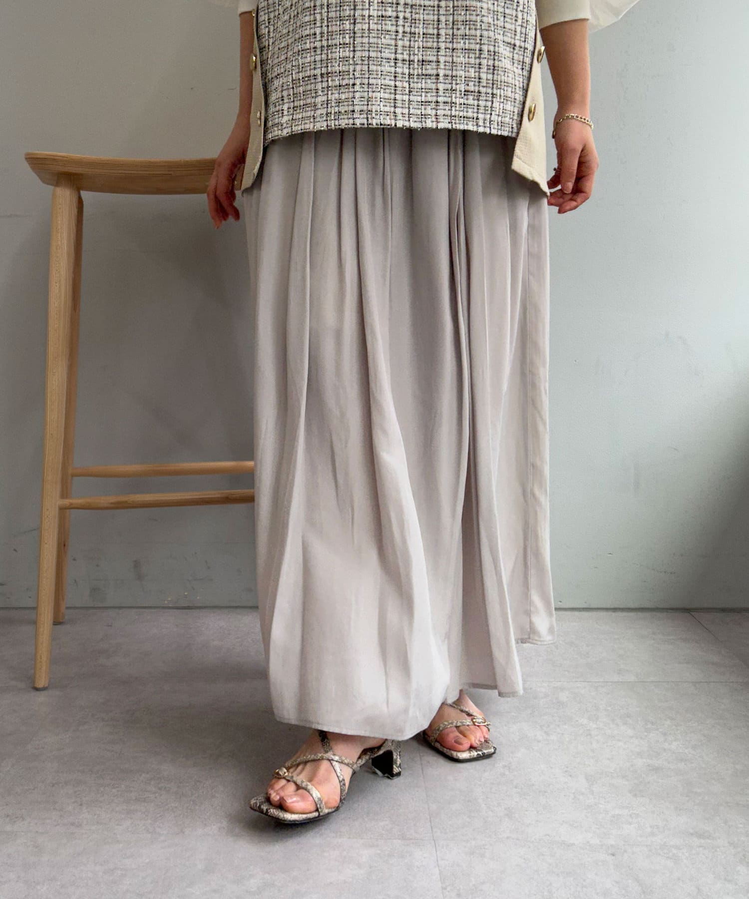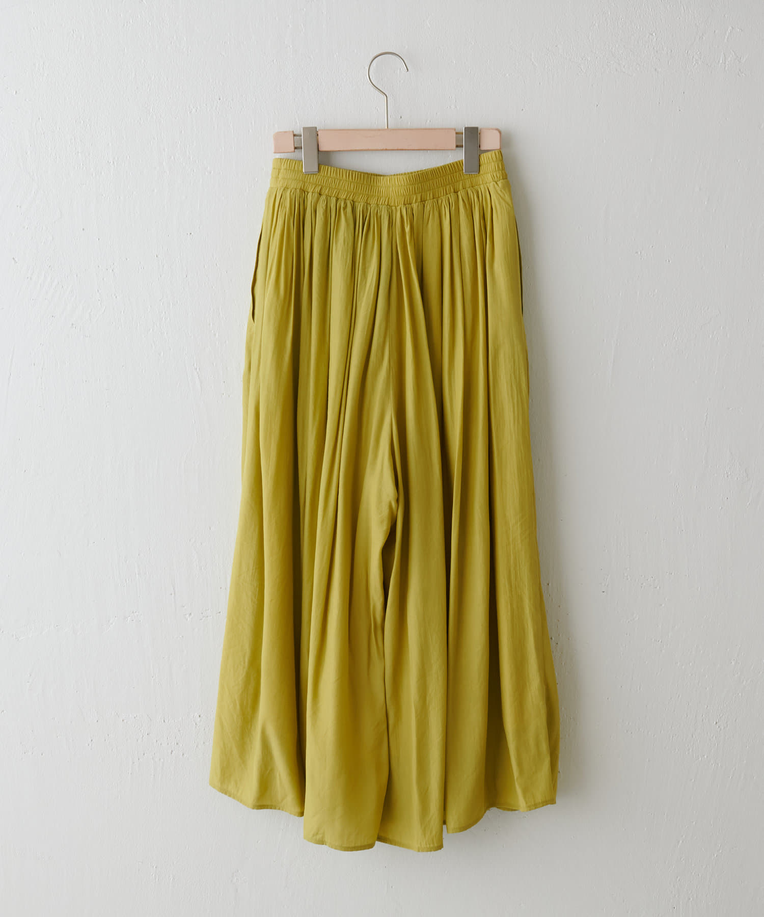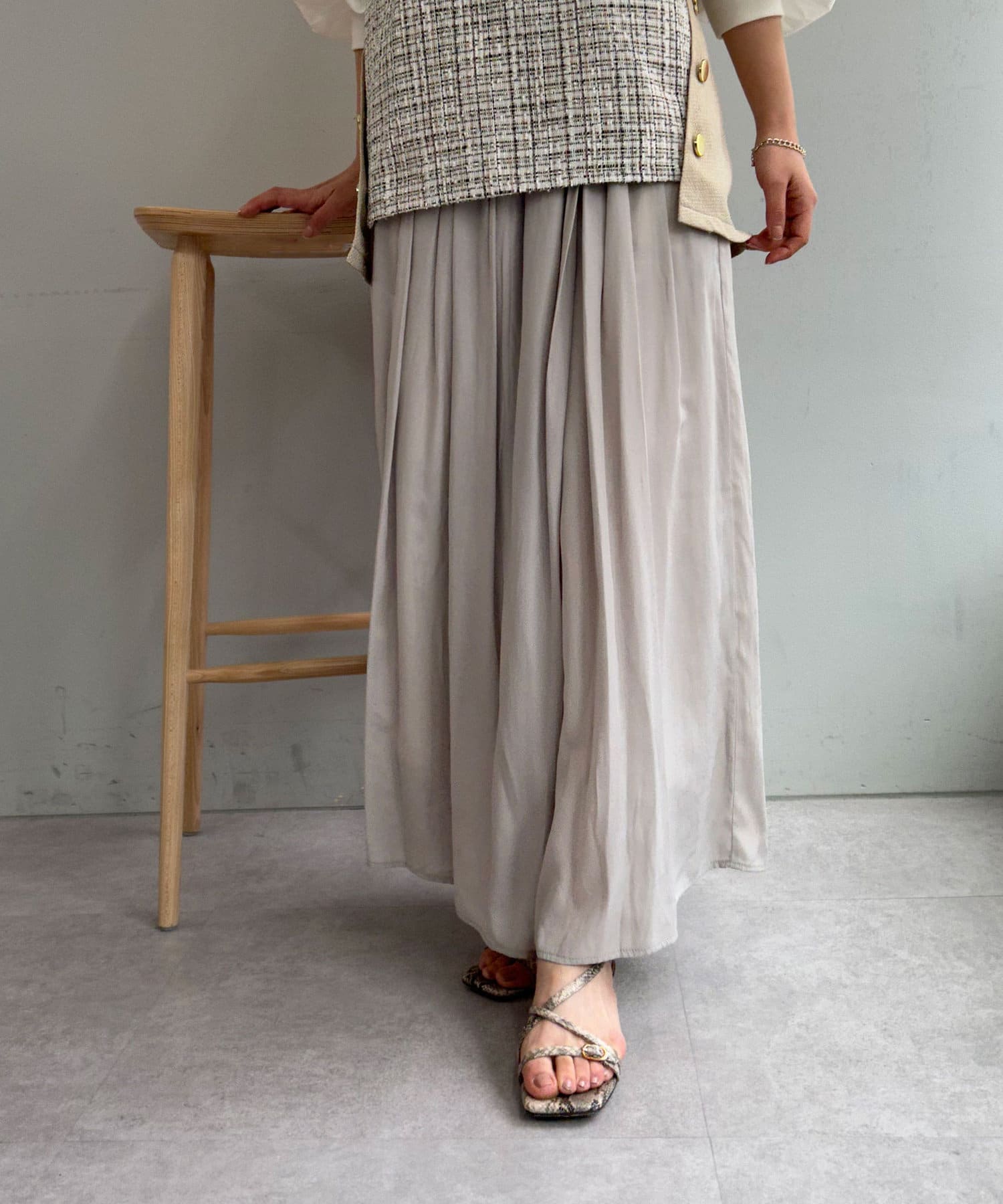 ・シルエットはスカートらしく、艶感がありエレガンスさがありながらも、パンツなので動きやすいスカーチョ。