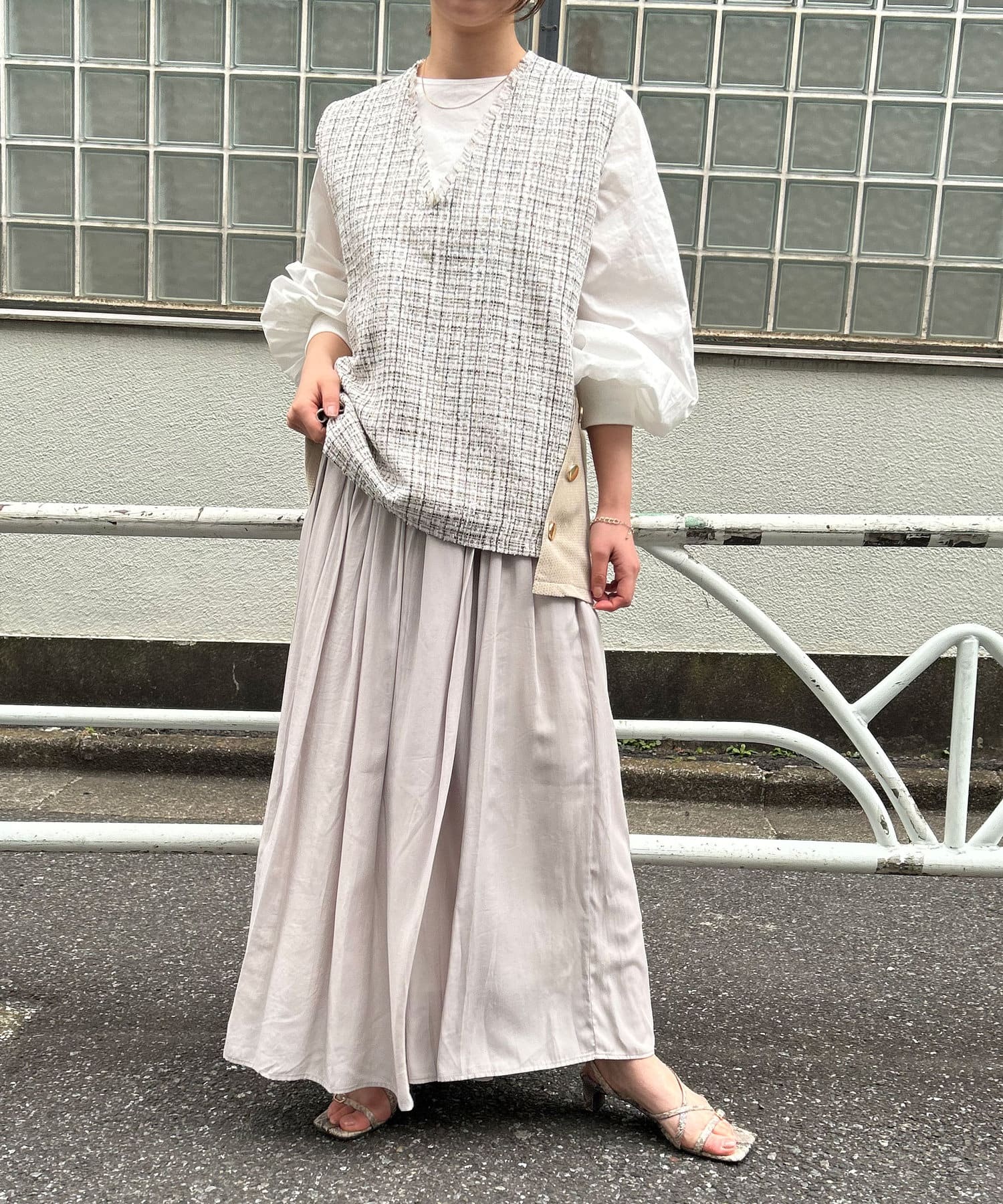 ・程よく落ち感のある素材で、広がり過ぎず美シルエットが叶います。