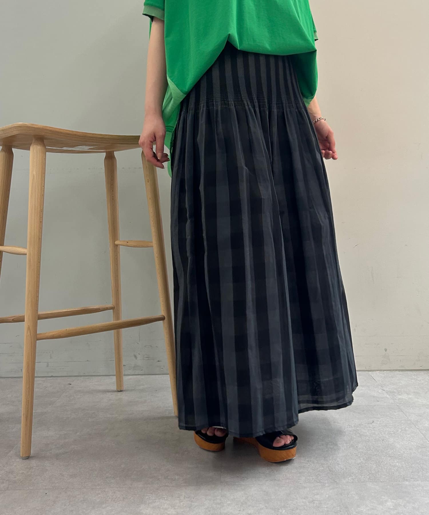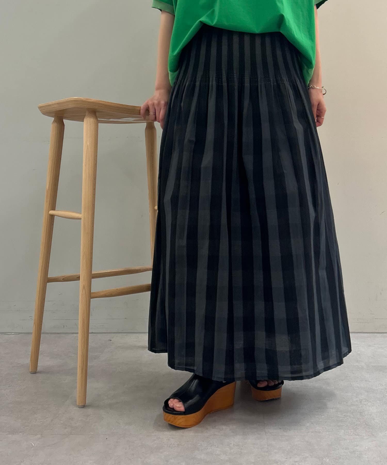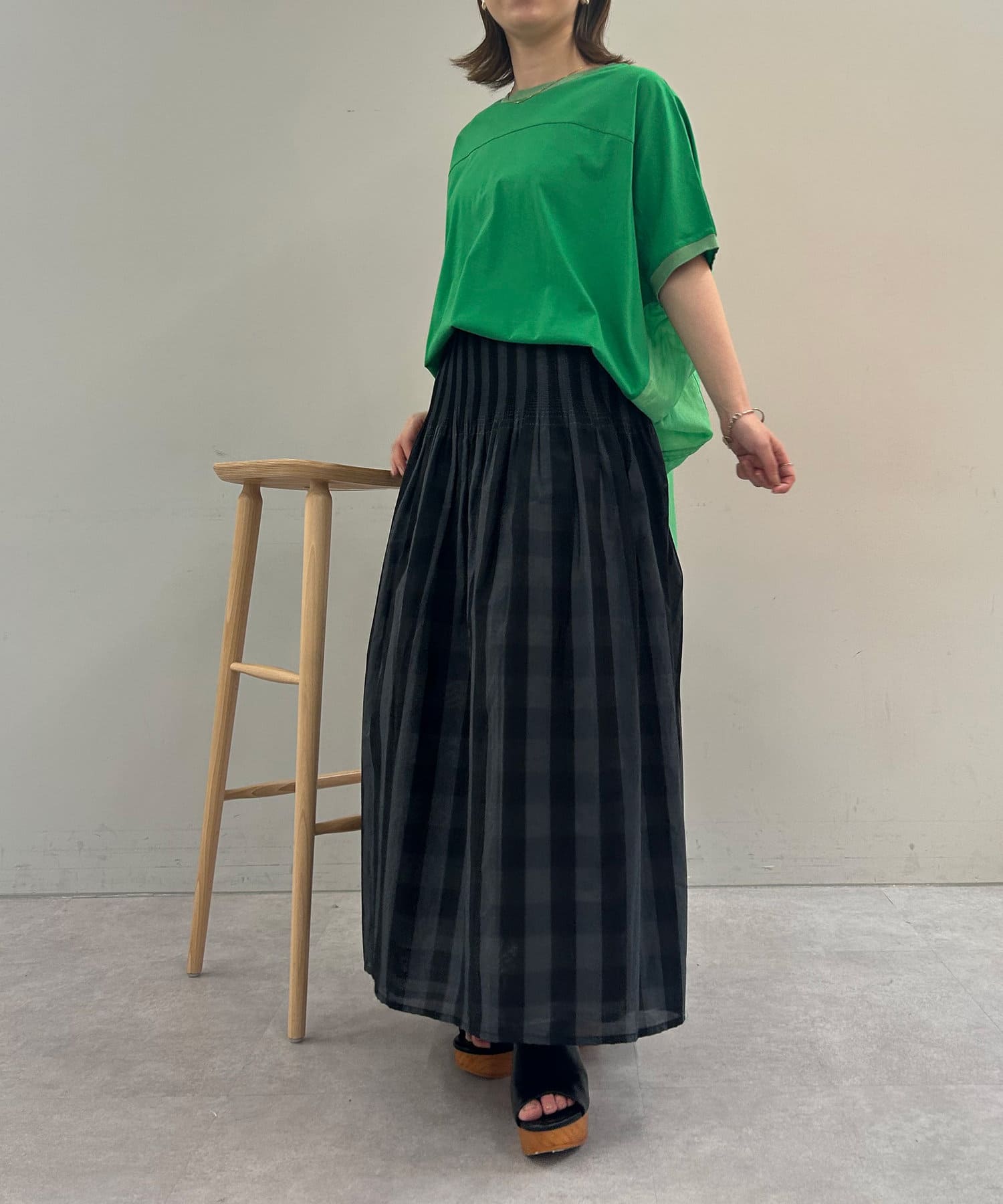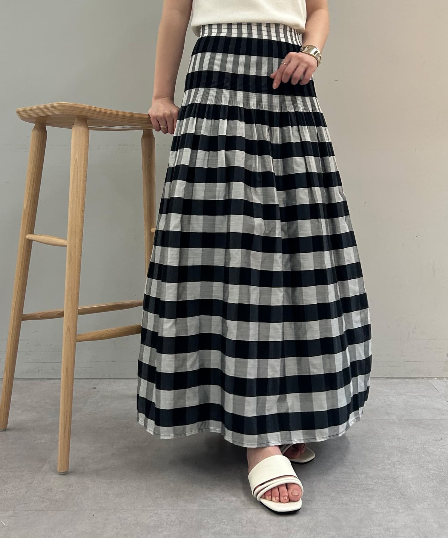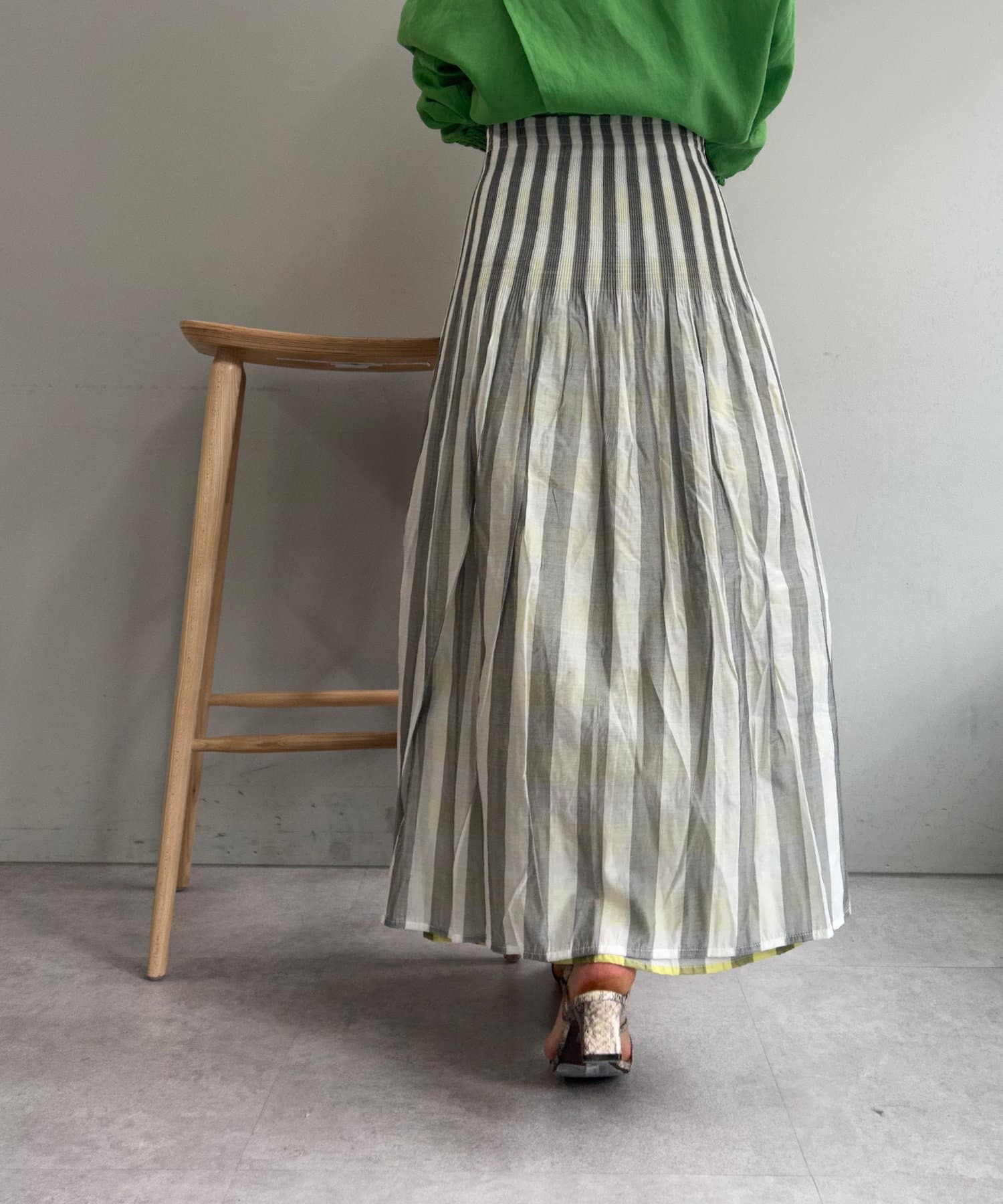 ・ウエストをシャーリング風のデザインにし、ラフな着心地を叶えてくれるリバーシブルのスカート。