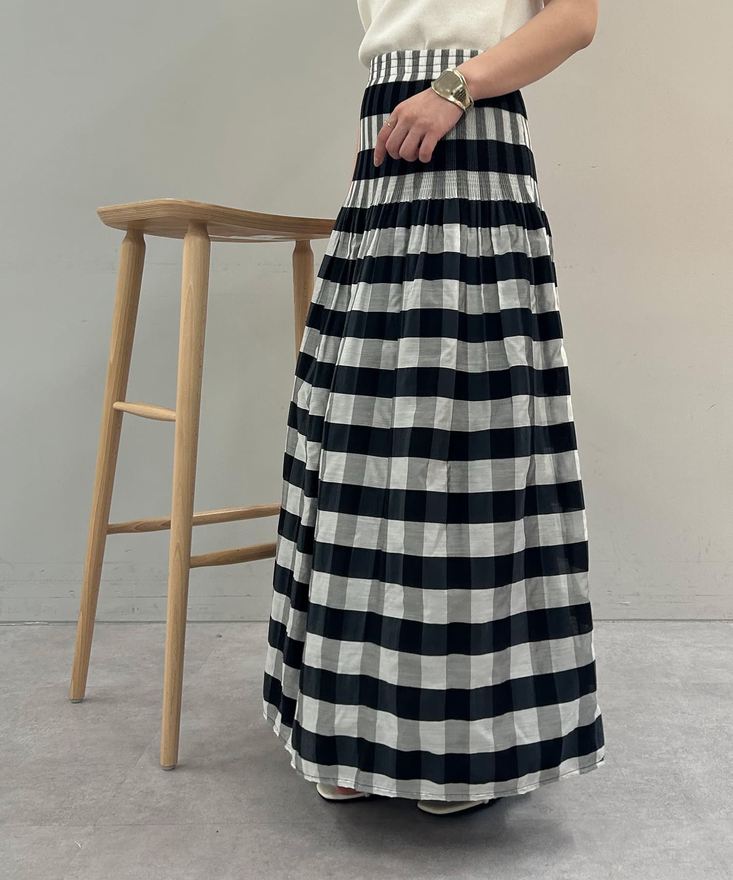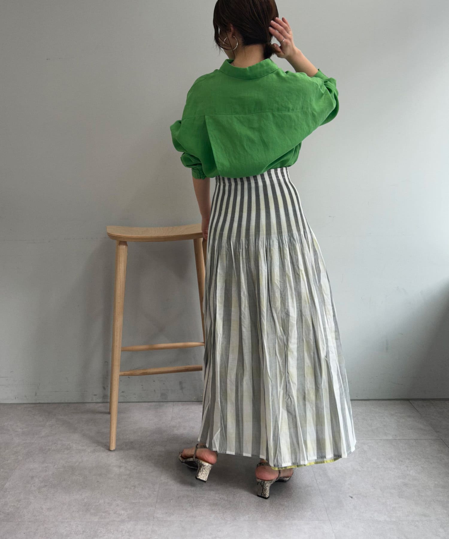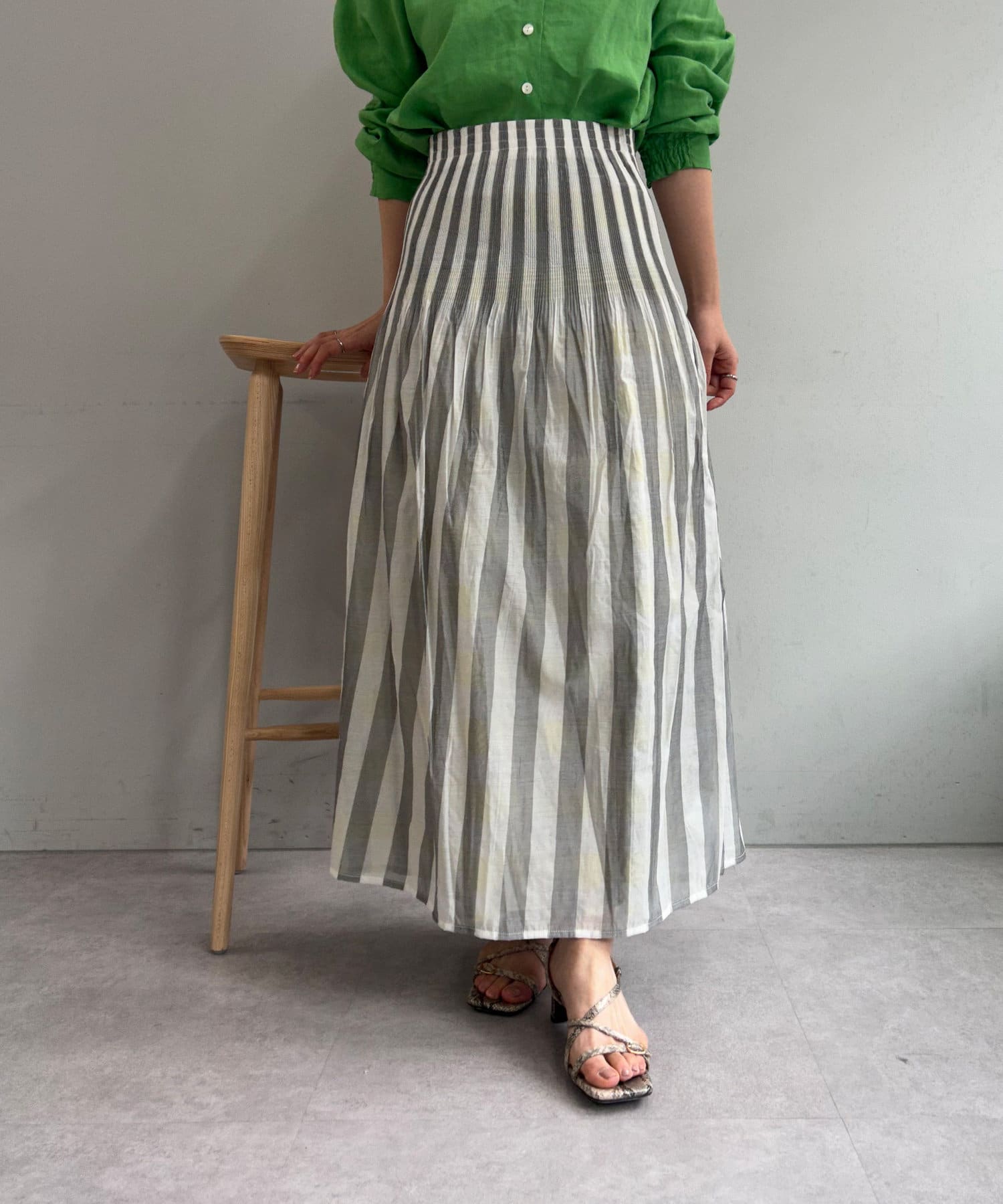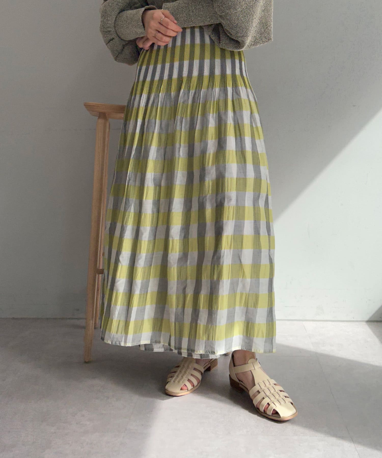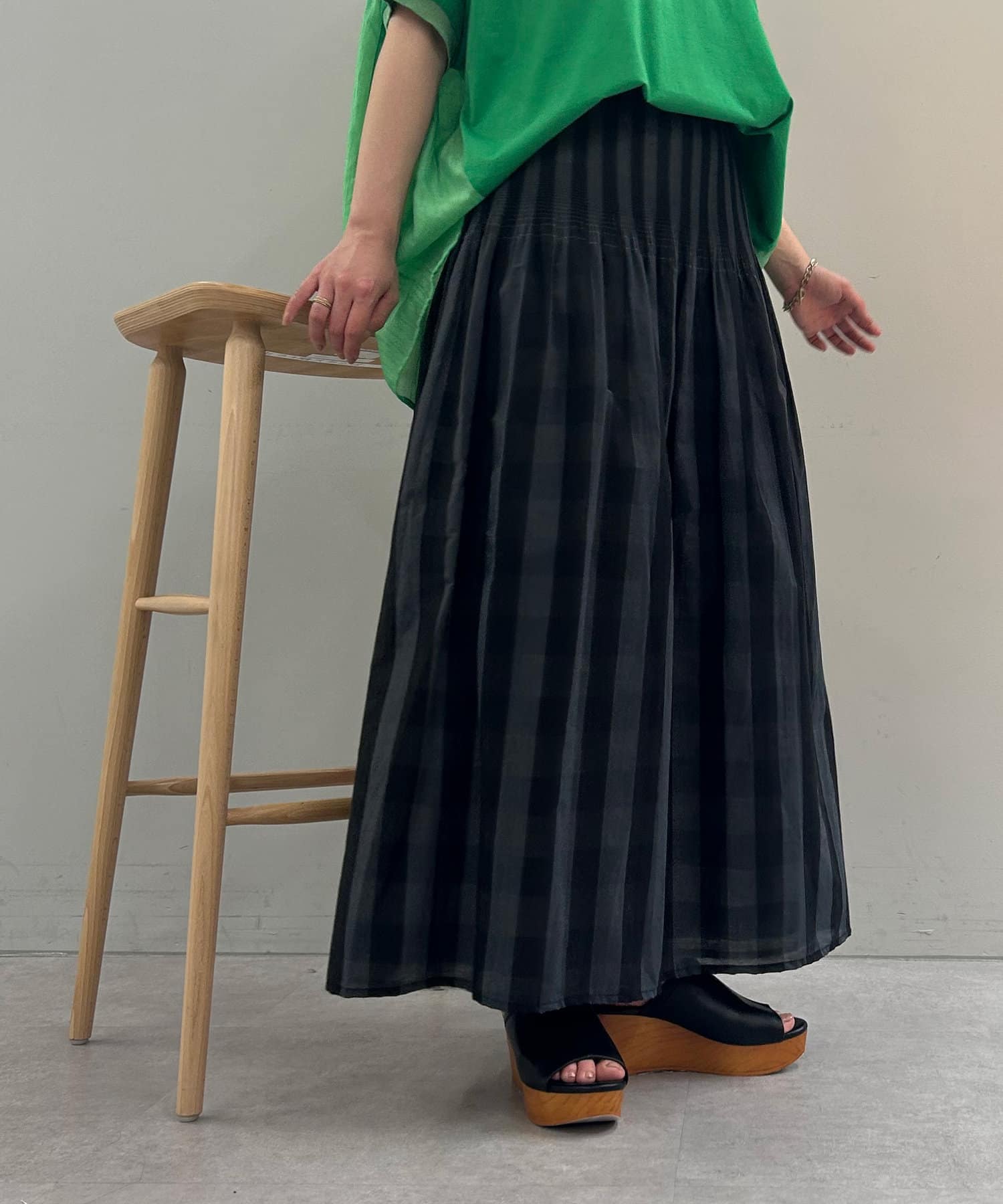 ・ウエストをシャーリング風のデザインにし、ラフな着心地を叶えてくれるリバーシブルのスカート。