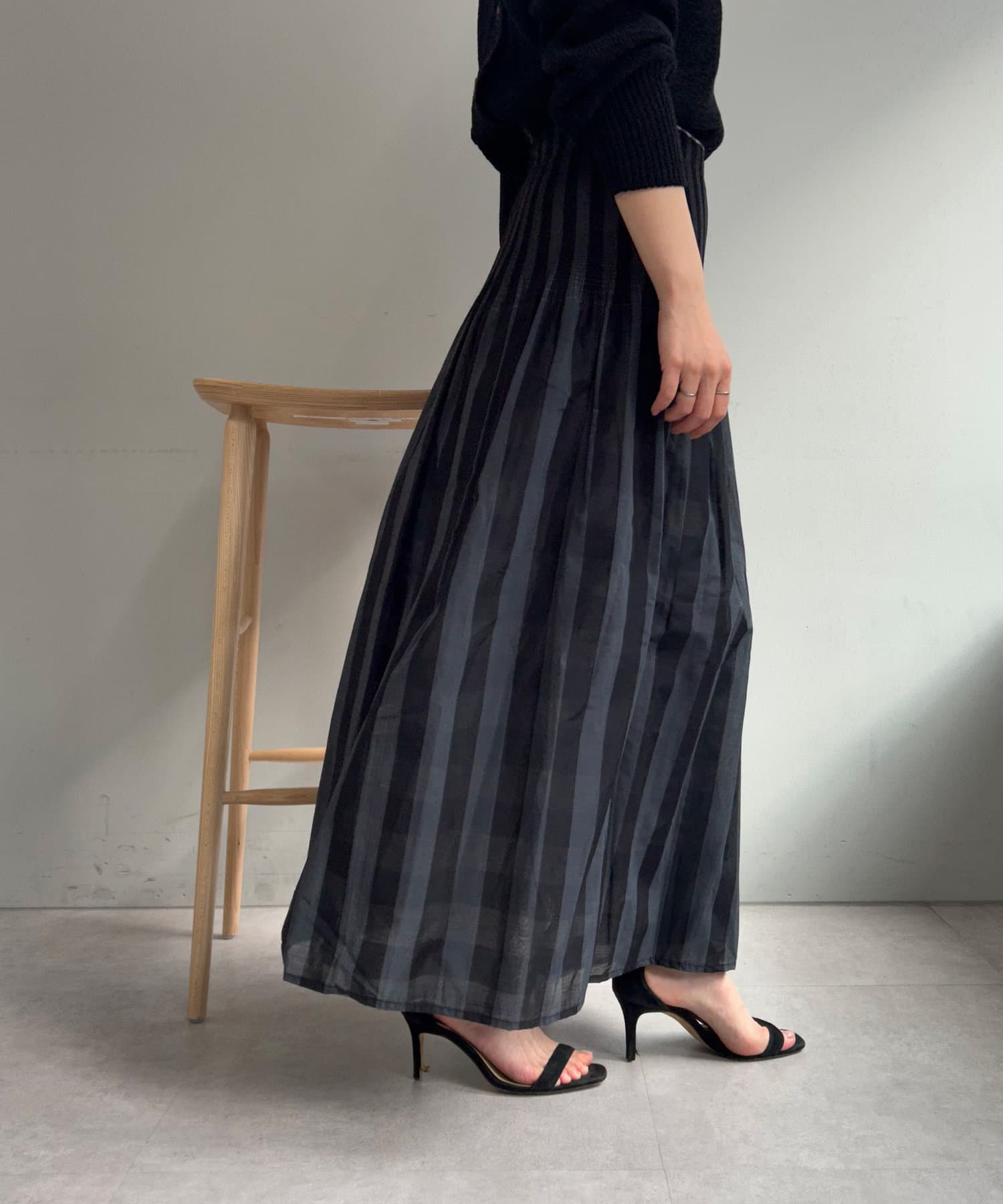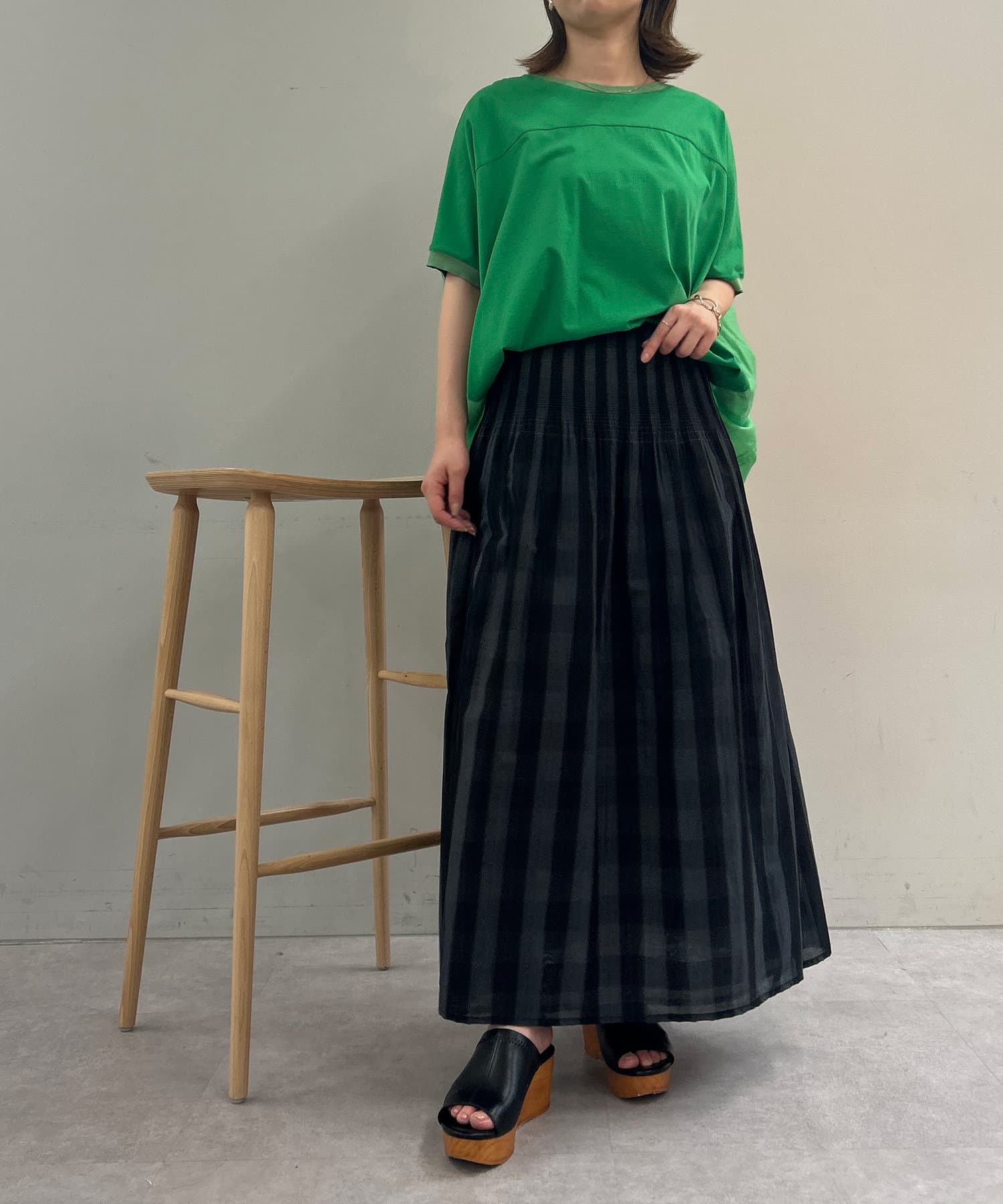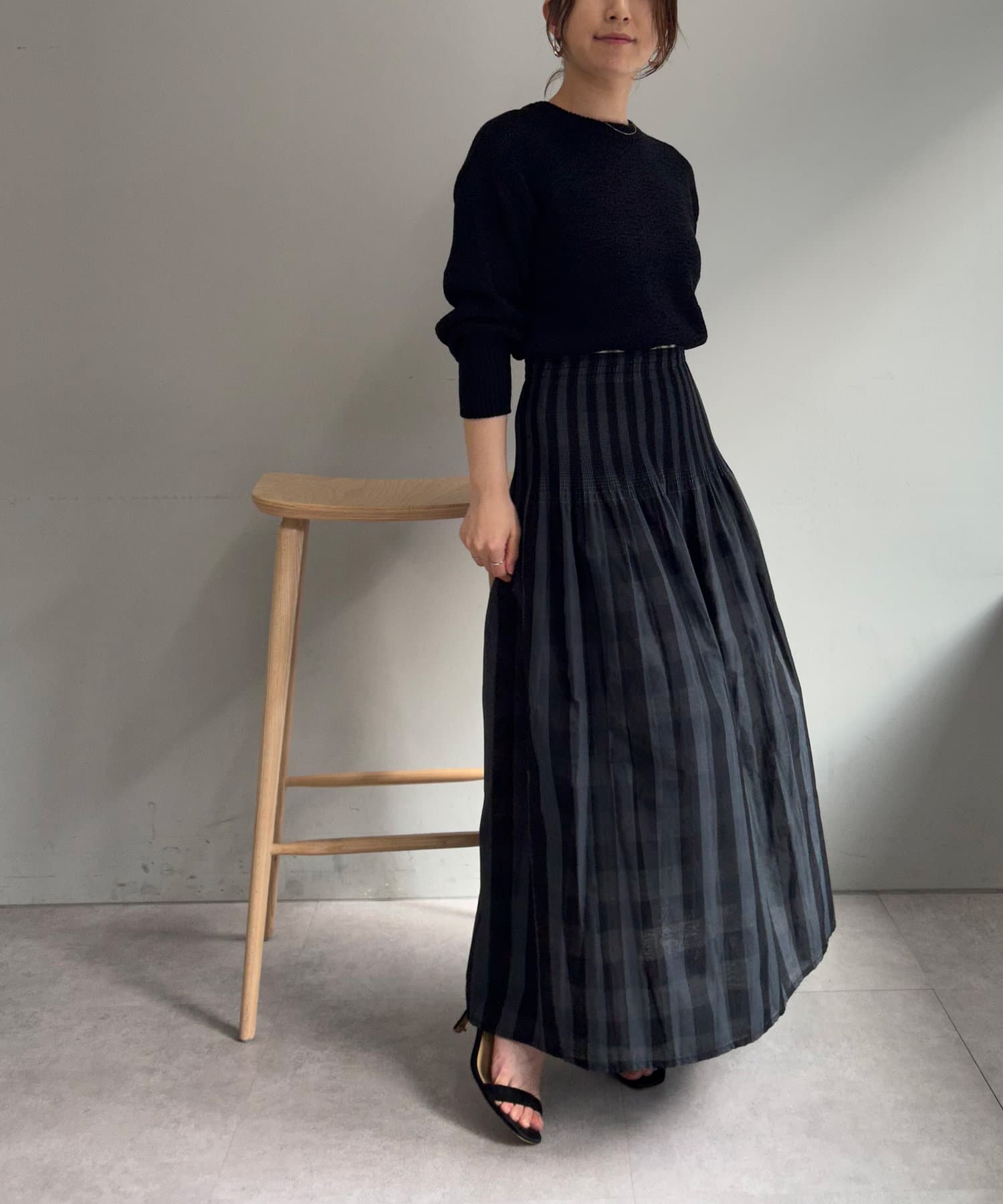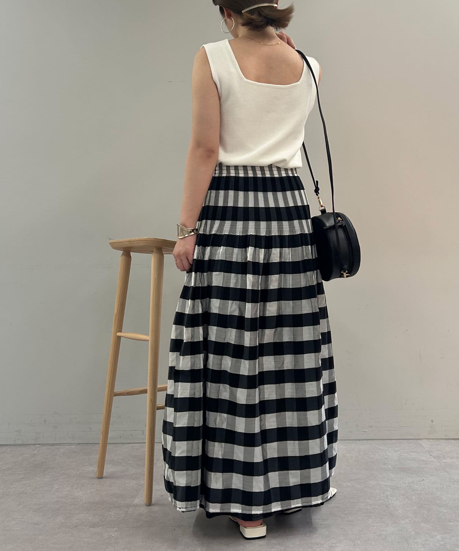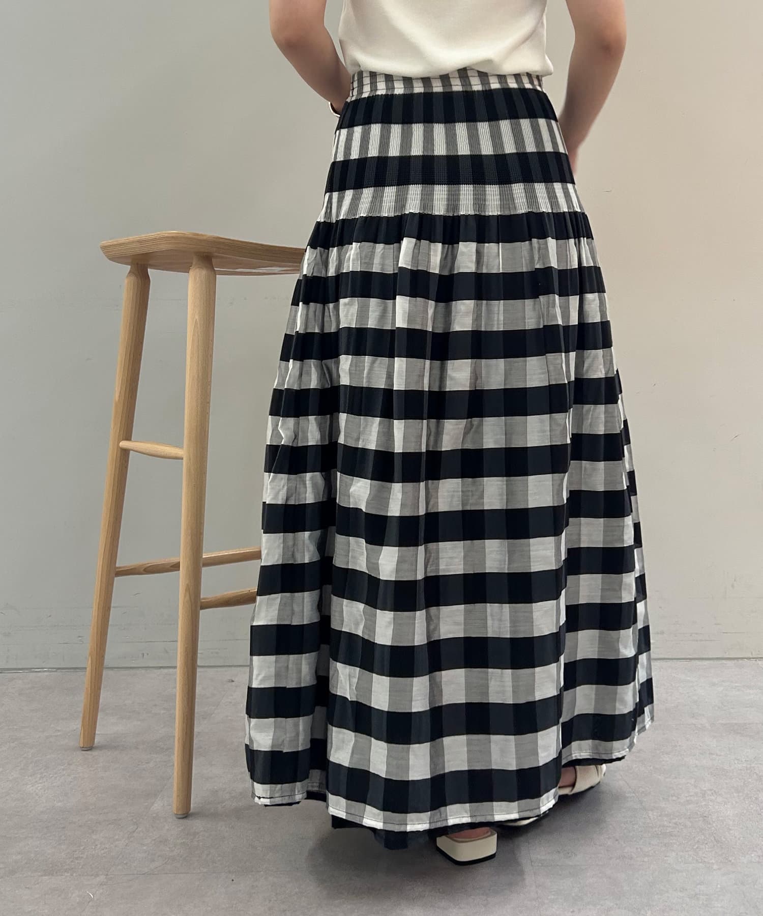 ・ウエストをシャーリング風のデザインにし、ラフな着心地を叶えてくれるリバーシブルのスカート。