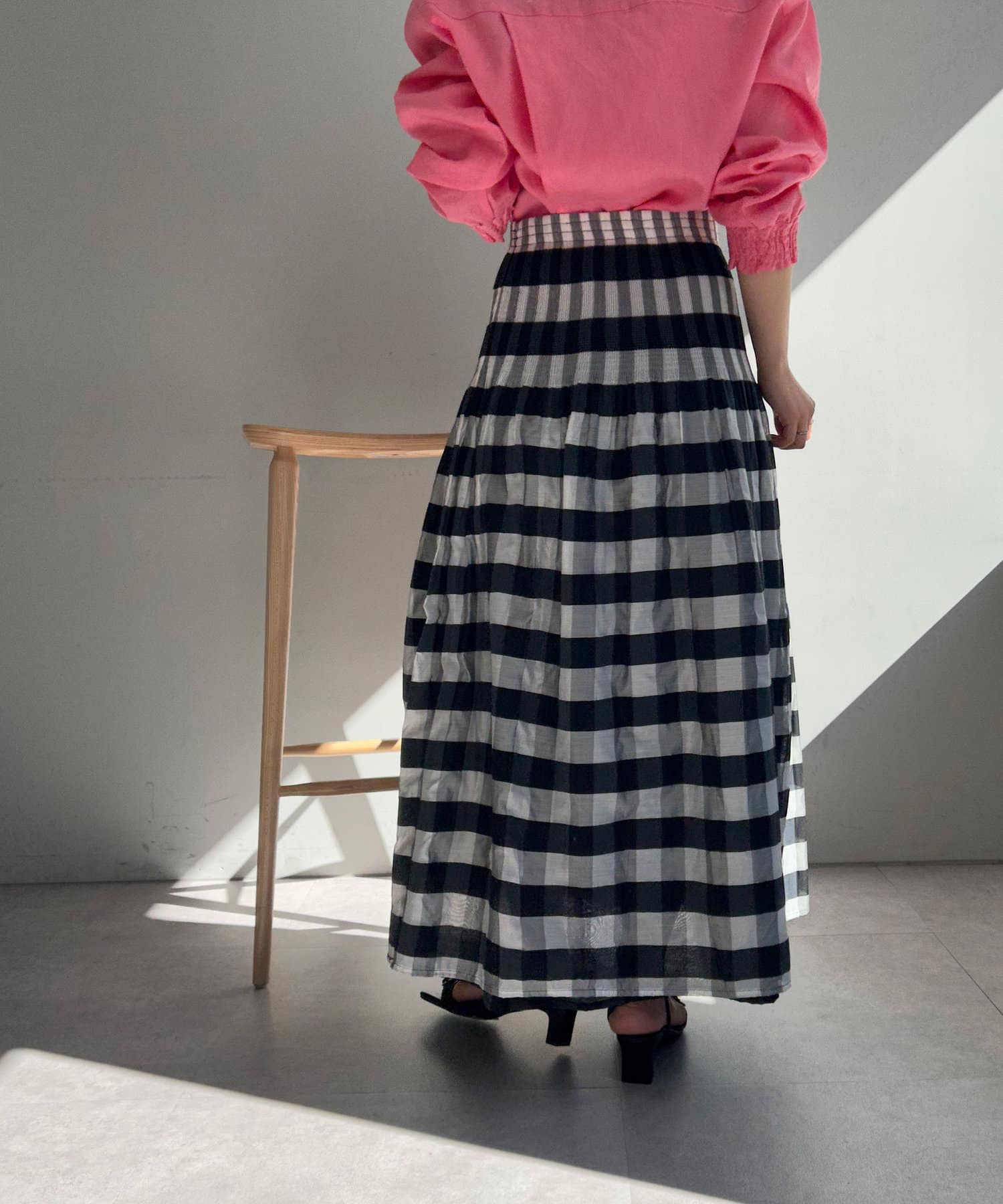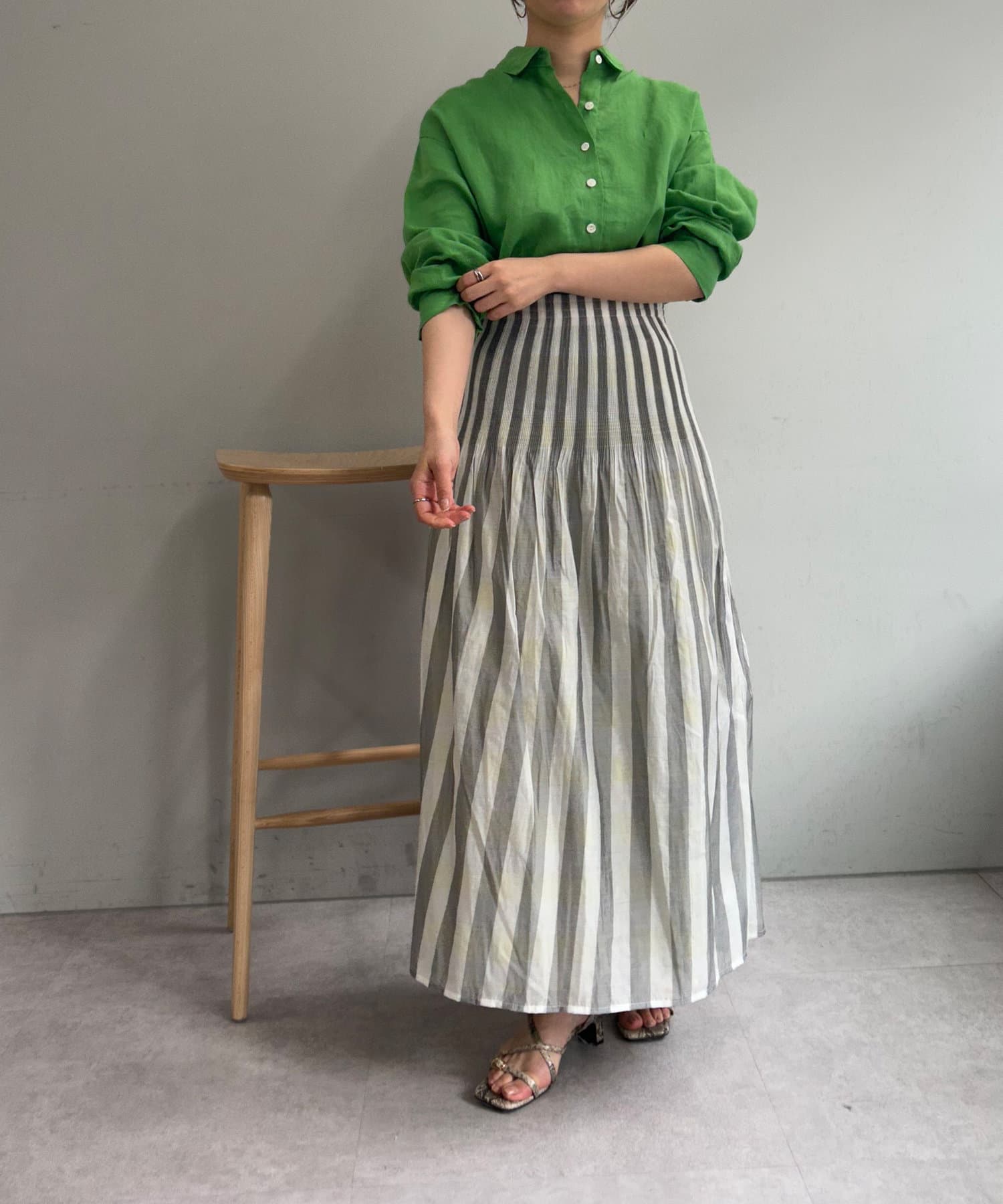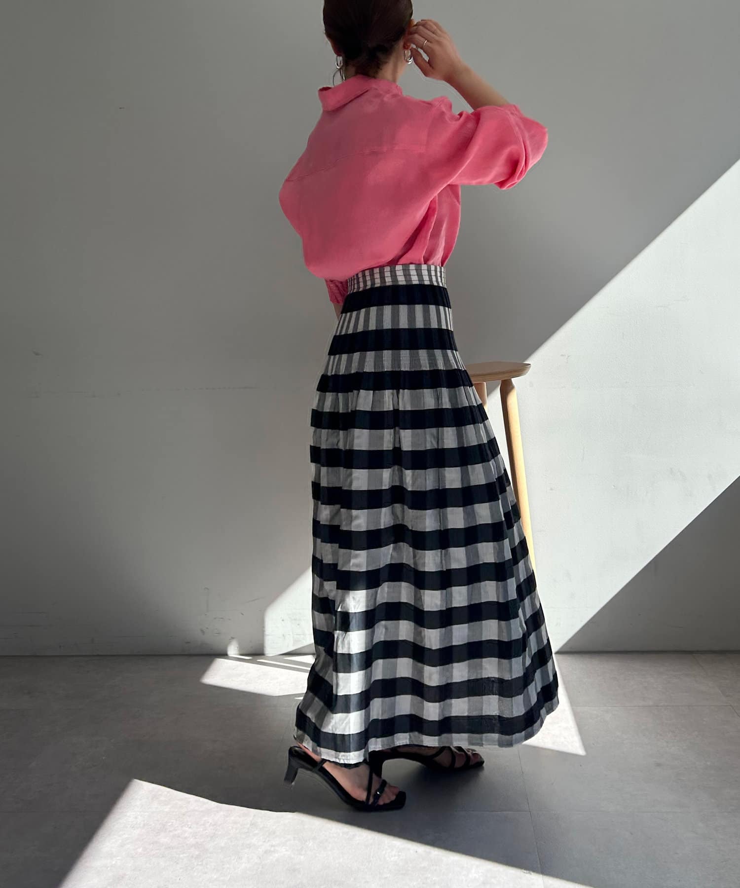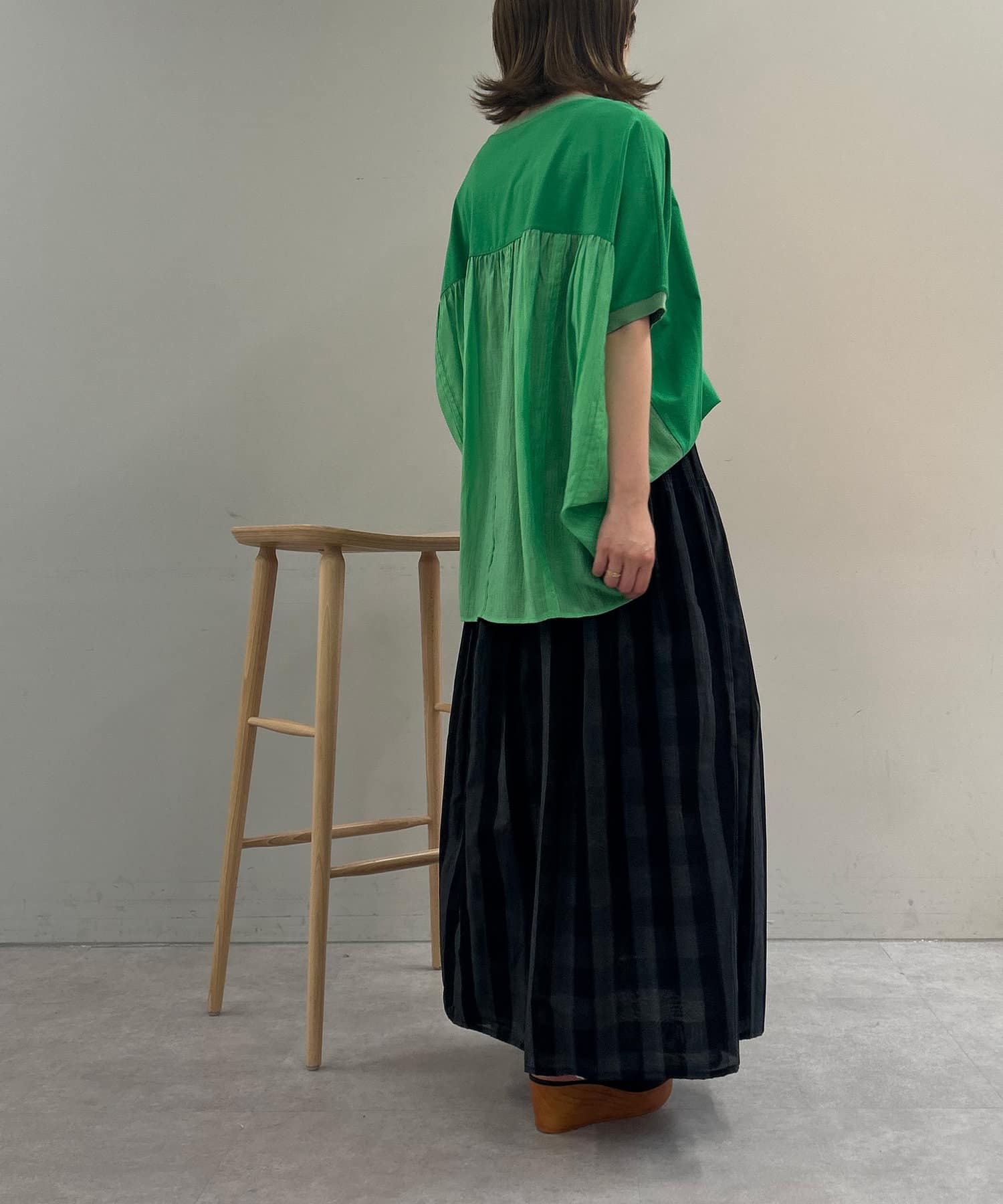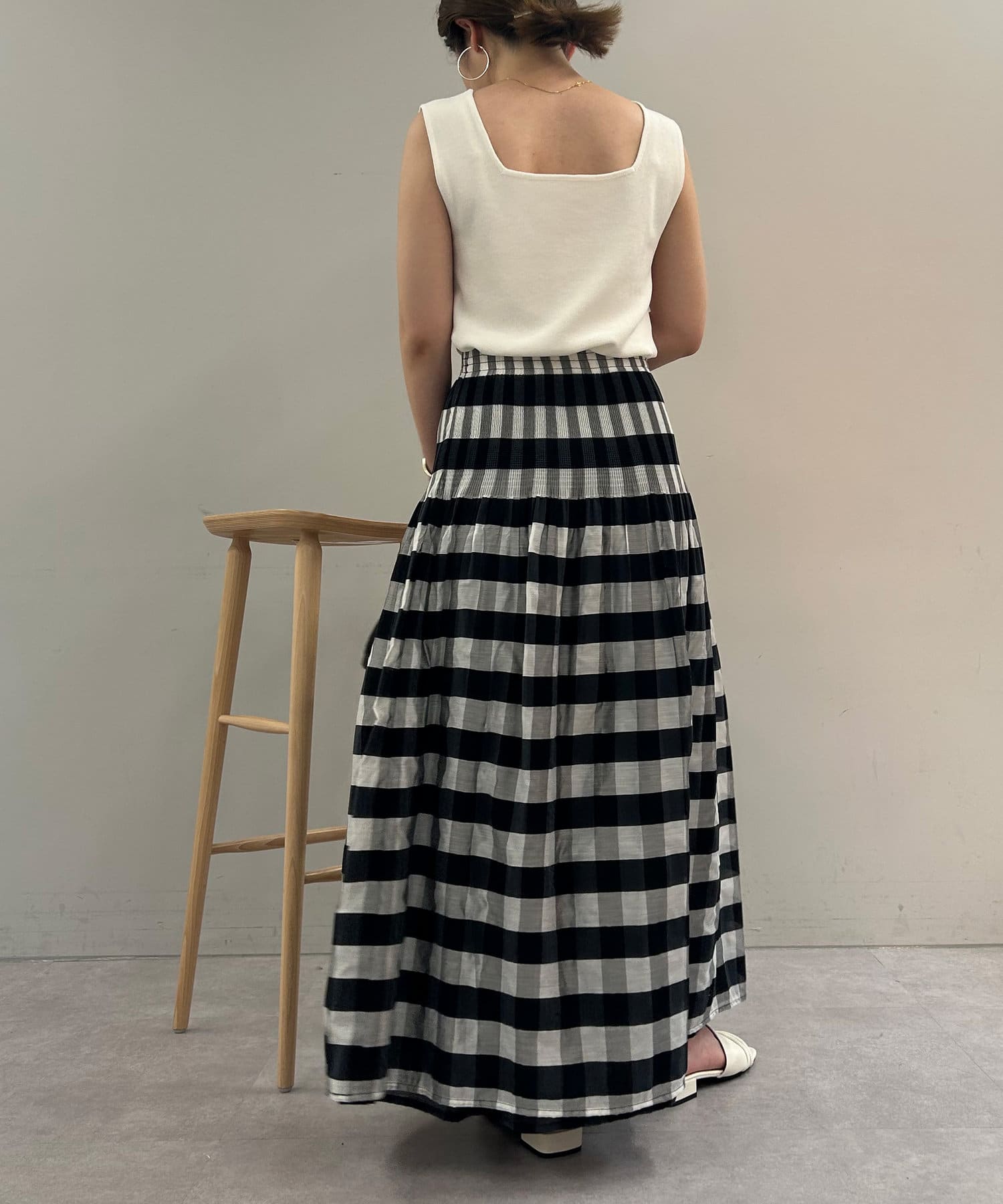 ・ウエストをシャーリング風のデザインにし、ラフな着心地を叶えてくれるリバーシブルのスカート。