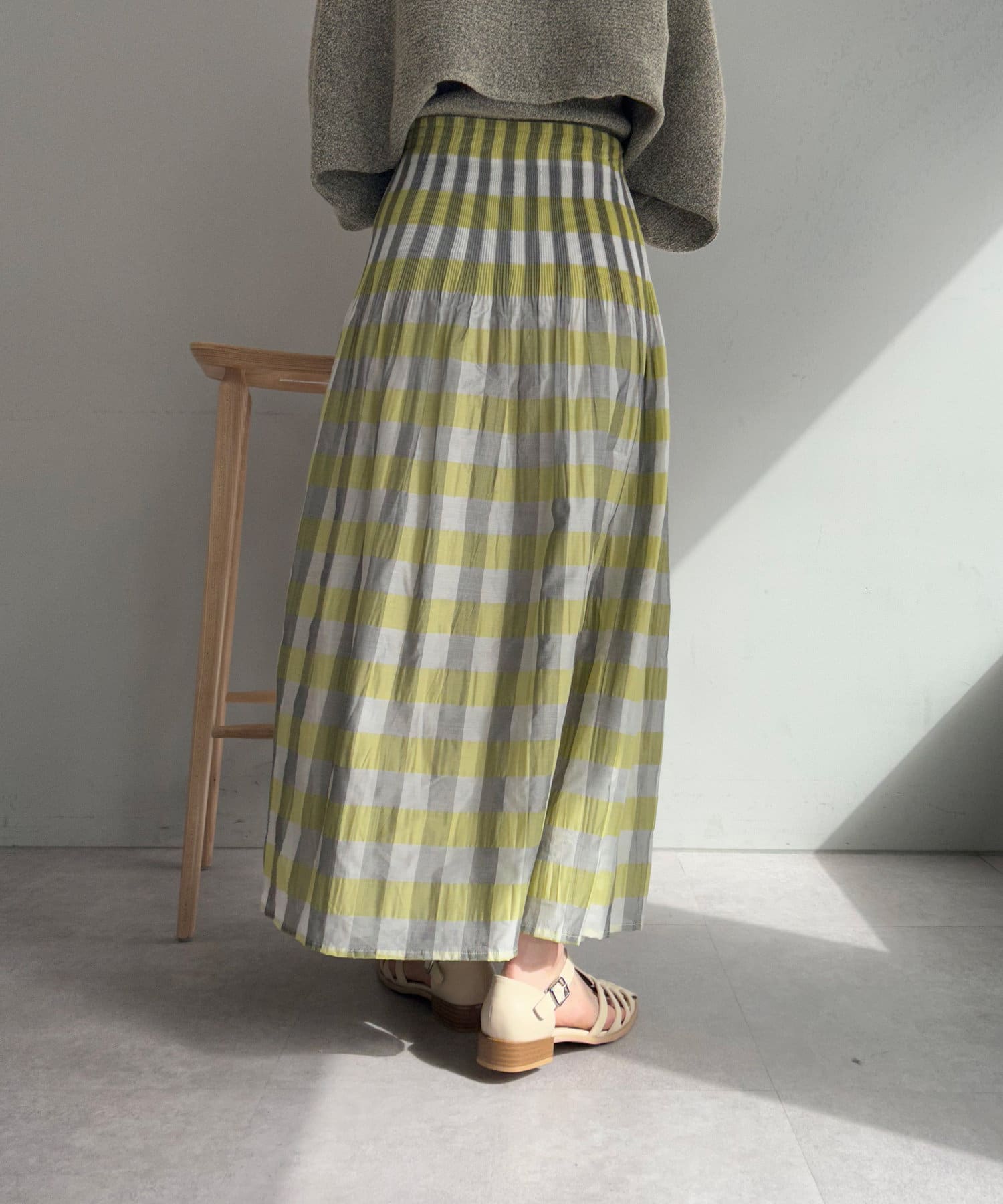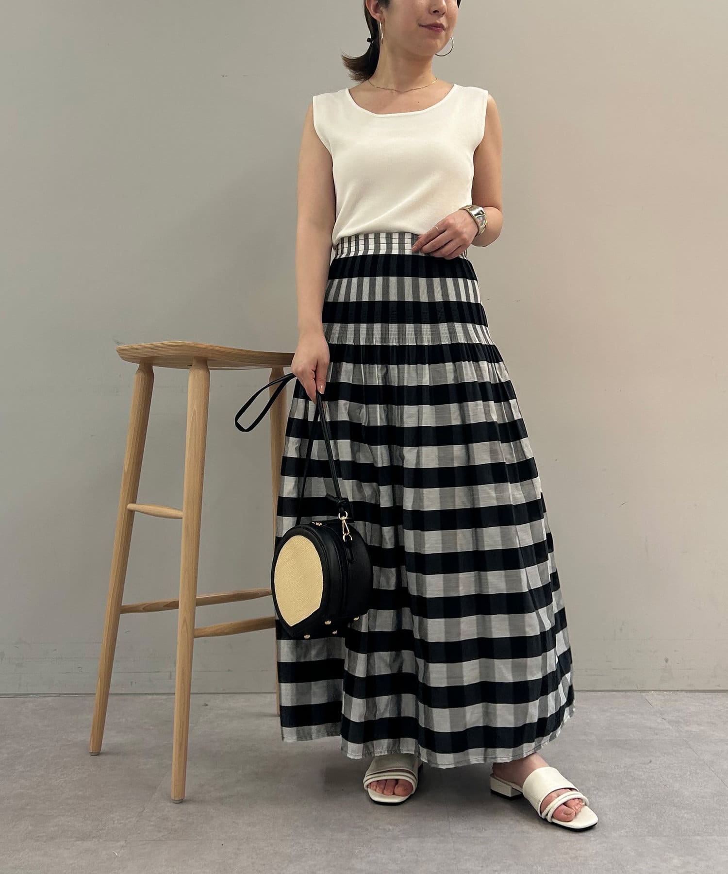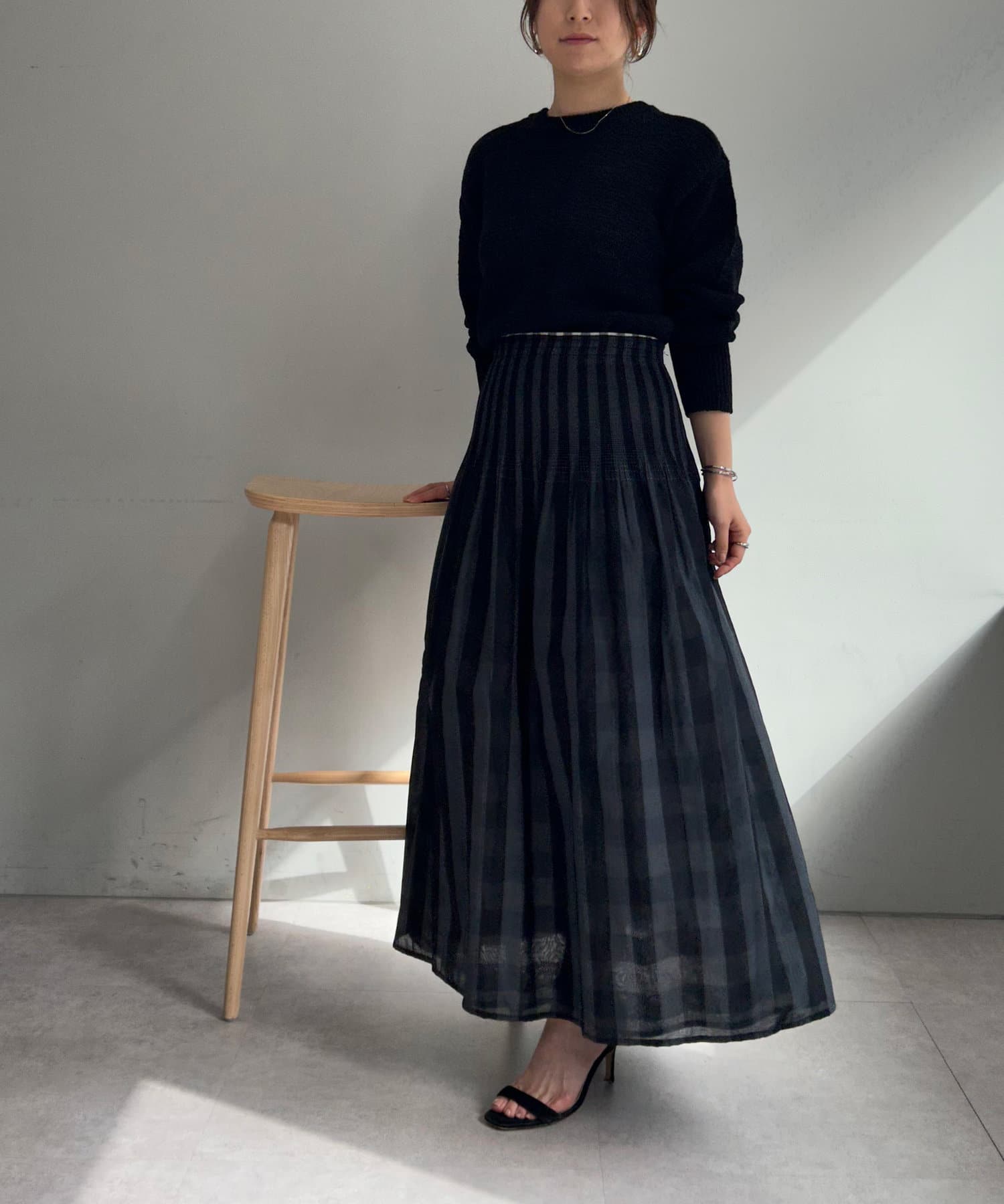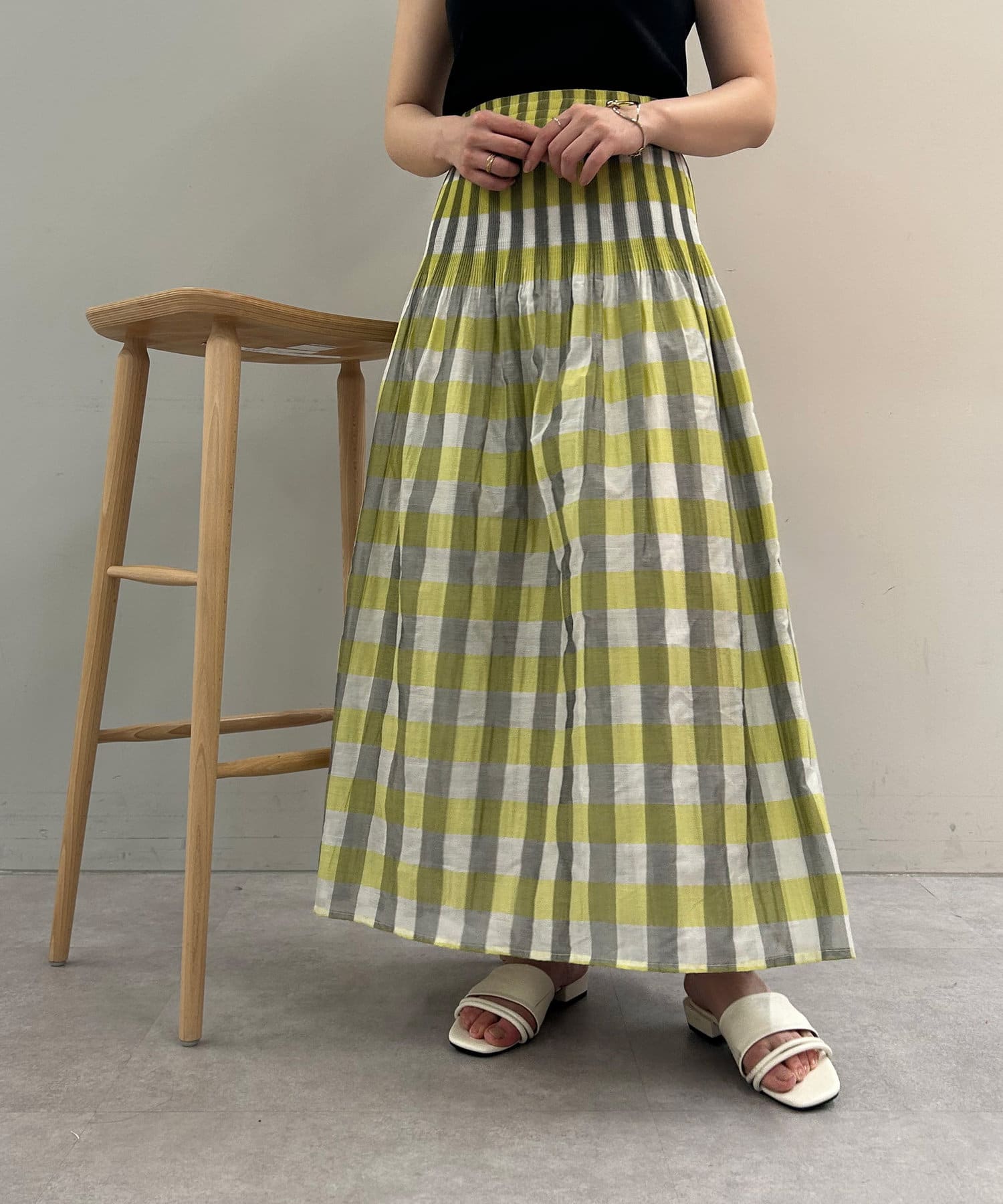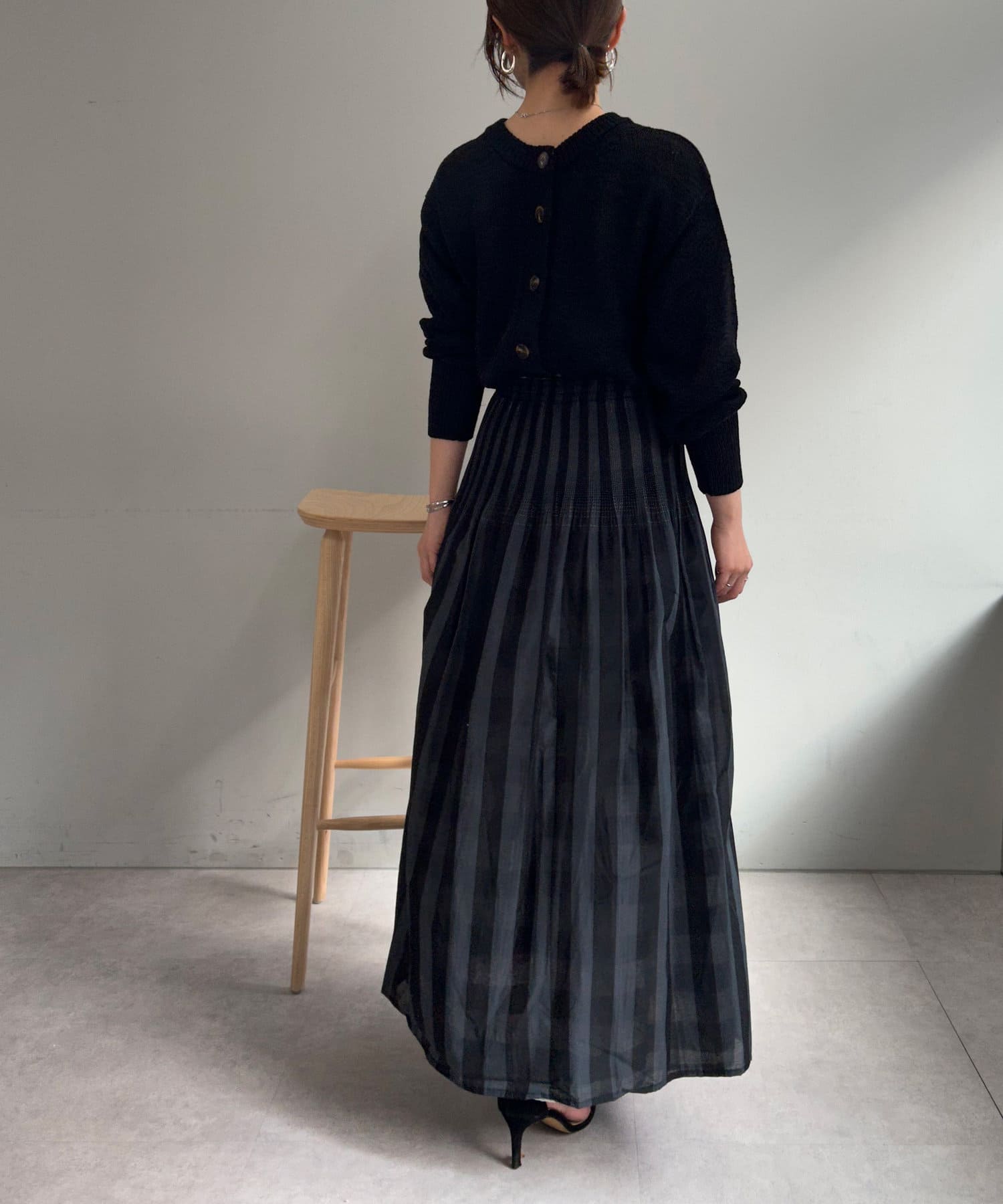 ・ウエストをシャーリング風のデザインにし、ラフな着心地を叶えてくれるリバーシブルのスカート。