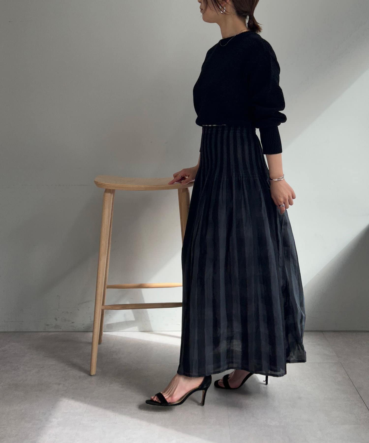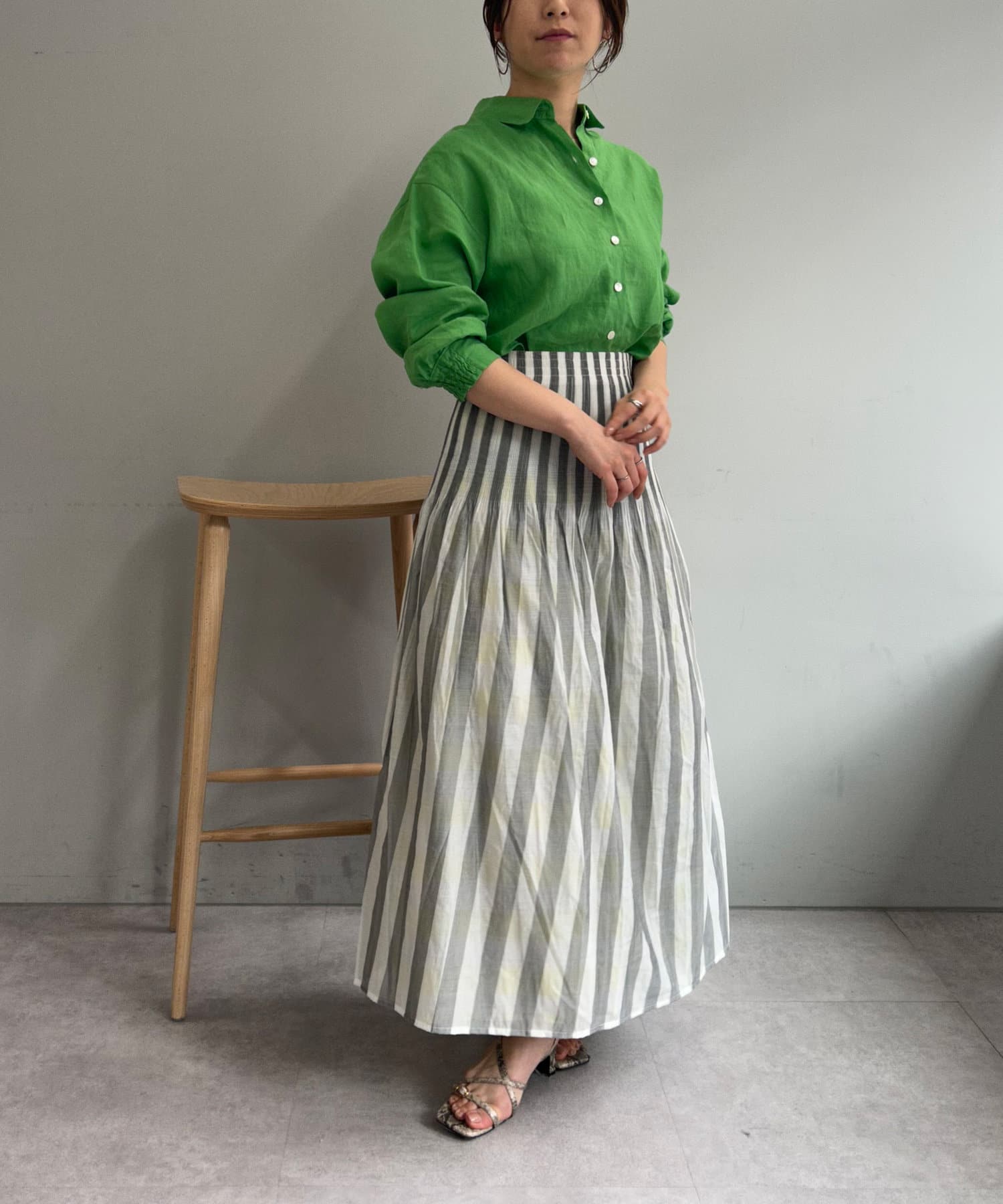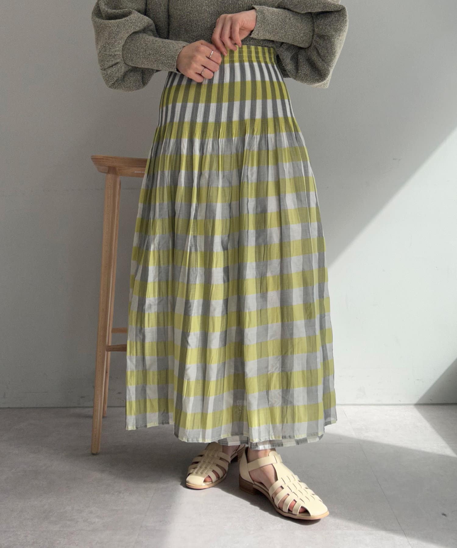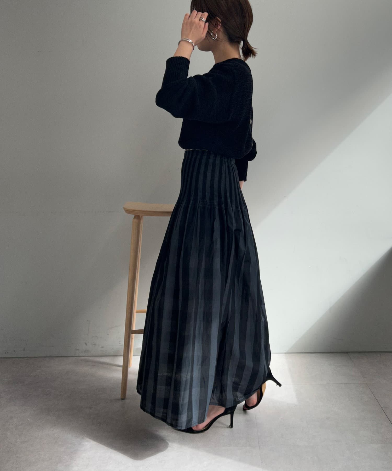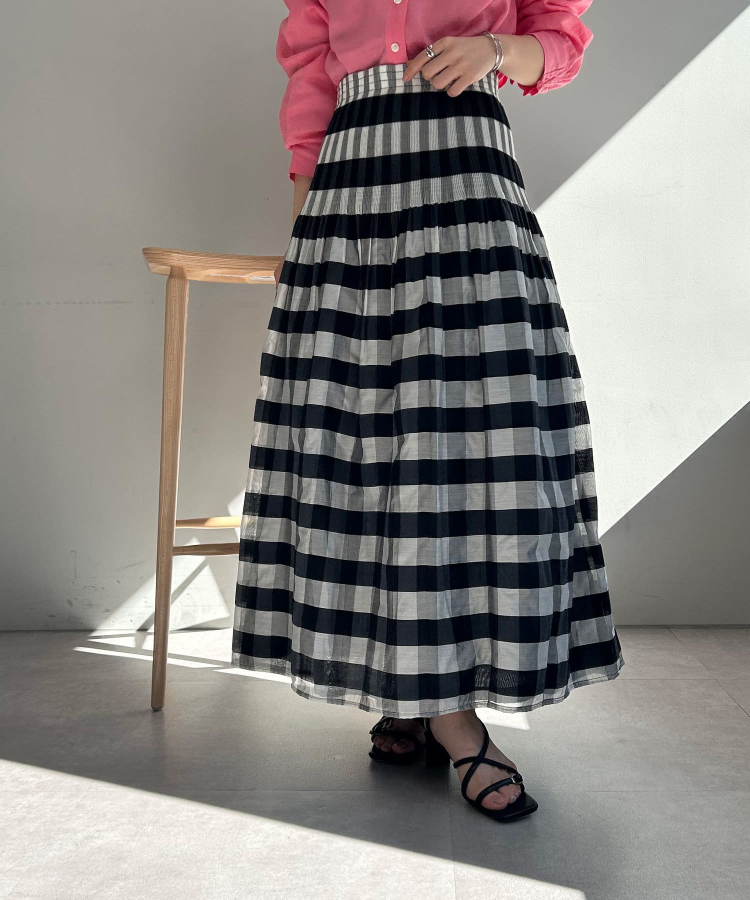 ・ウエストをシャーリング風のデザインにし、ラフな着心地を叶えてくれるリバーシブルのスカート。