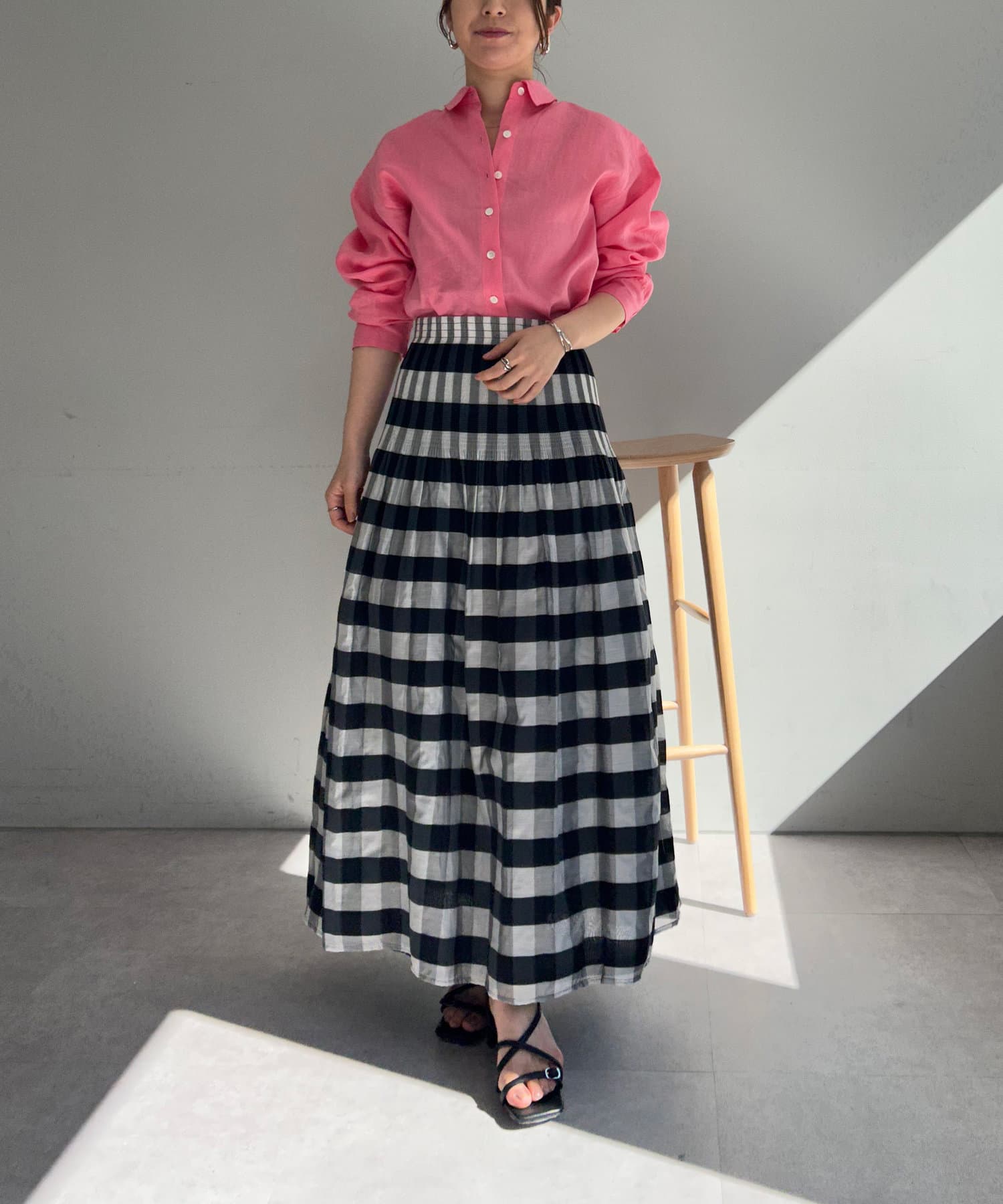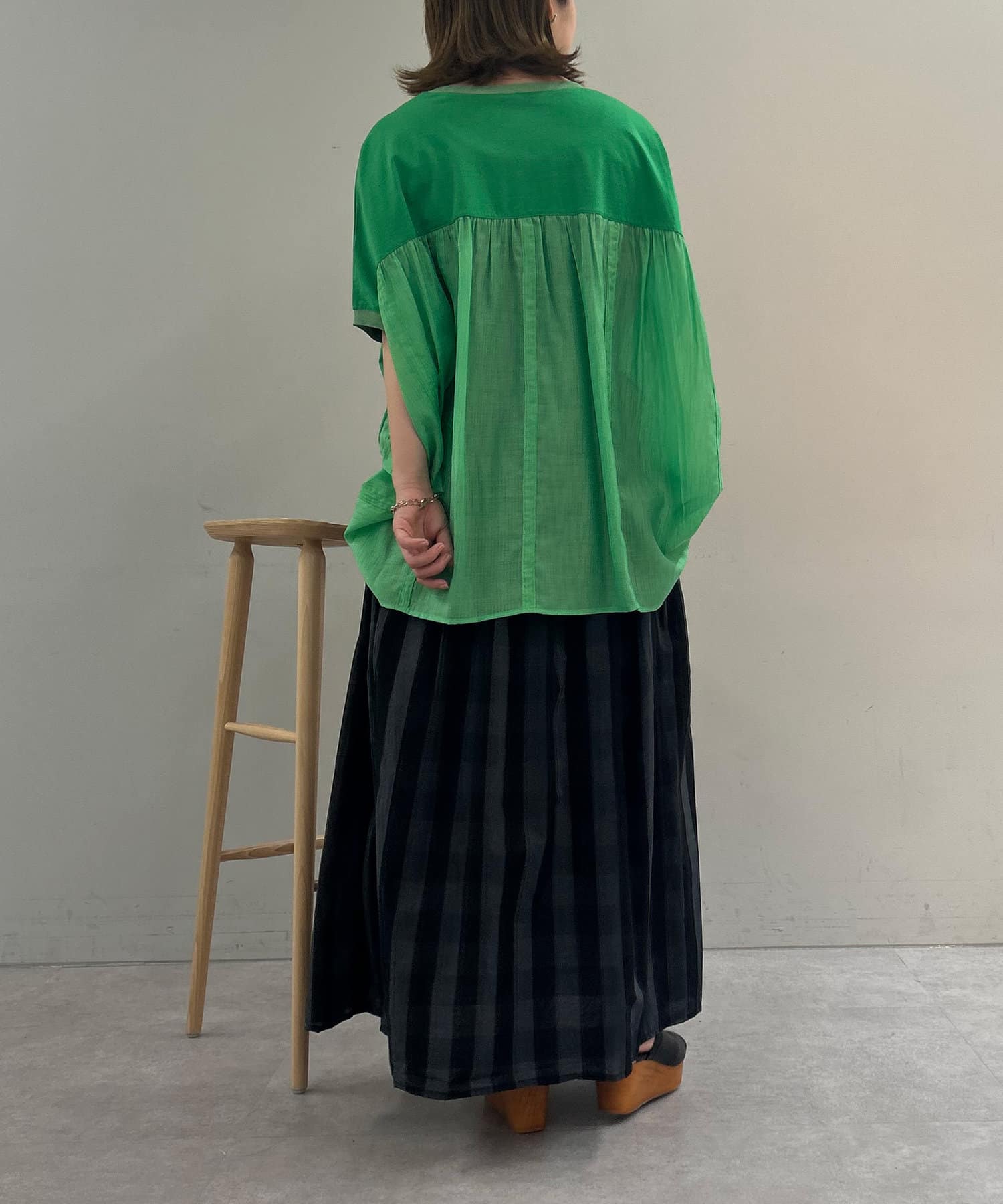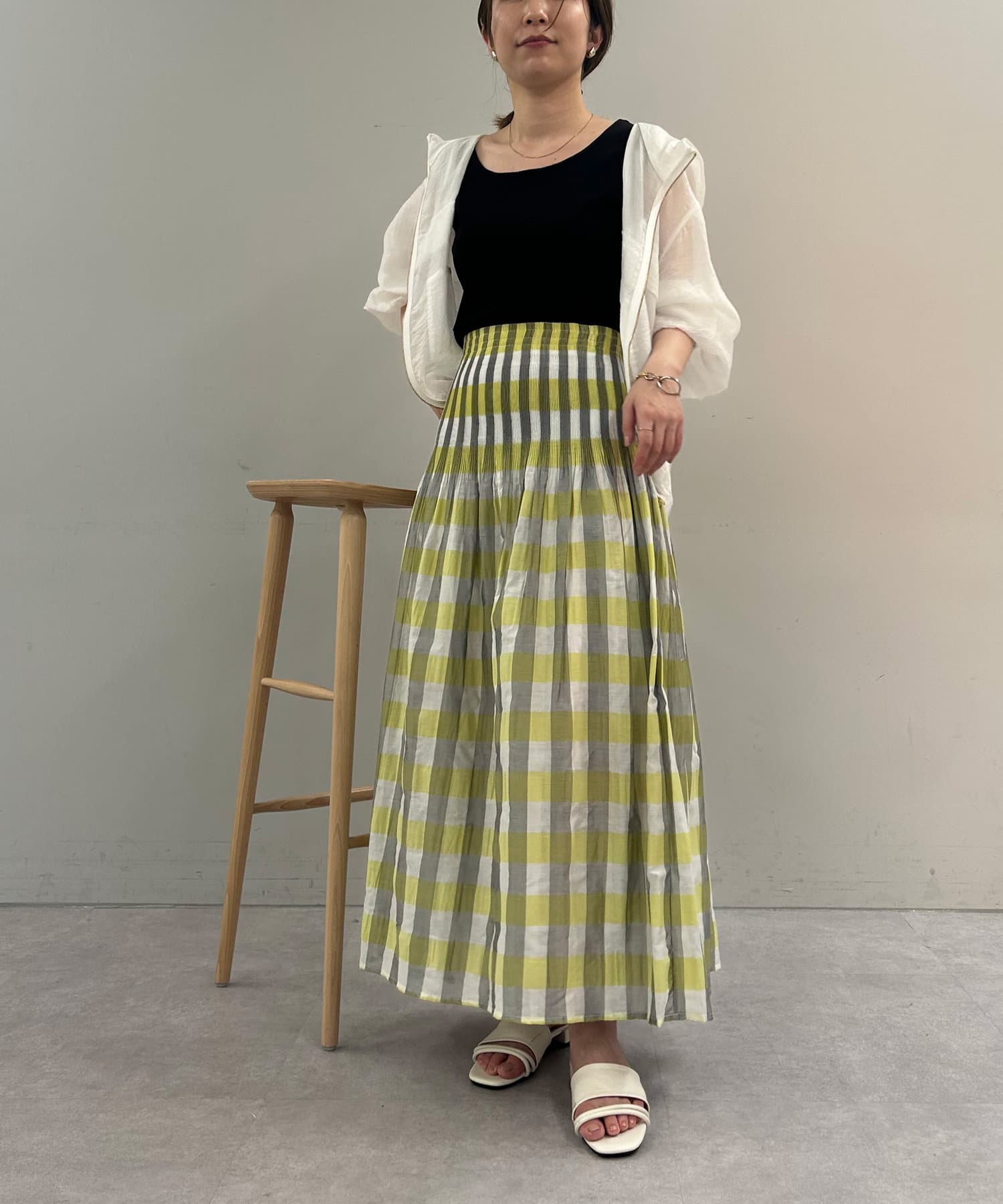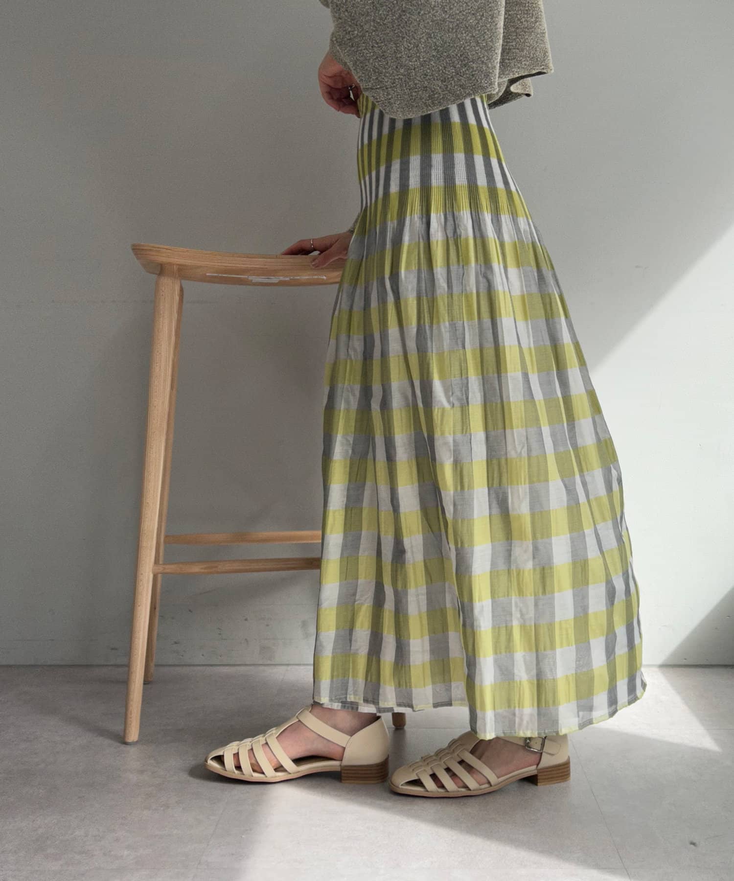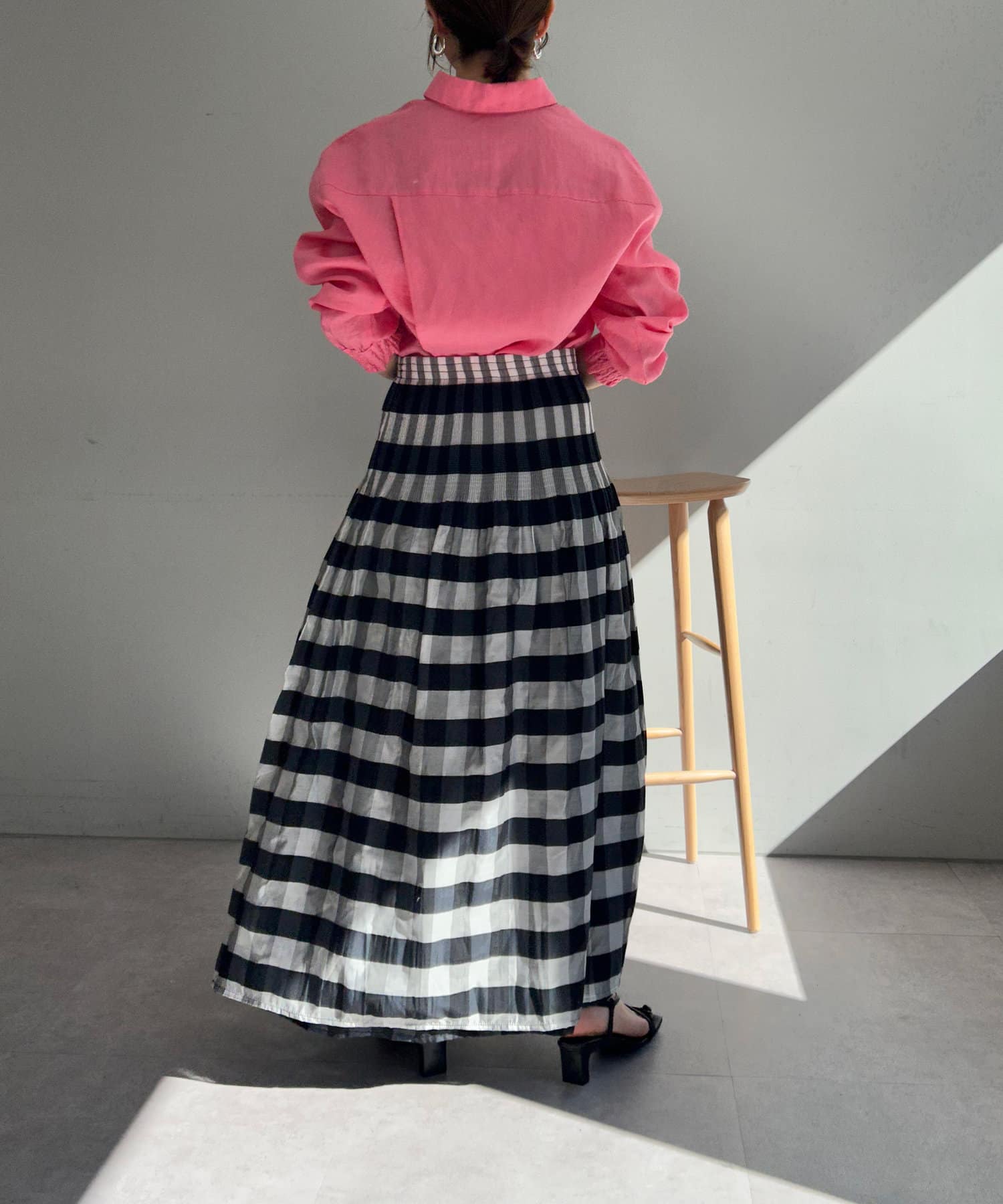 ・ウエストをシャーリング風のデザインにし、ラフな着心地を叶えてくれるリバーシブルのスカート。