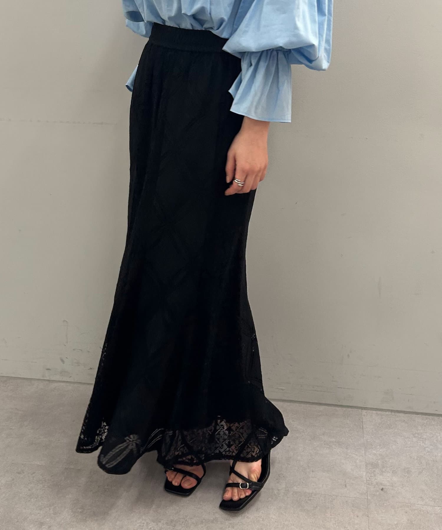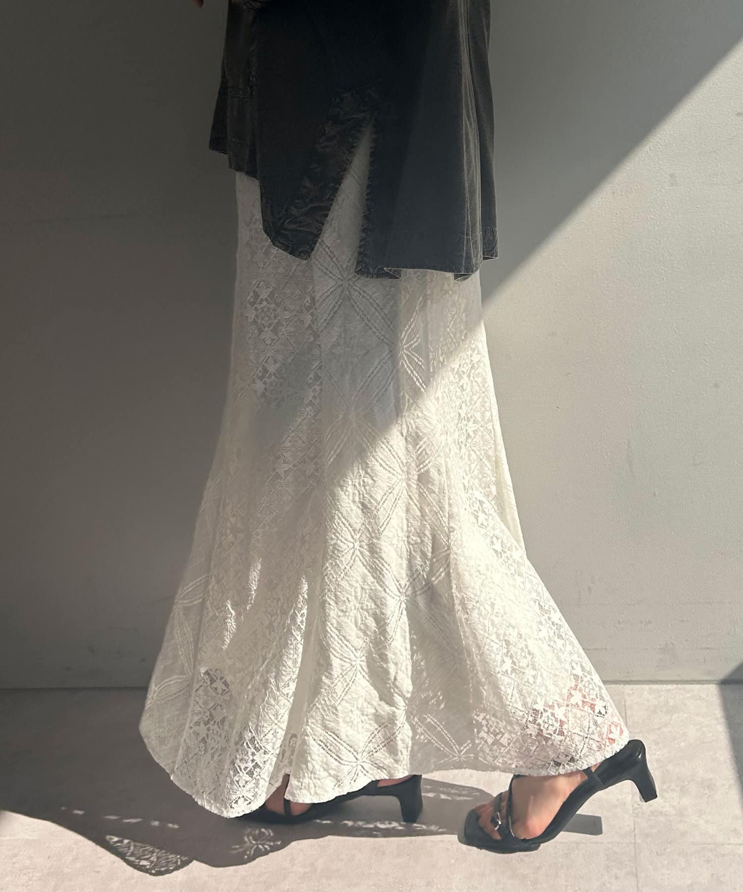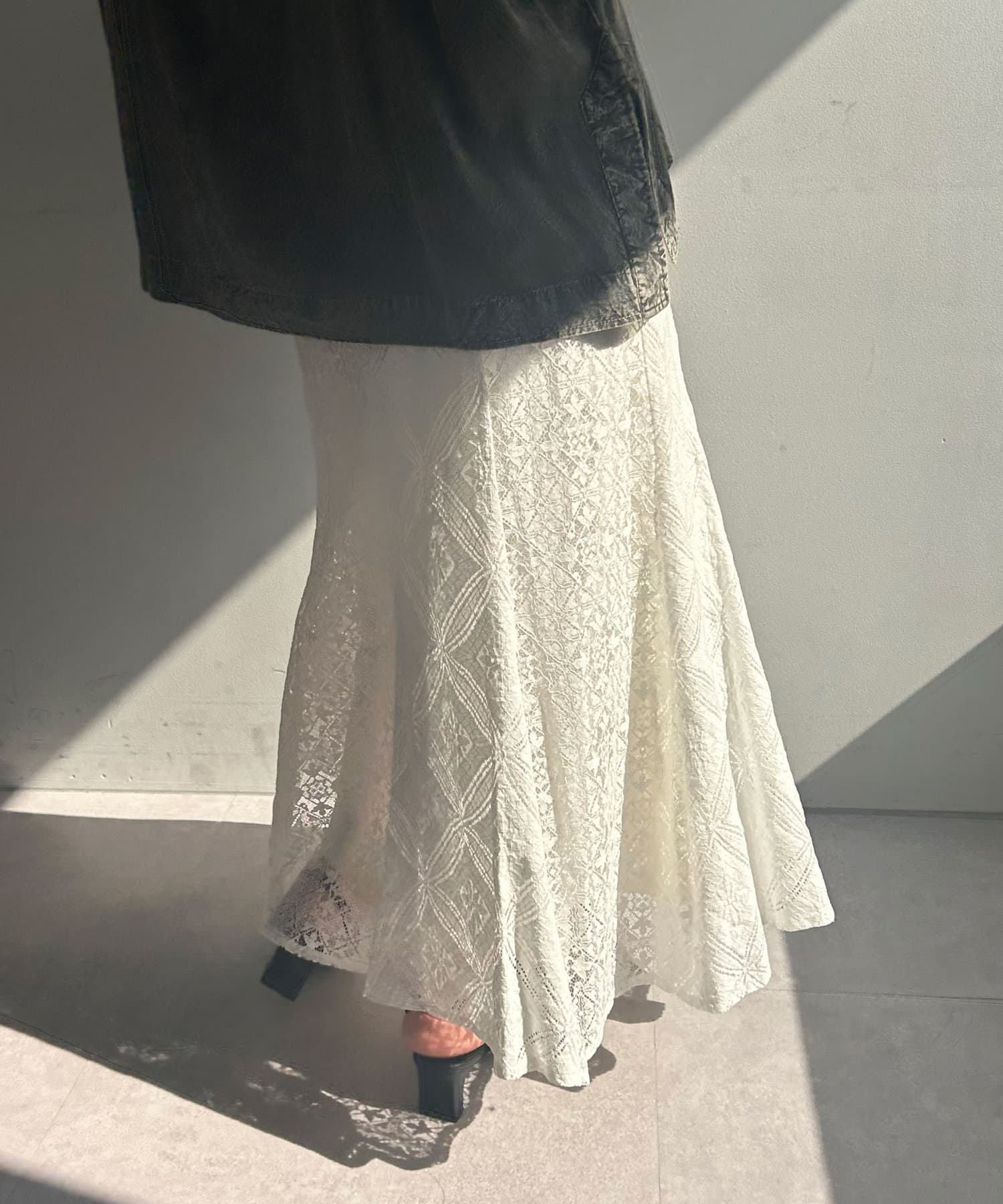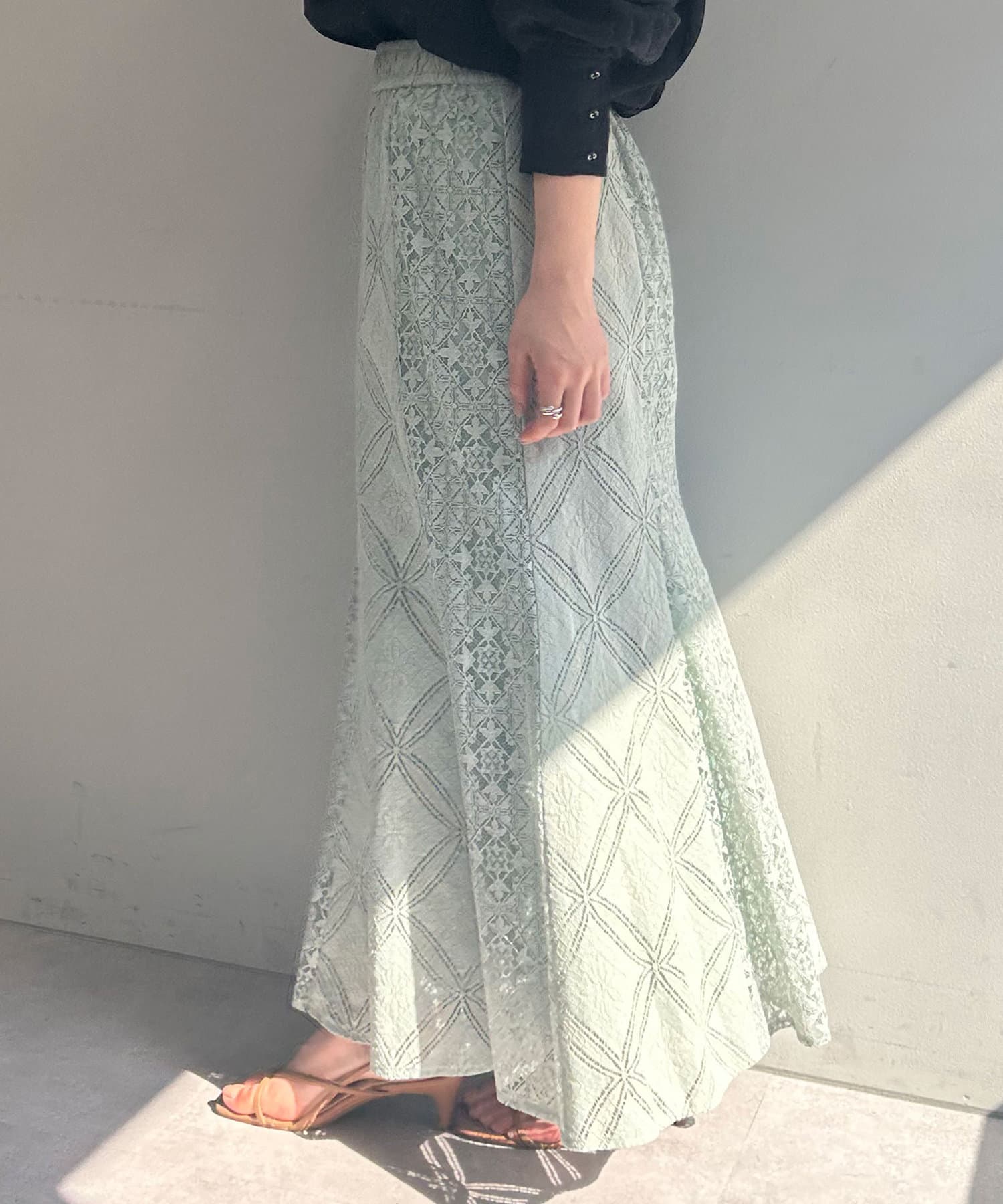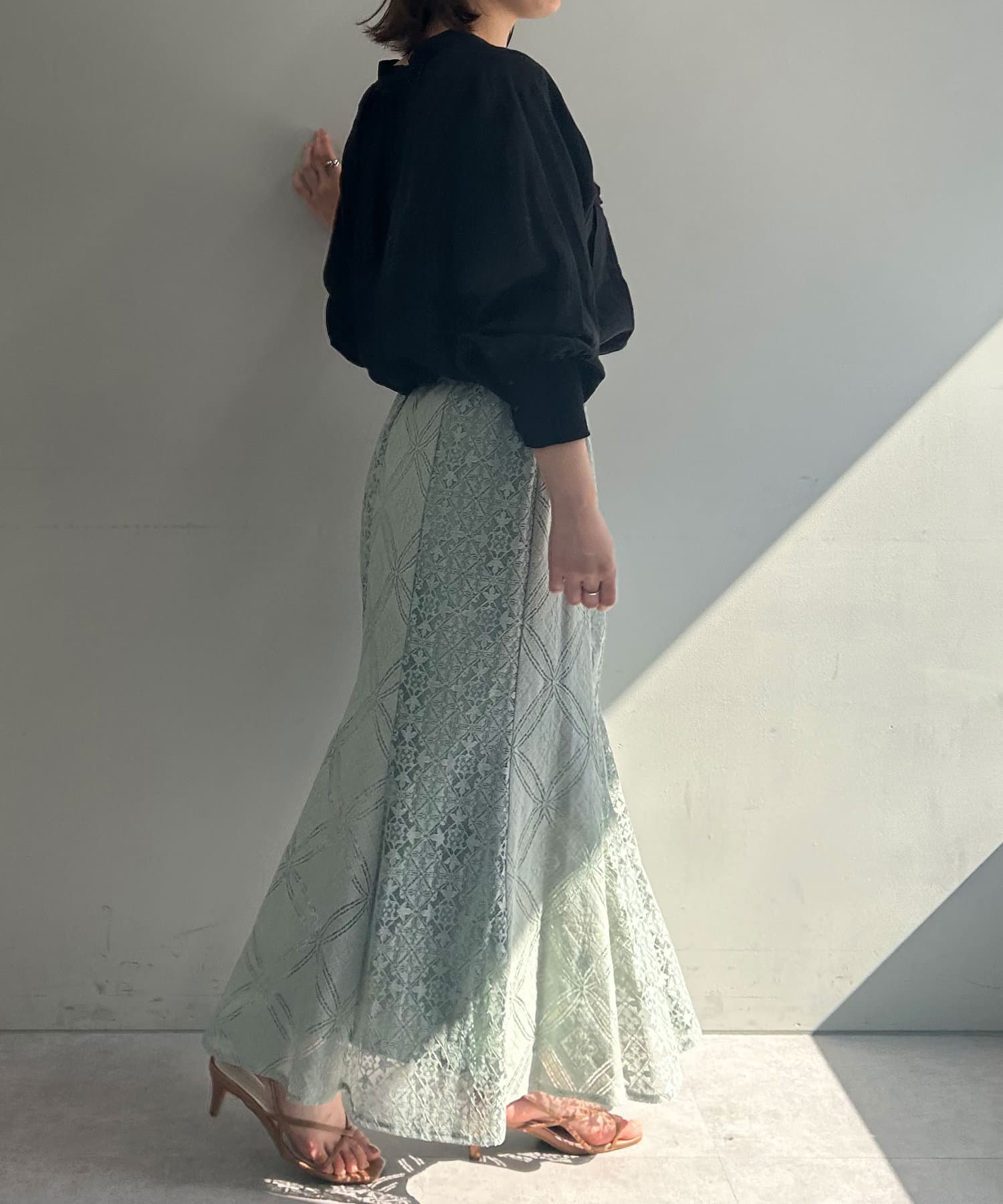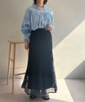 ・ひざ下あたりから裾にかけて程よく広がるマーメードシルエットのスカート。