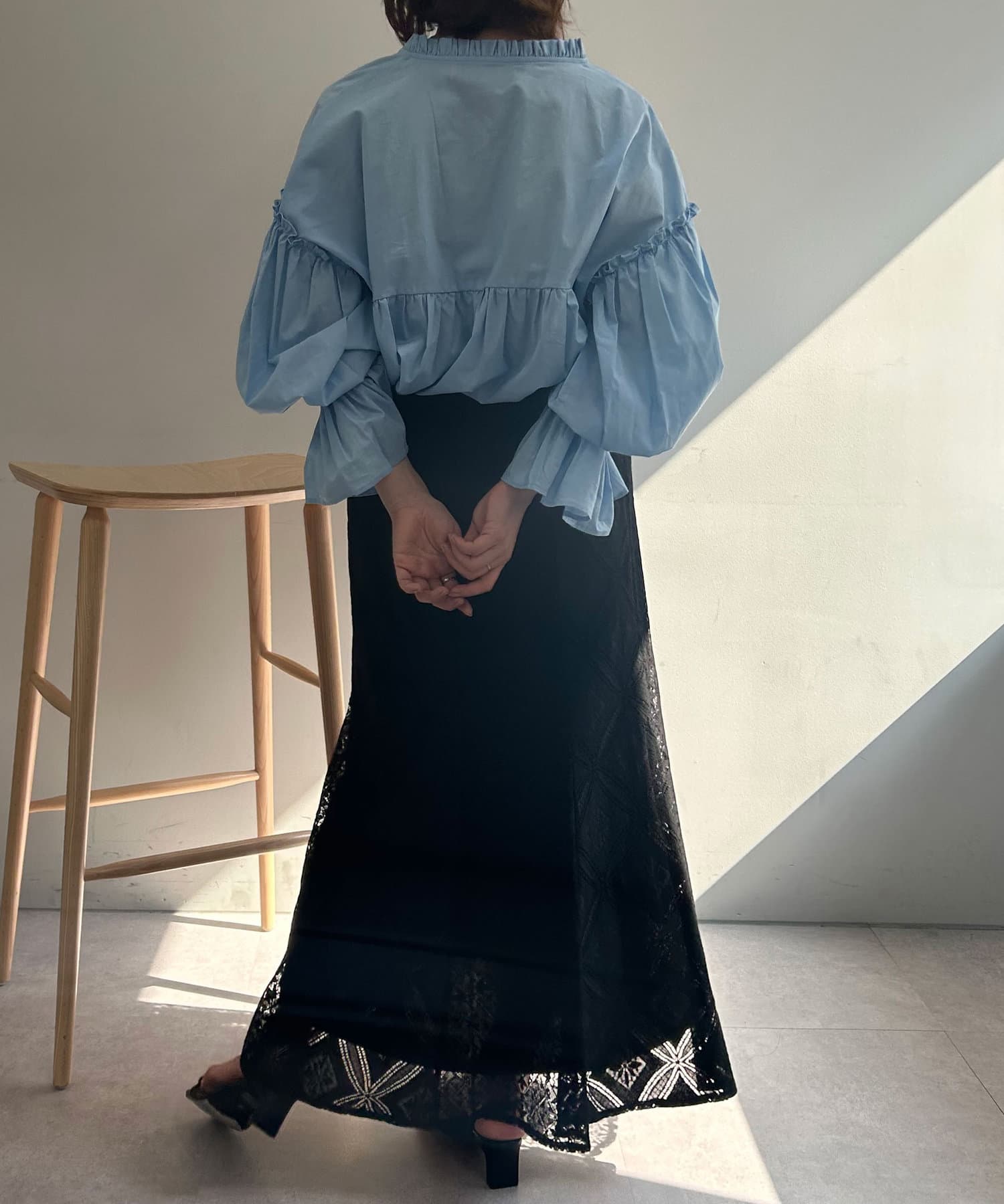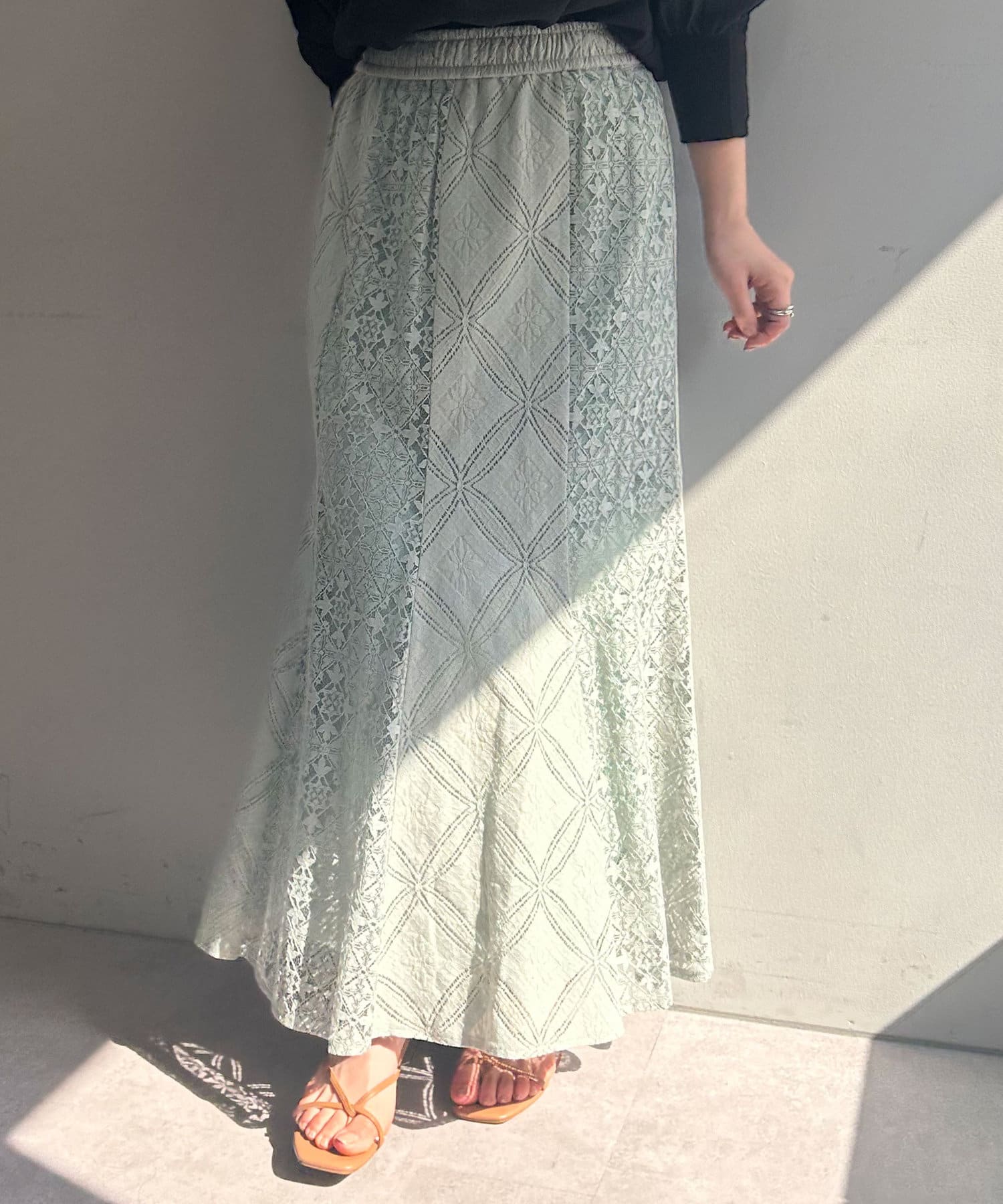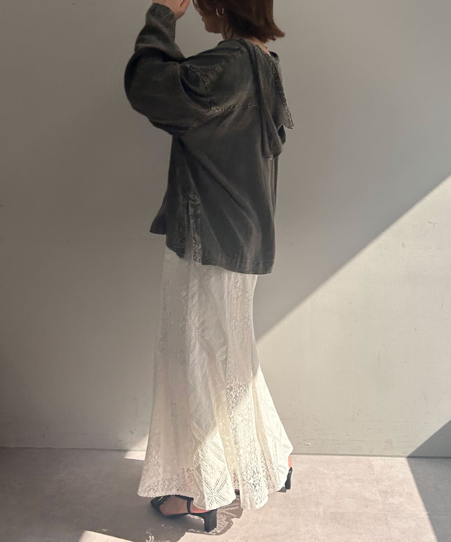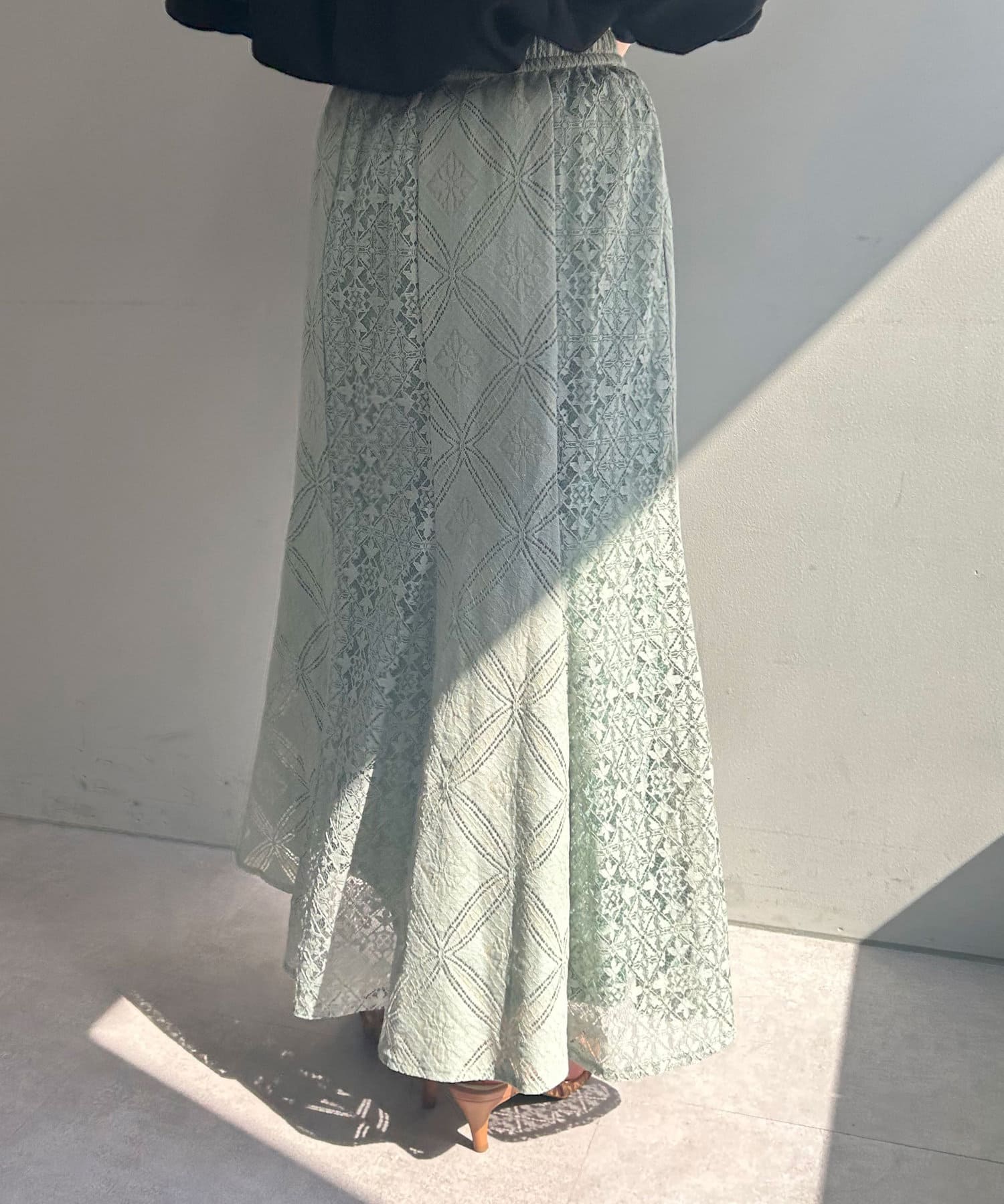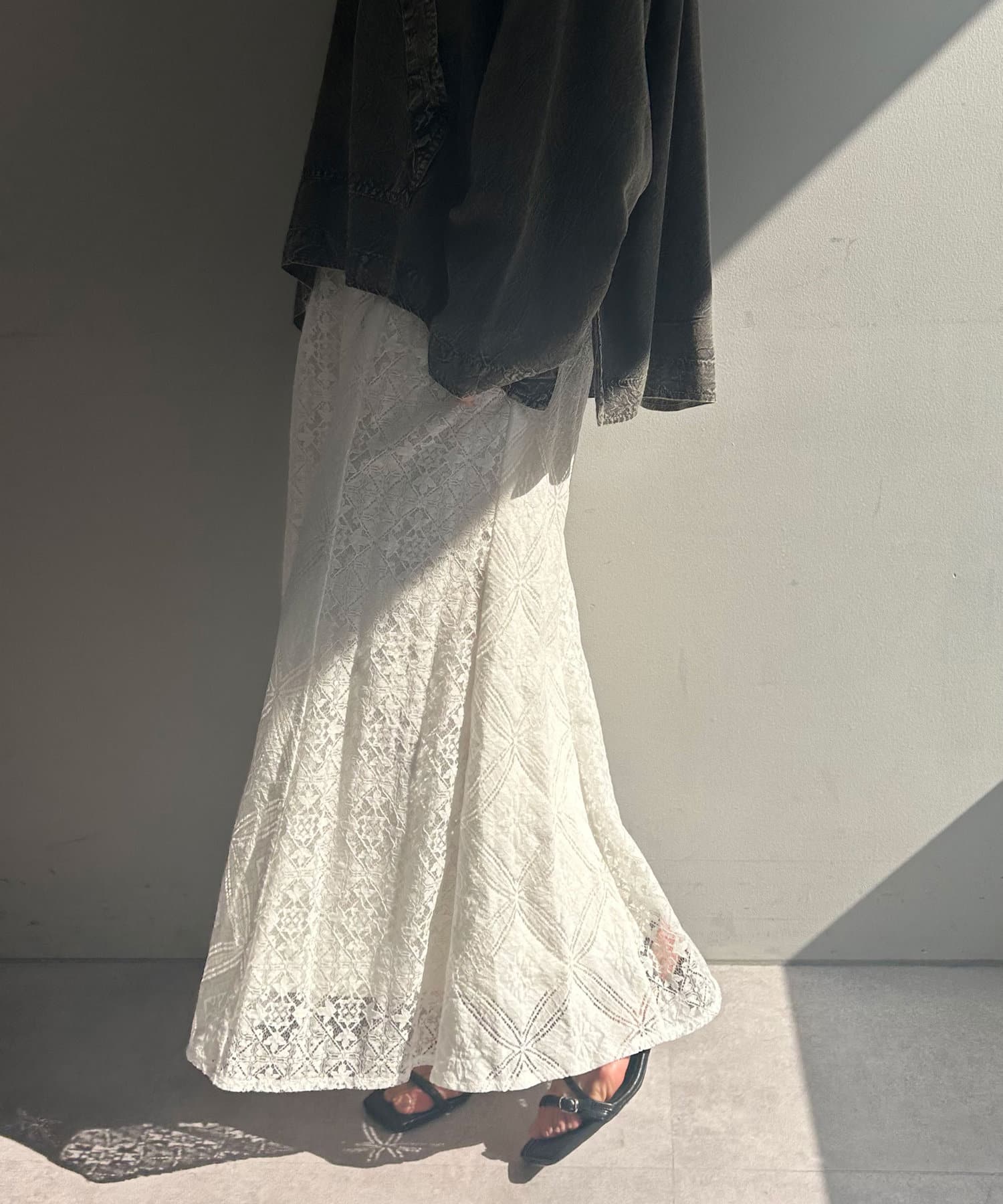・ひざ下あたりから裾にかけて程よく広がるマーメードシルエットのスカート。