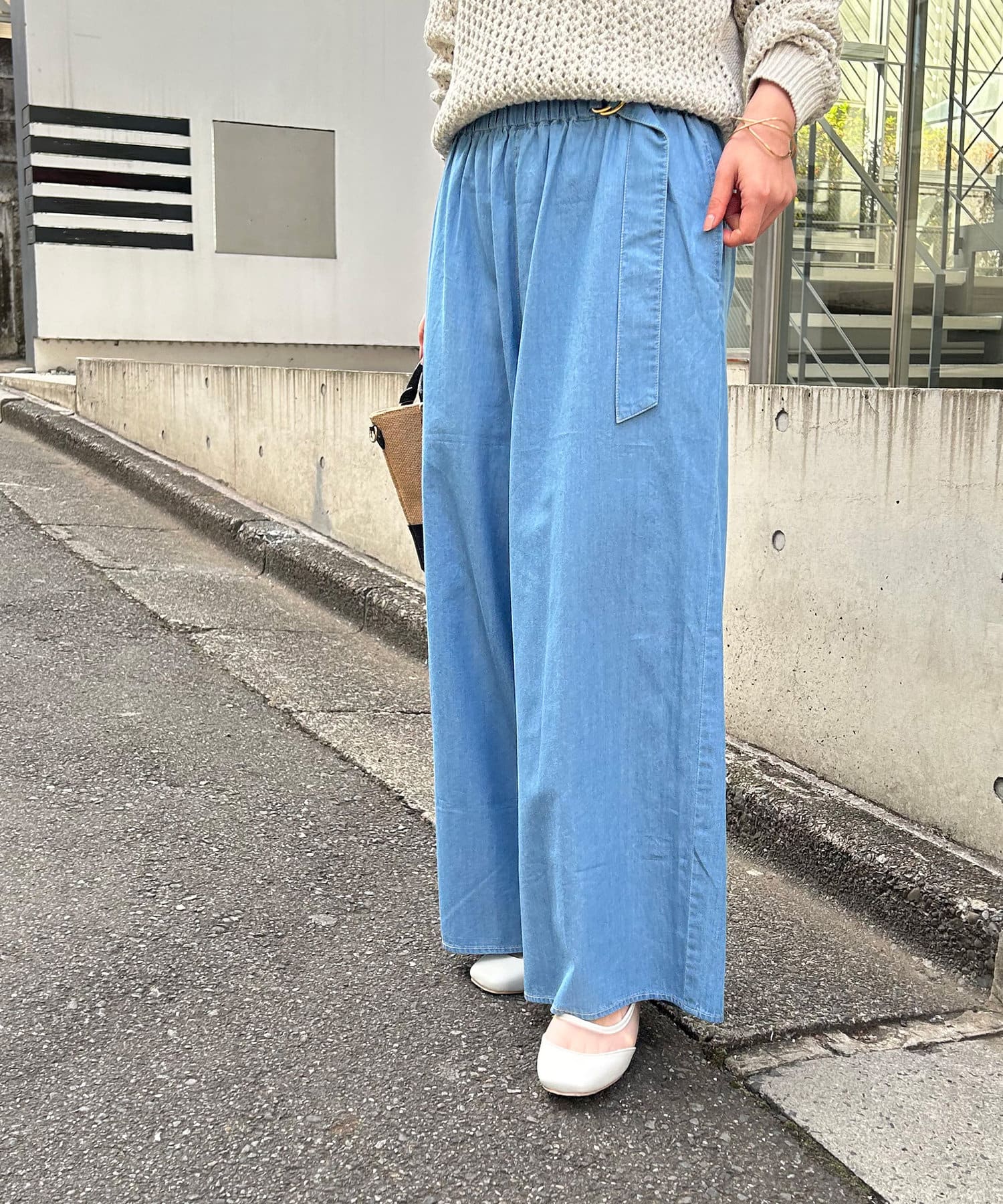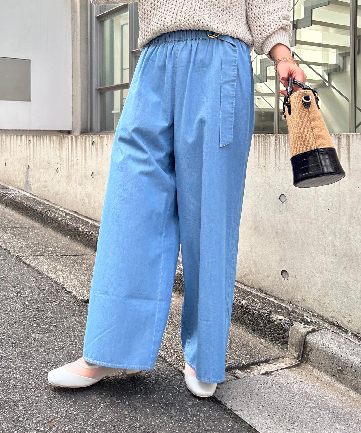 • Jena espace merveilleux(ジェナ エスパスメルヴェイユ) 【気軽に着れてきちんと感も出せる】ライトデニムギャザーパンツ