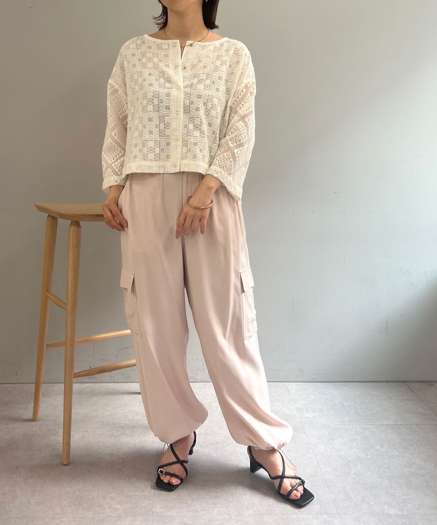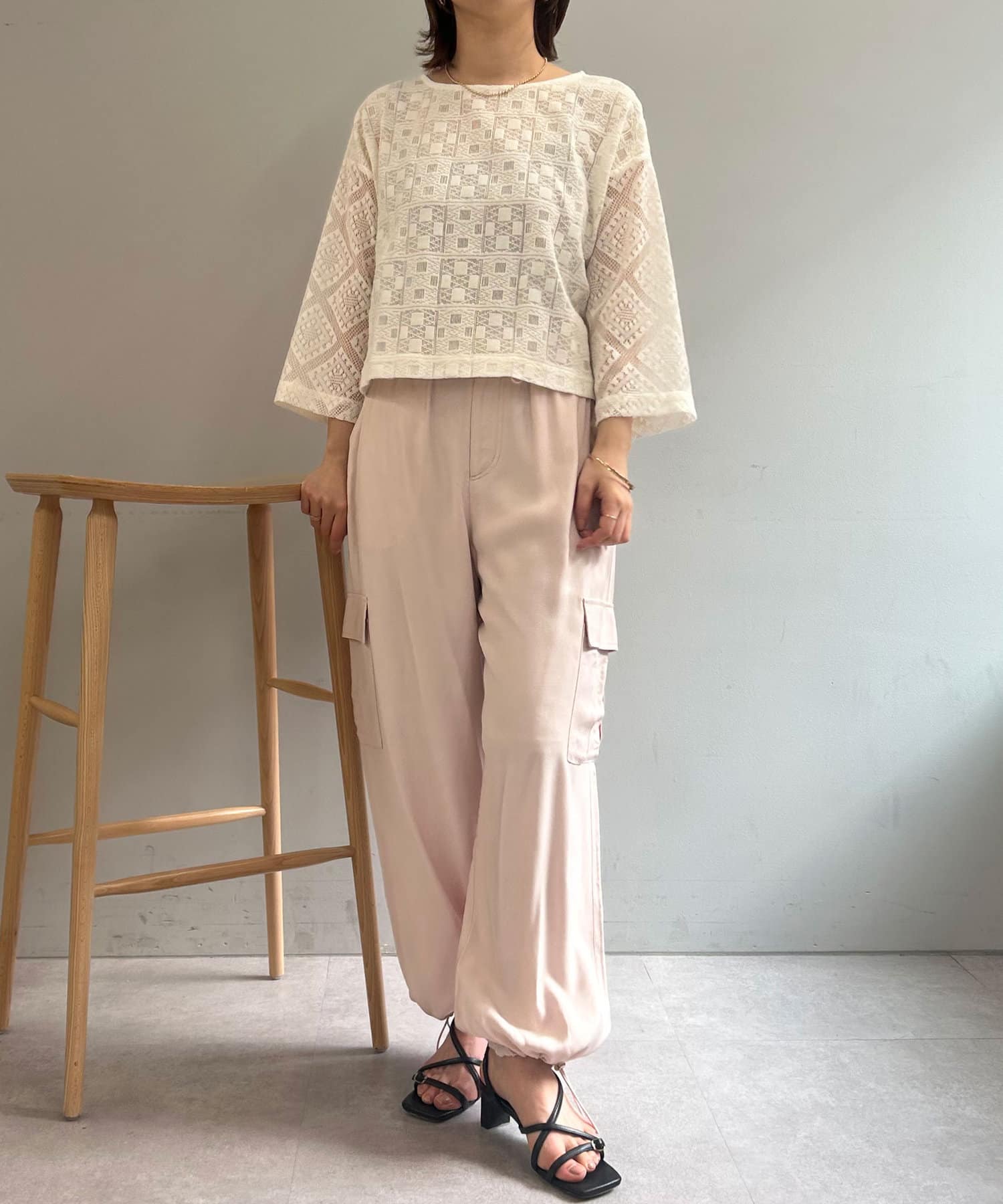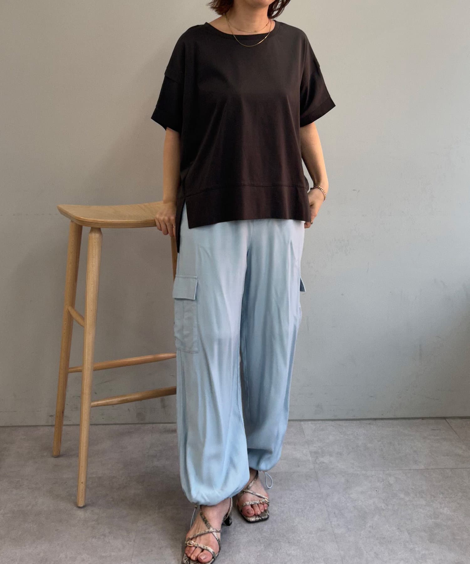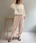 ・とろみ感のある素材でカジュアル過ぎず女性らしい印象に。