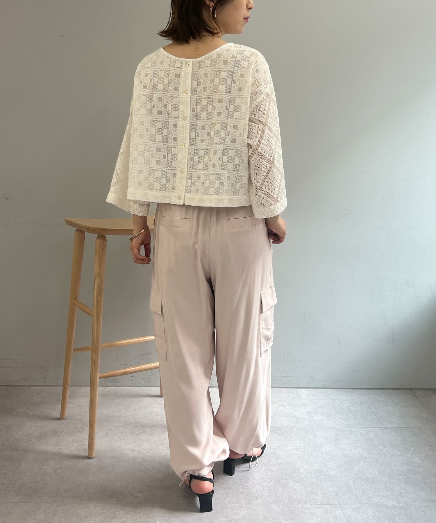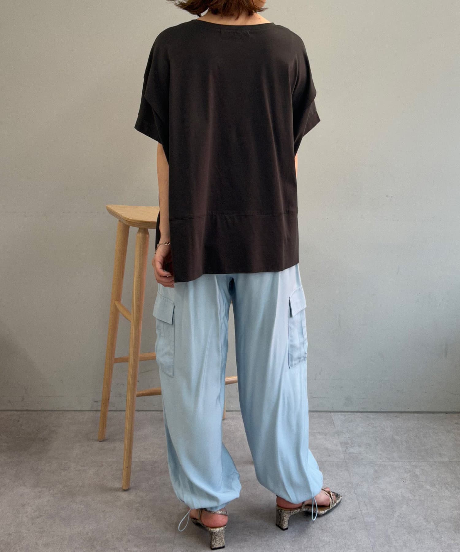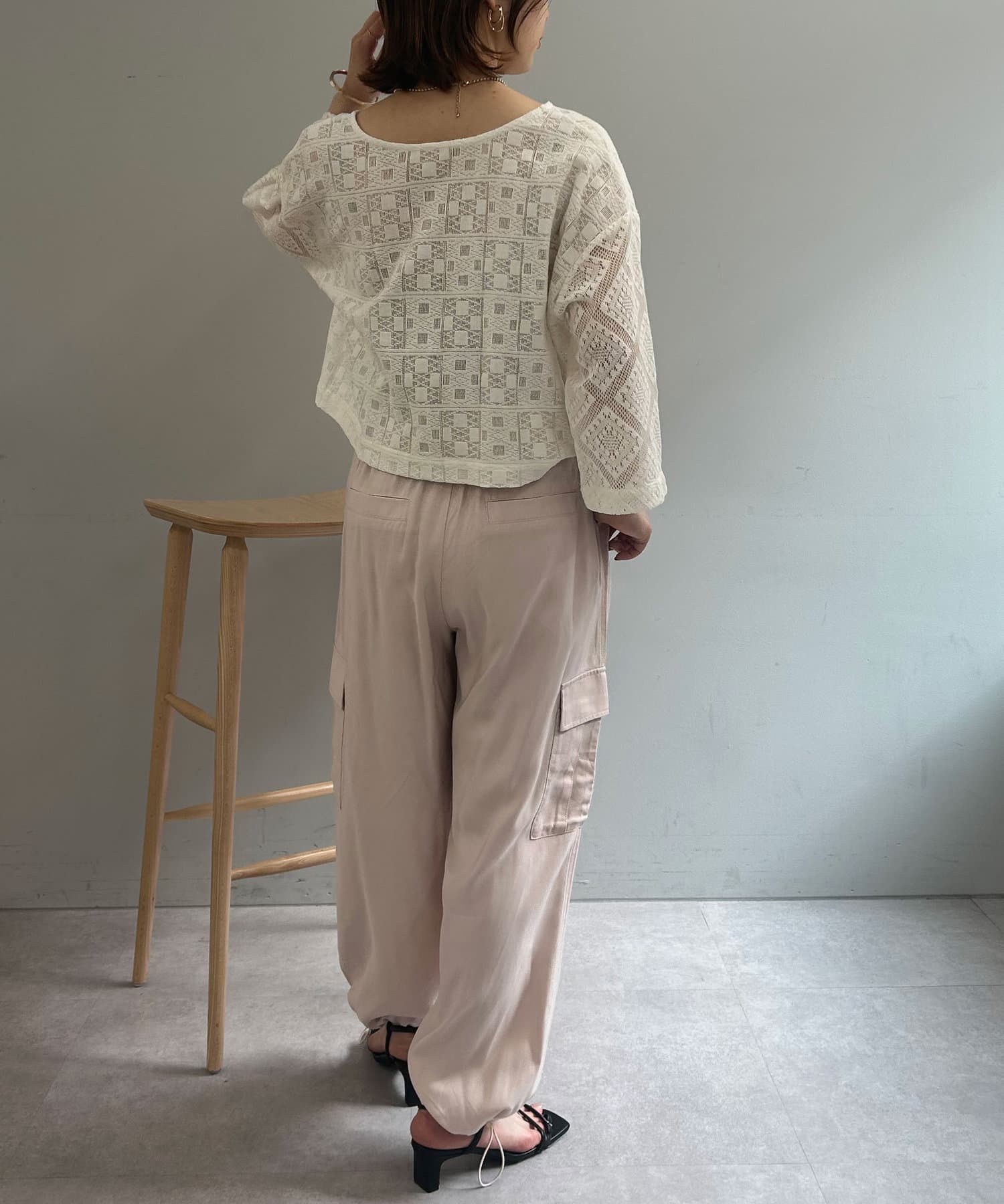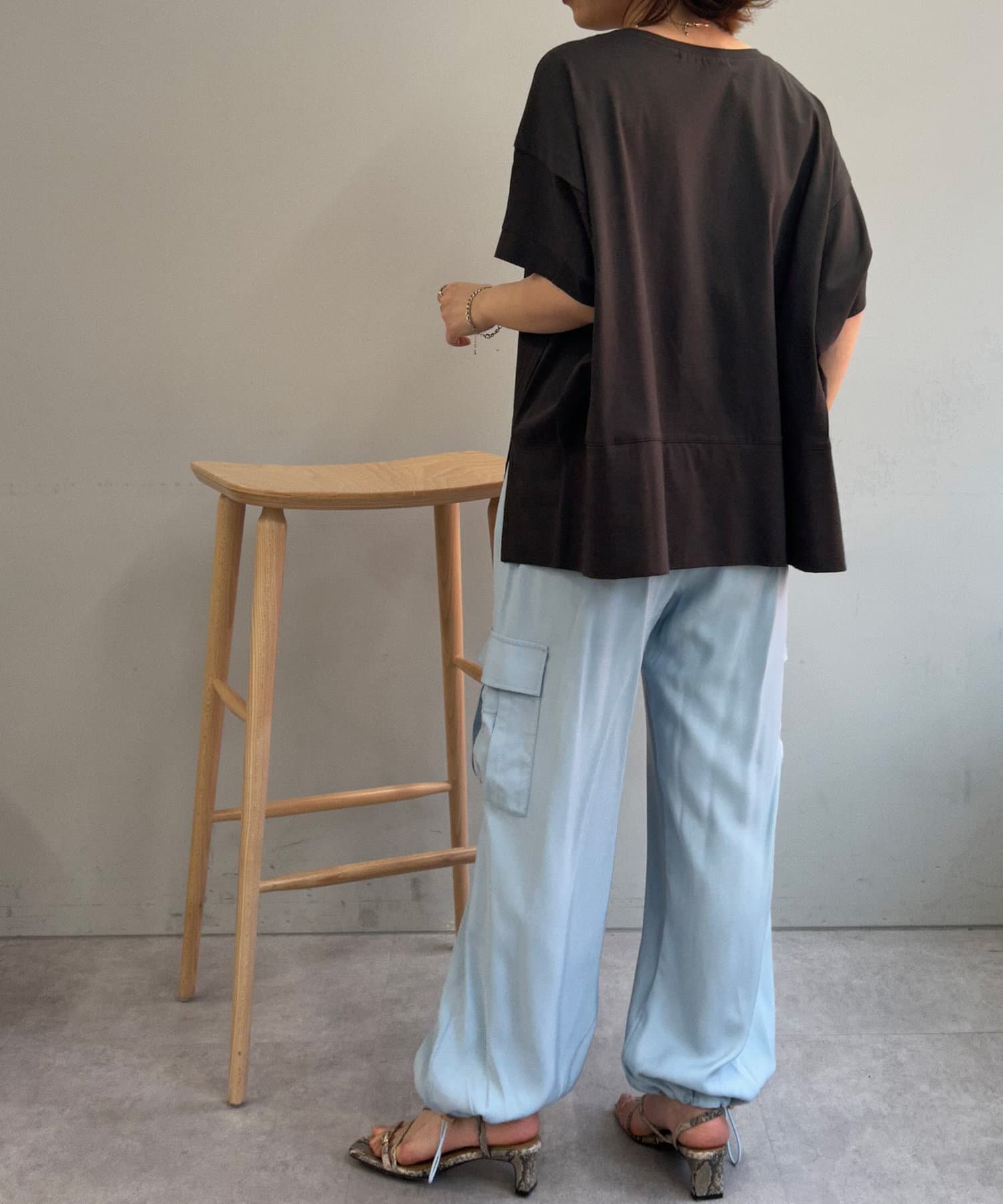 ・とろみ感のある素材でカジュアル過ぎず女性らしい印象に。