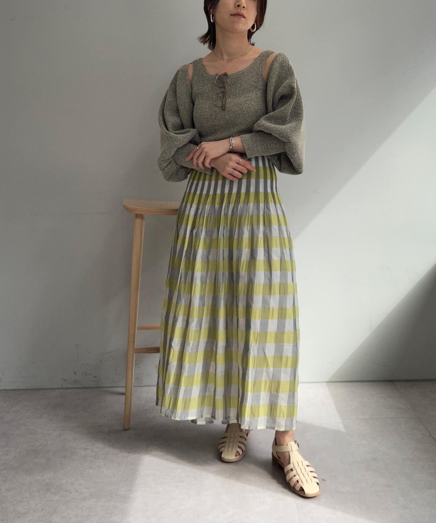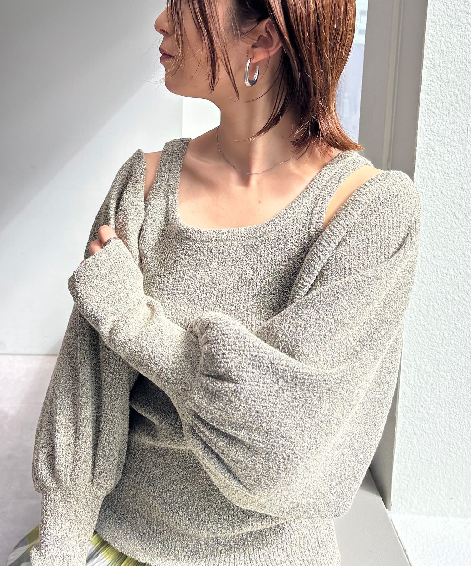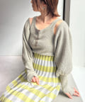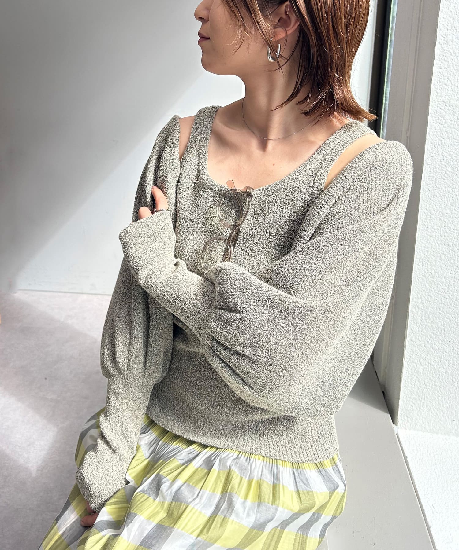 ・タンクトップの開き具合とボレロから、鎖骨、肩のラインが見える女性らしいスタリングを作ってくれる一枚です。
