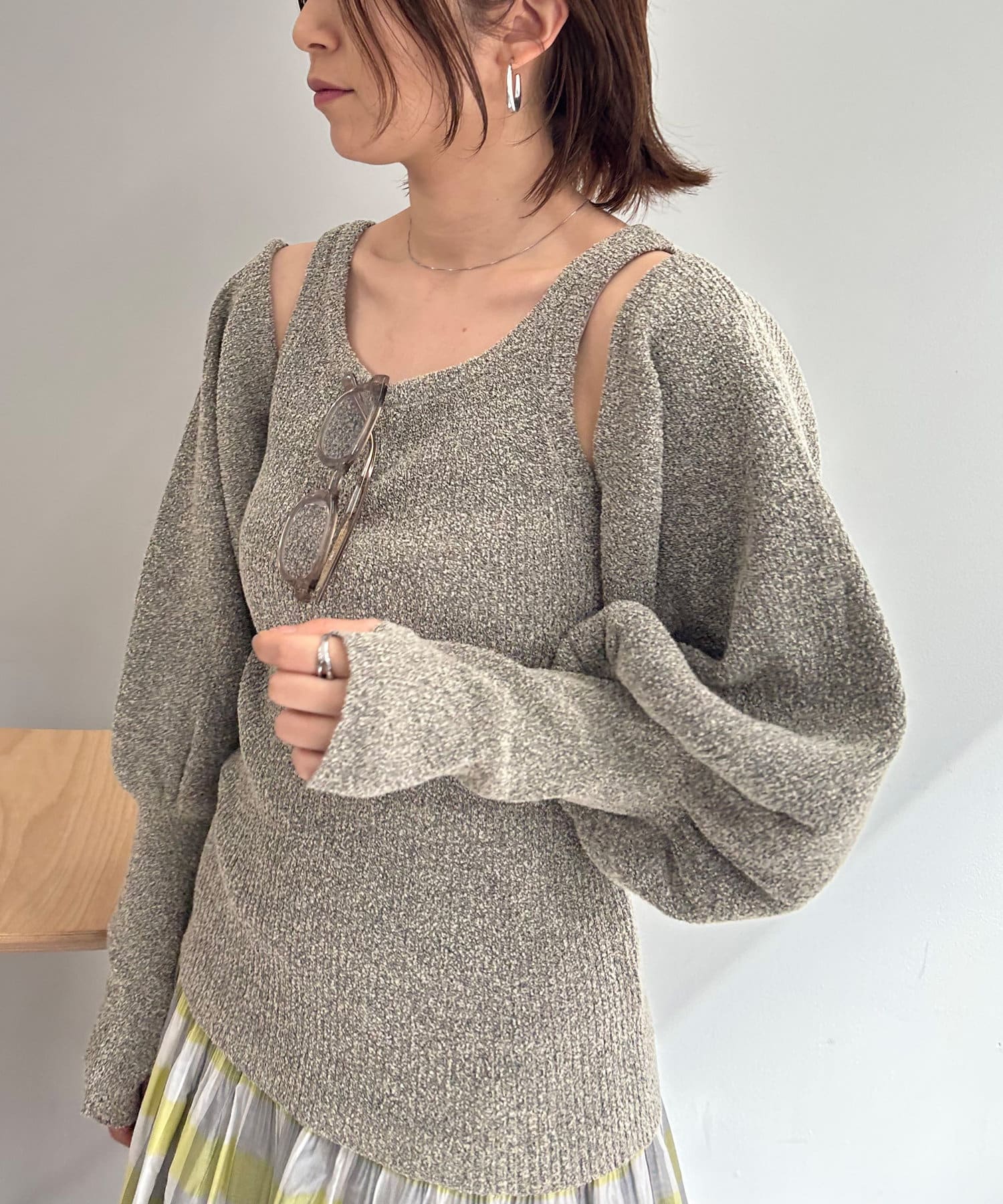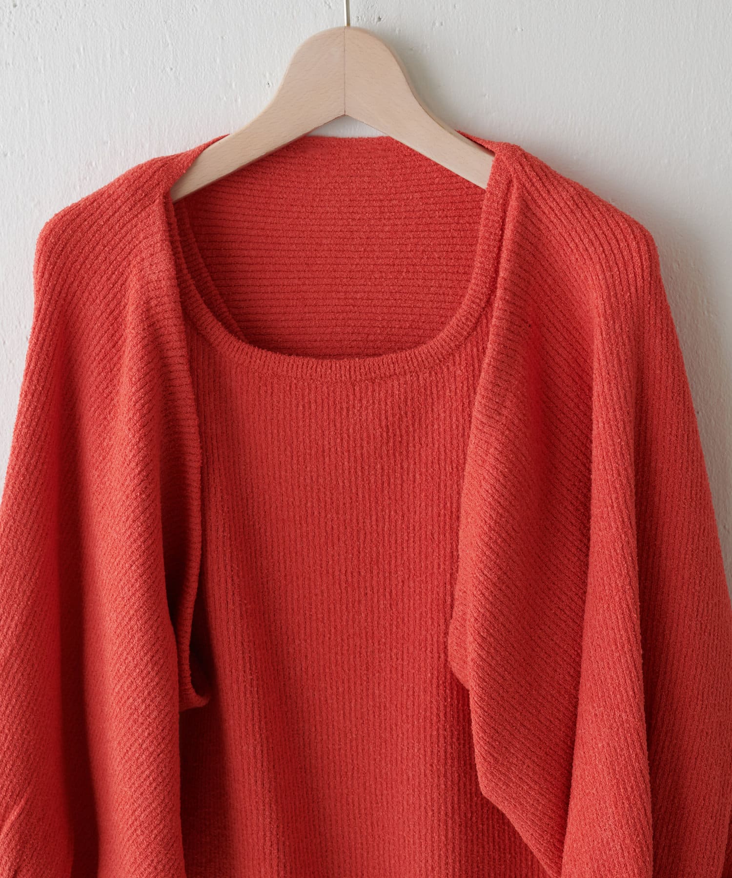 ・トレンドのボレロカーディガンとタンクトップがセットになったお得なニット